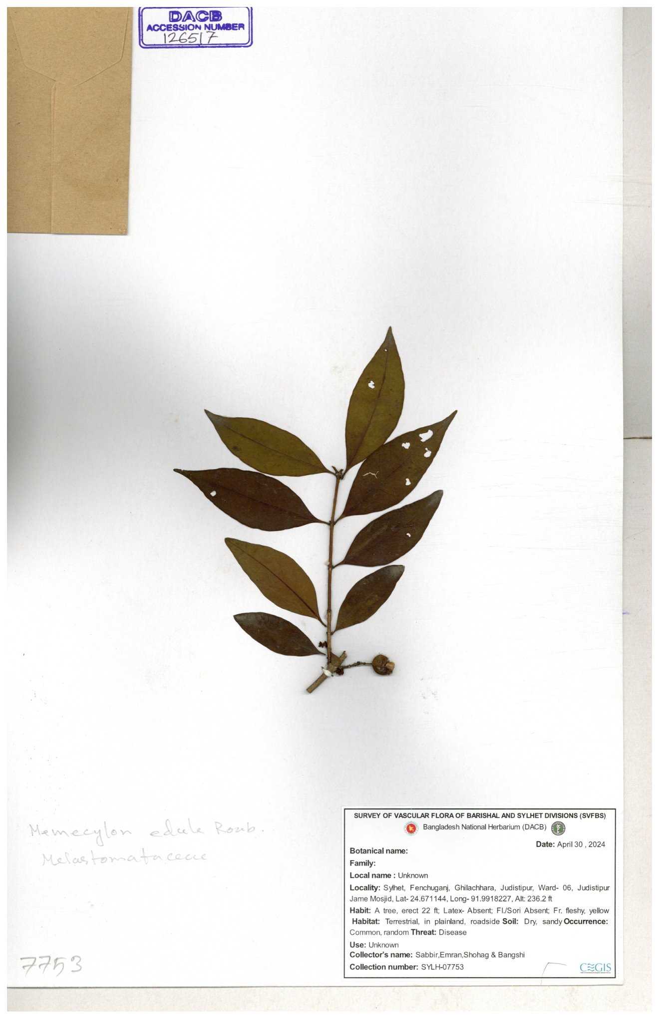 | 24083 | Melastomataceae | Memecylon sp. | 30-11--0001 |