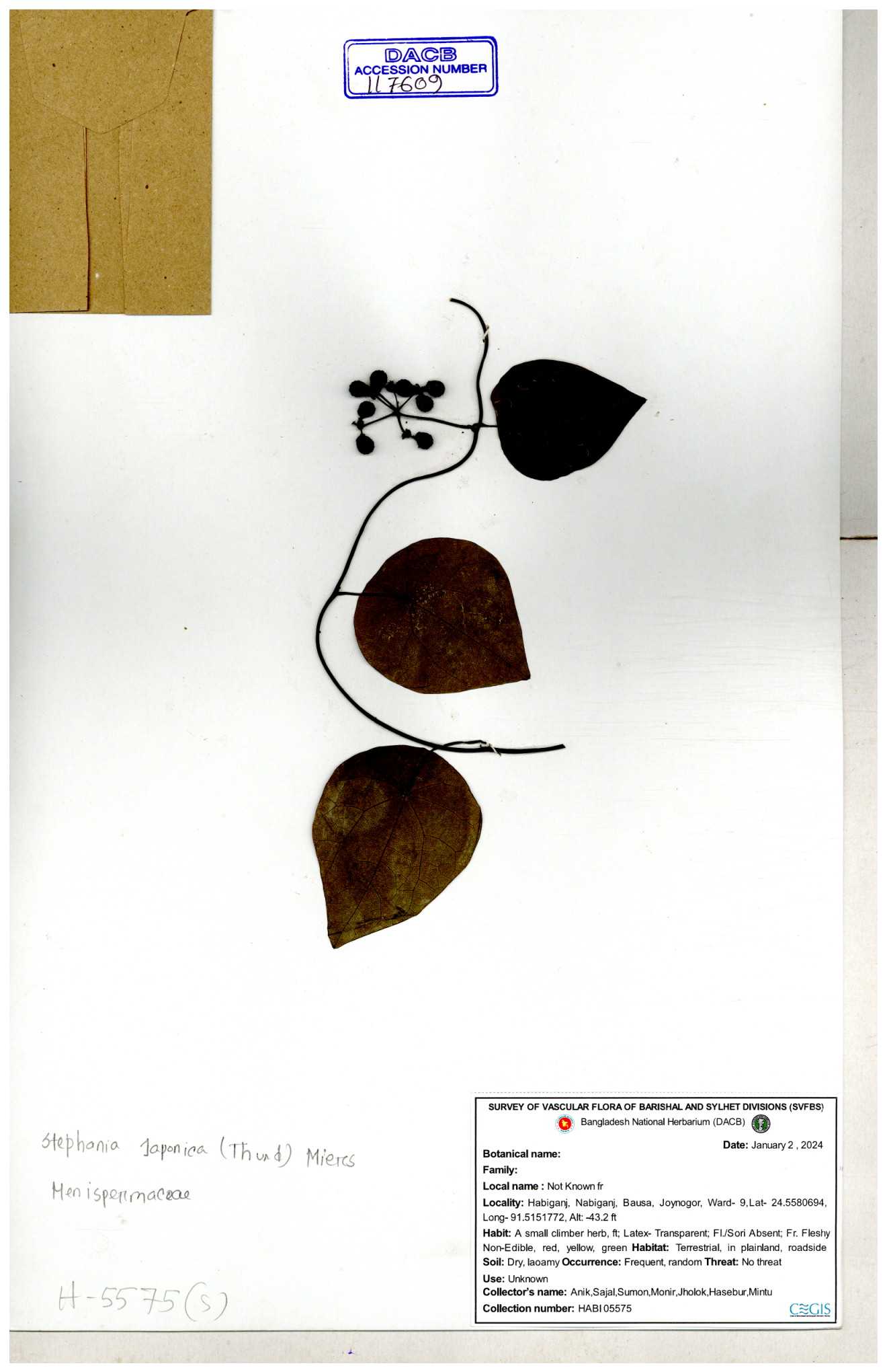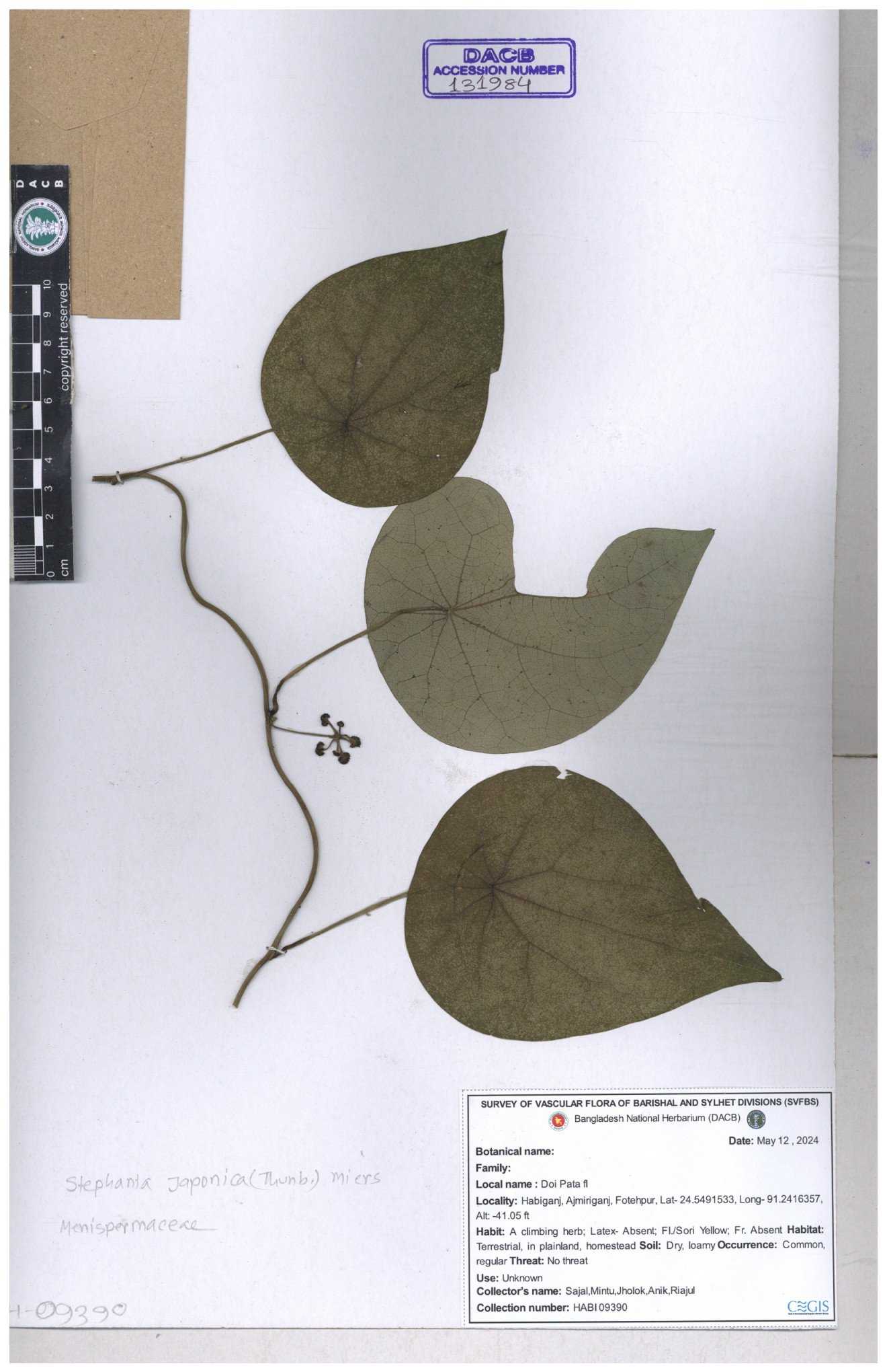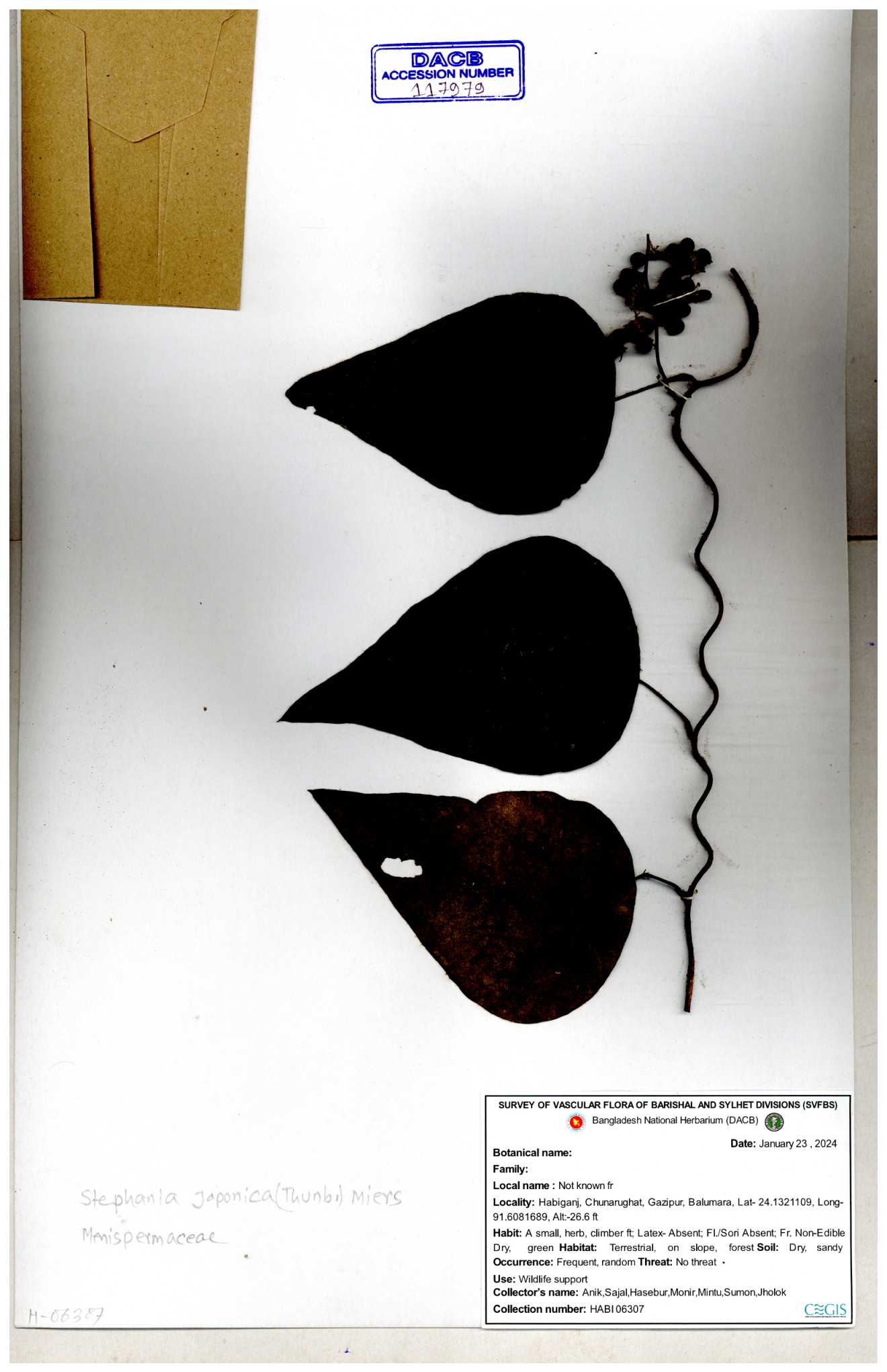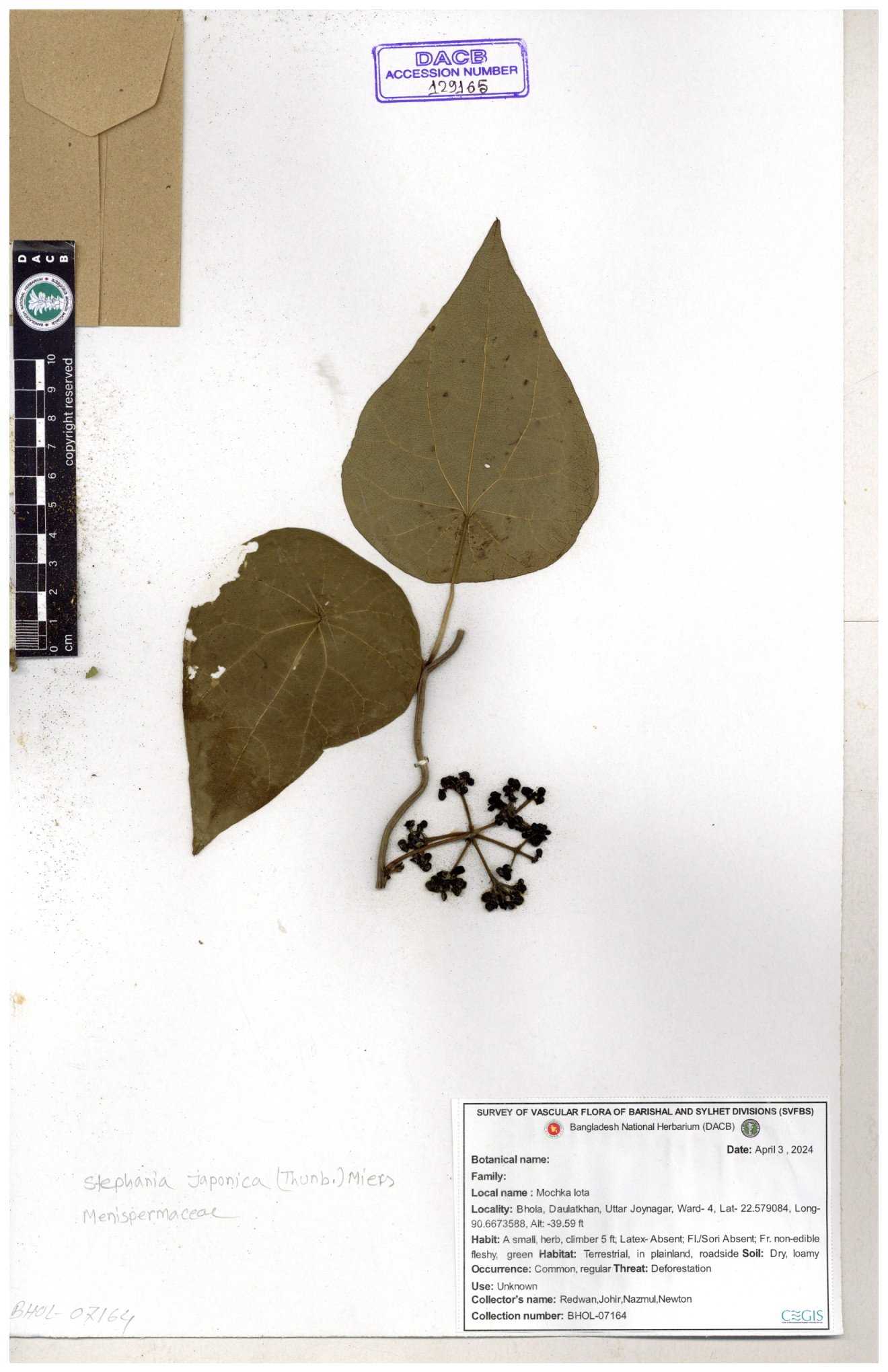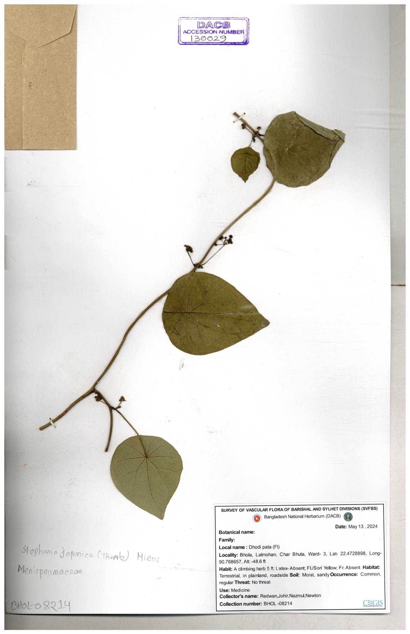 | 130605 | Menispermaceae | Stephania japonica | Anik, Jholok, Mintu, Sajal | 30-11--0001 |