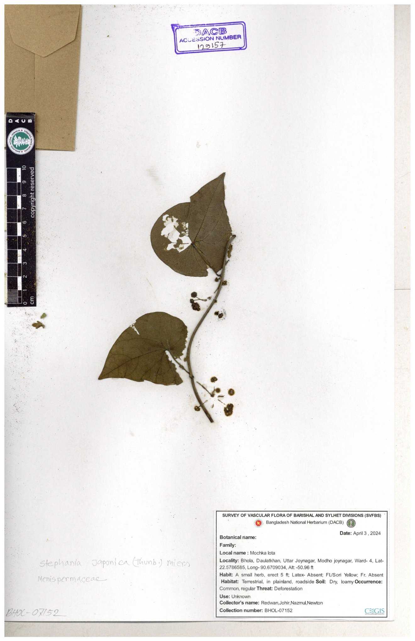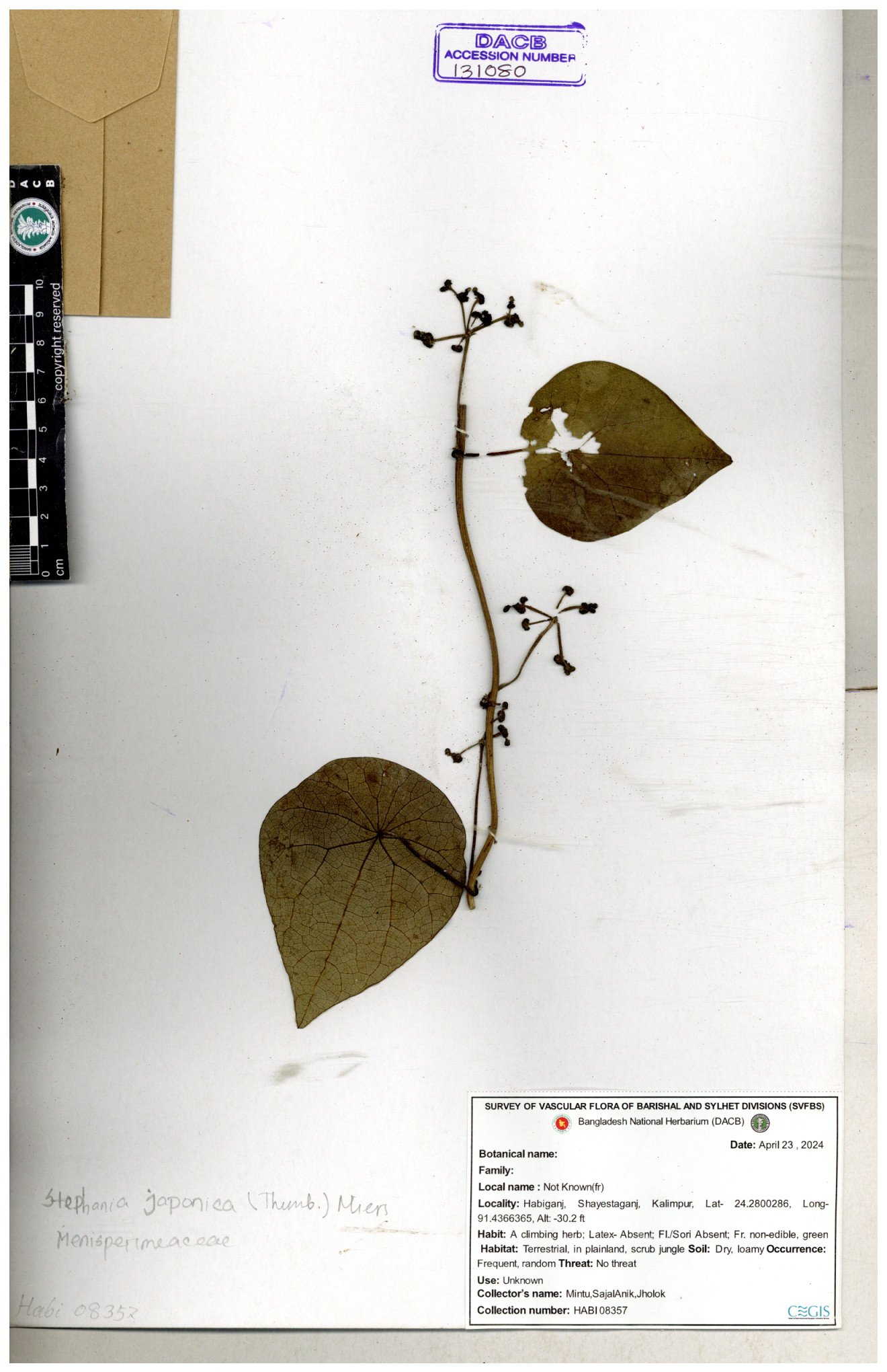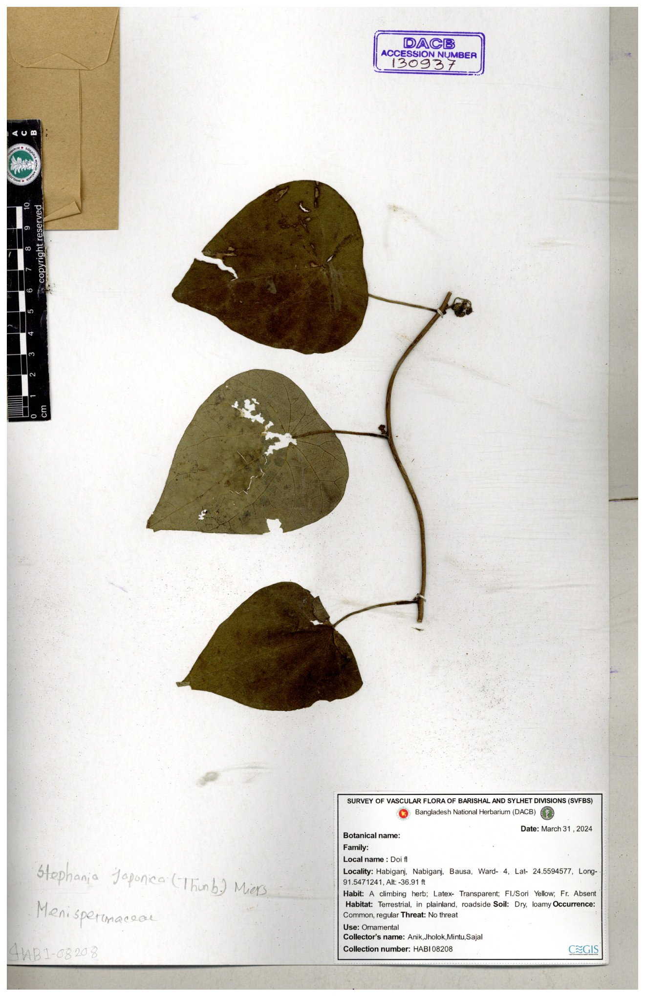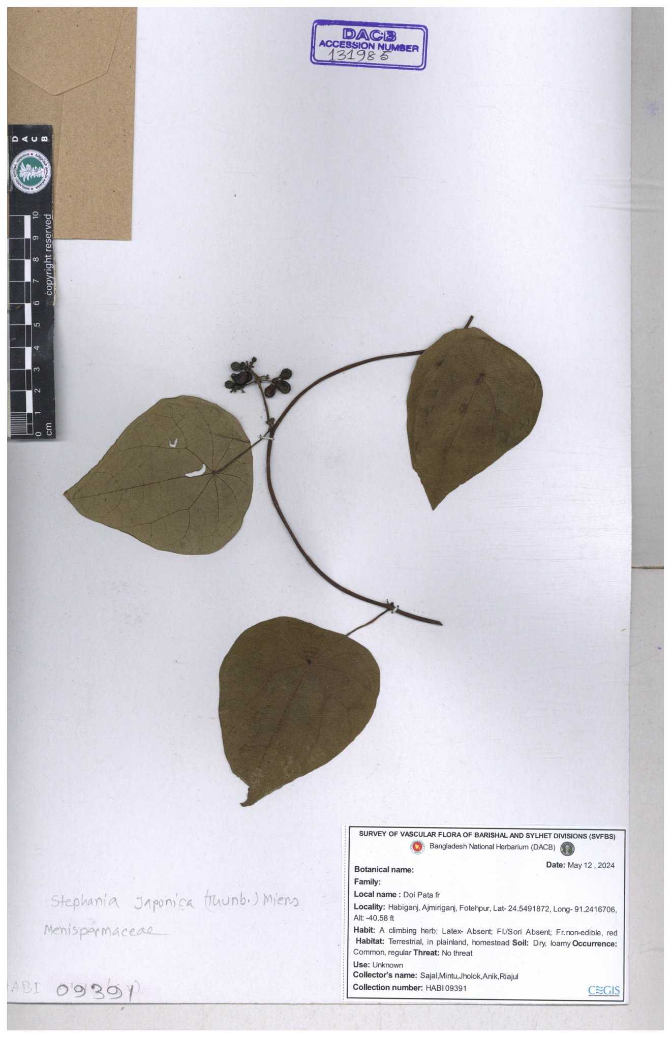 | 130605 | Menispermaceae | Stephania japonica | Anik, Jholok, Mintu, Sajal | 30-11--0001 |