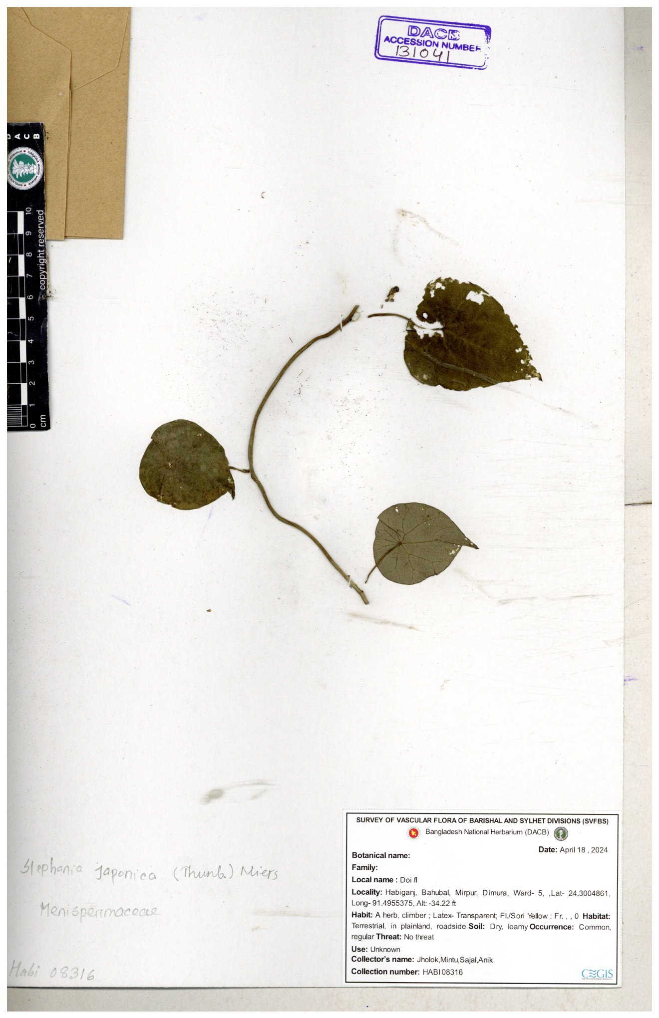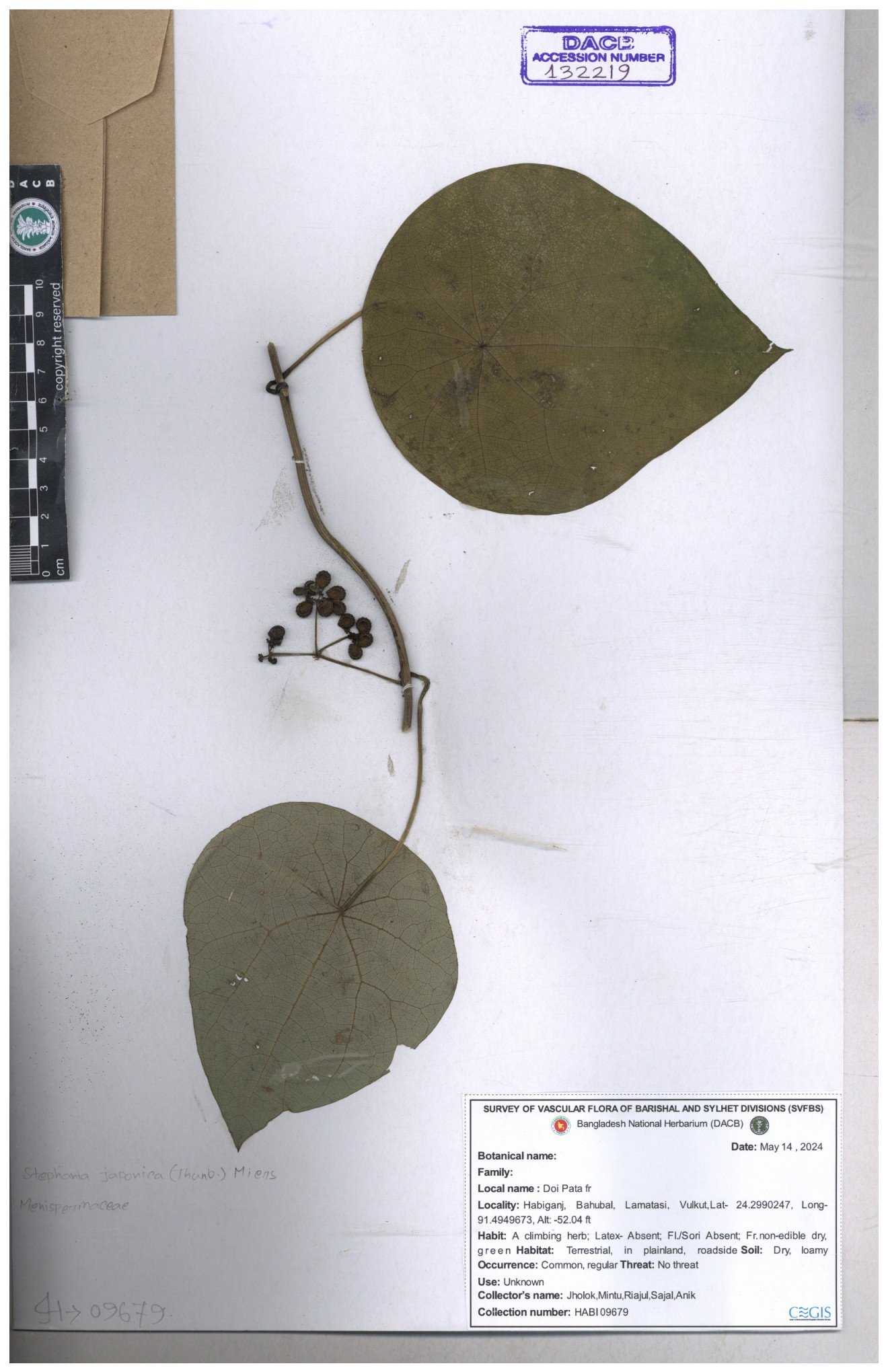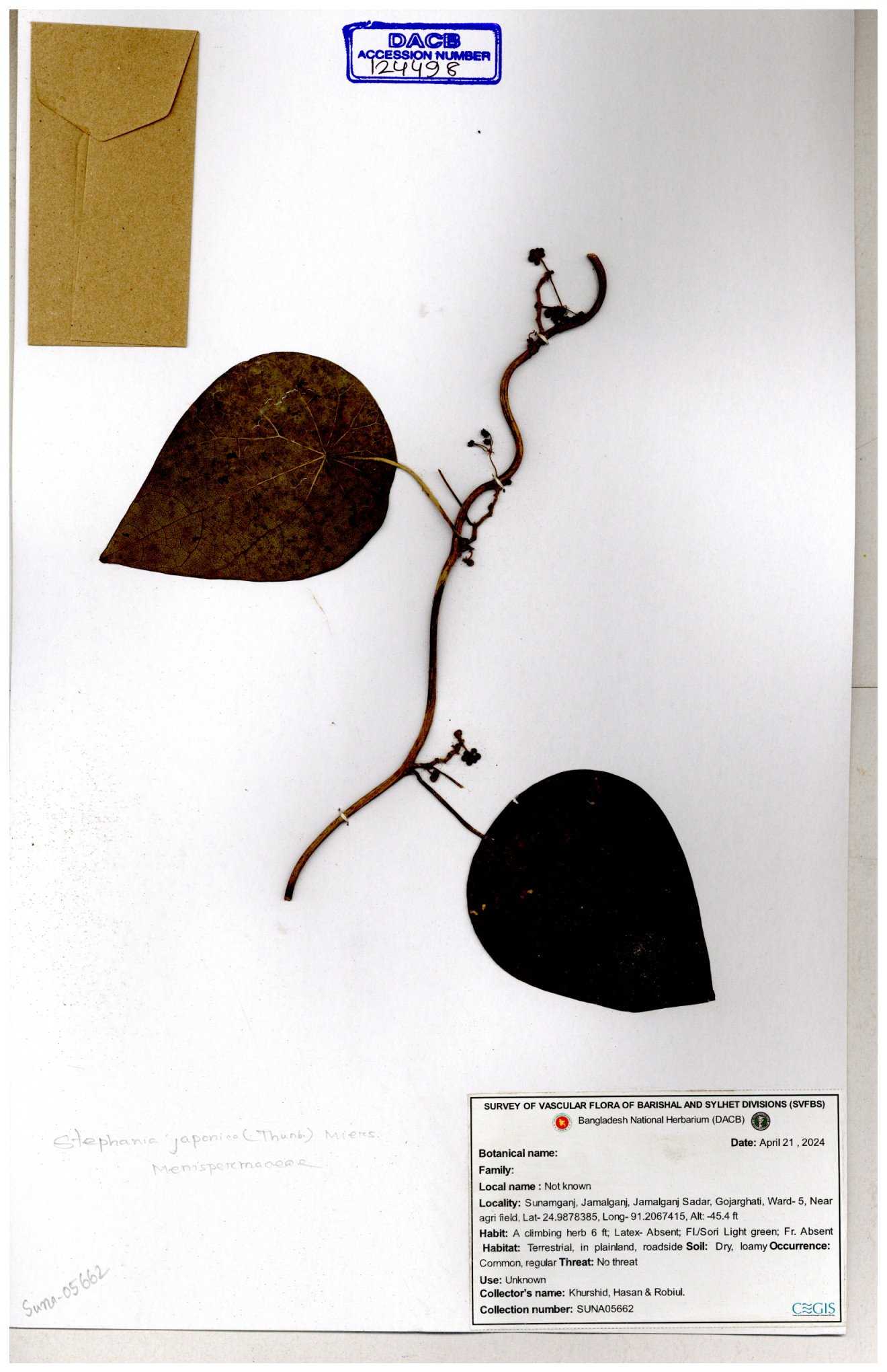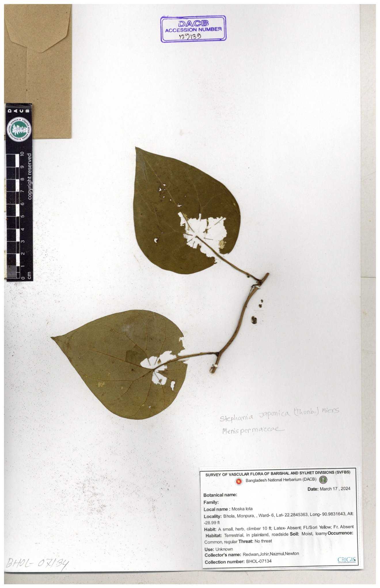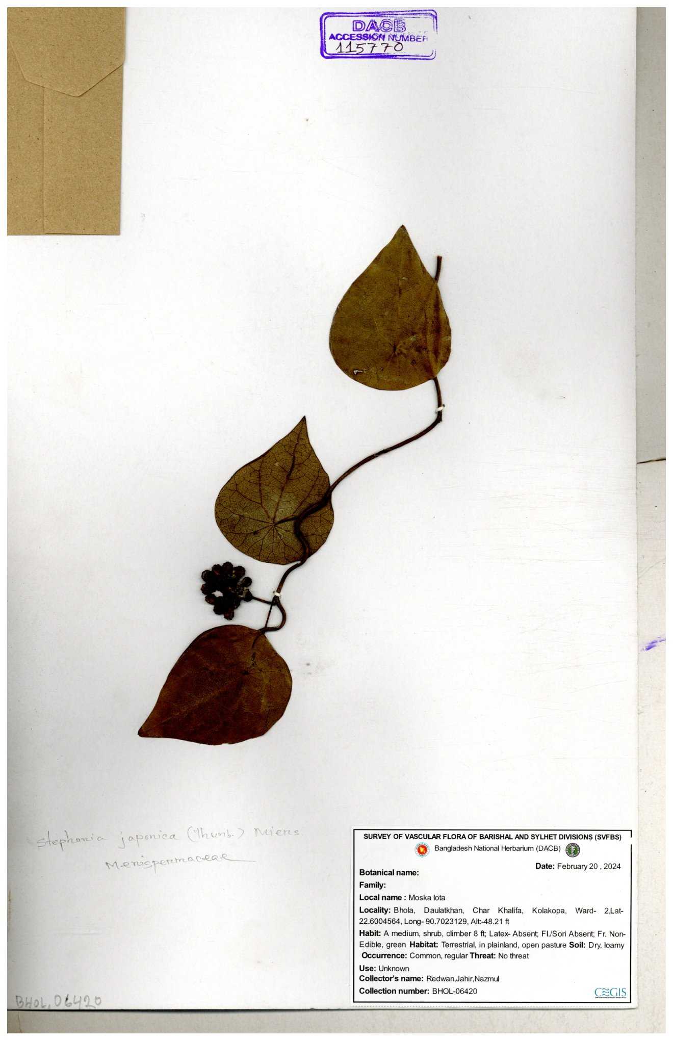 | 130605 | Menispermaceae | Stephania japonica | Anik, Jholok, Mintu, Sajal | 30-11--0001 |
