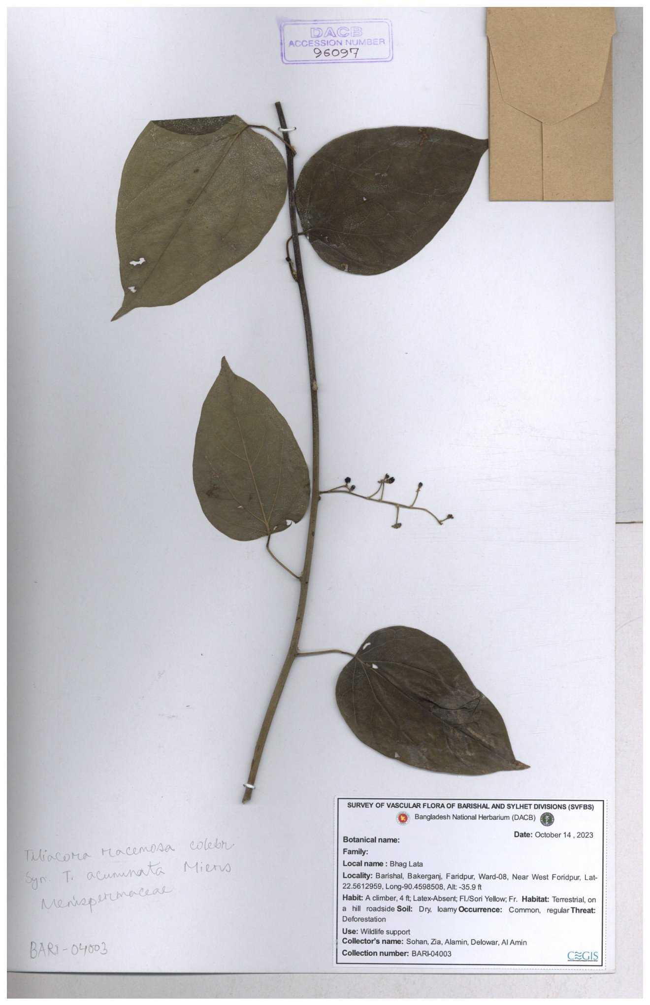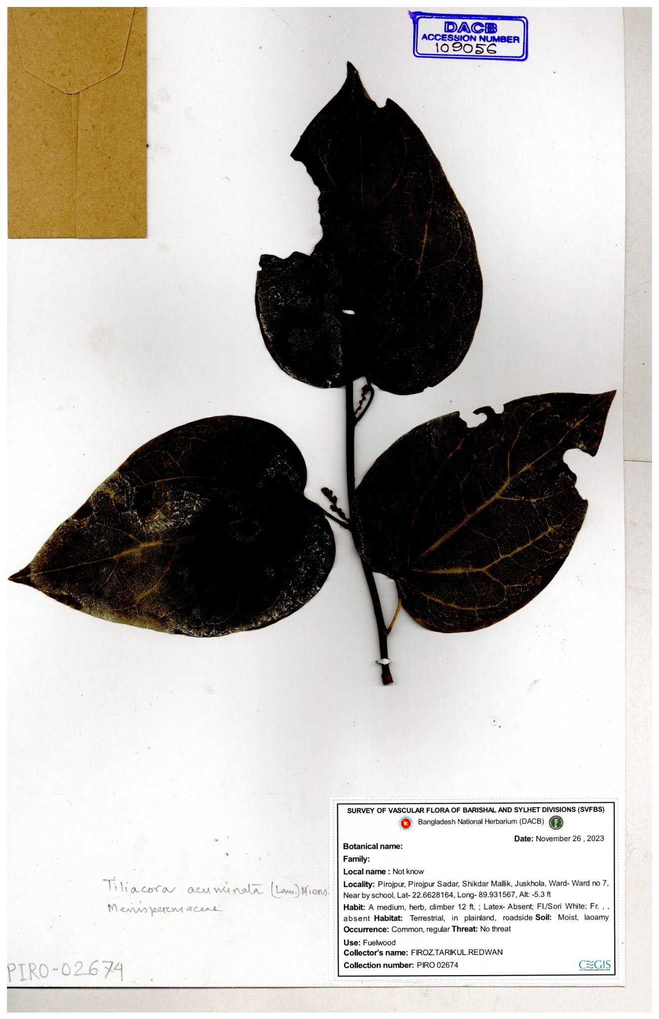 | 109056 | Menispermaceae | Tiliacora acuminata | 30-11--0001 |