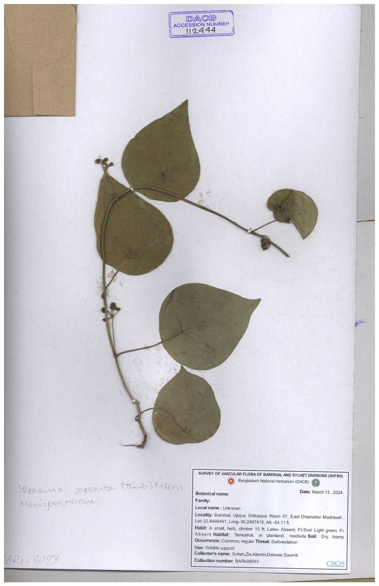 | 122444 | Menispermaceae | Stephania japonica | 30-11--0001 |