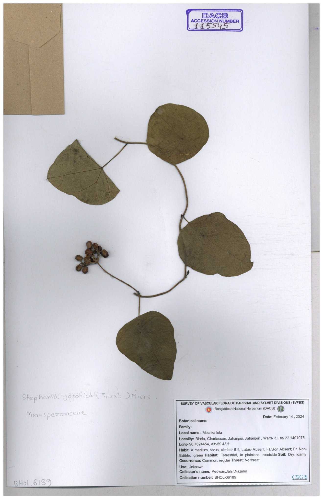 | 124609 | Menispermaceae | Stephania japonica | 30-11--0001 |