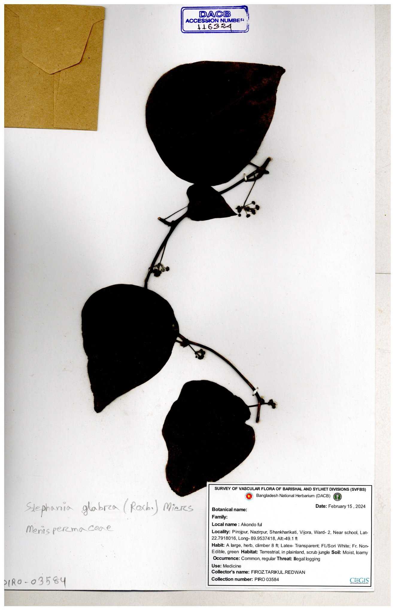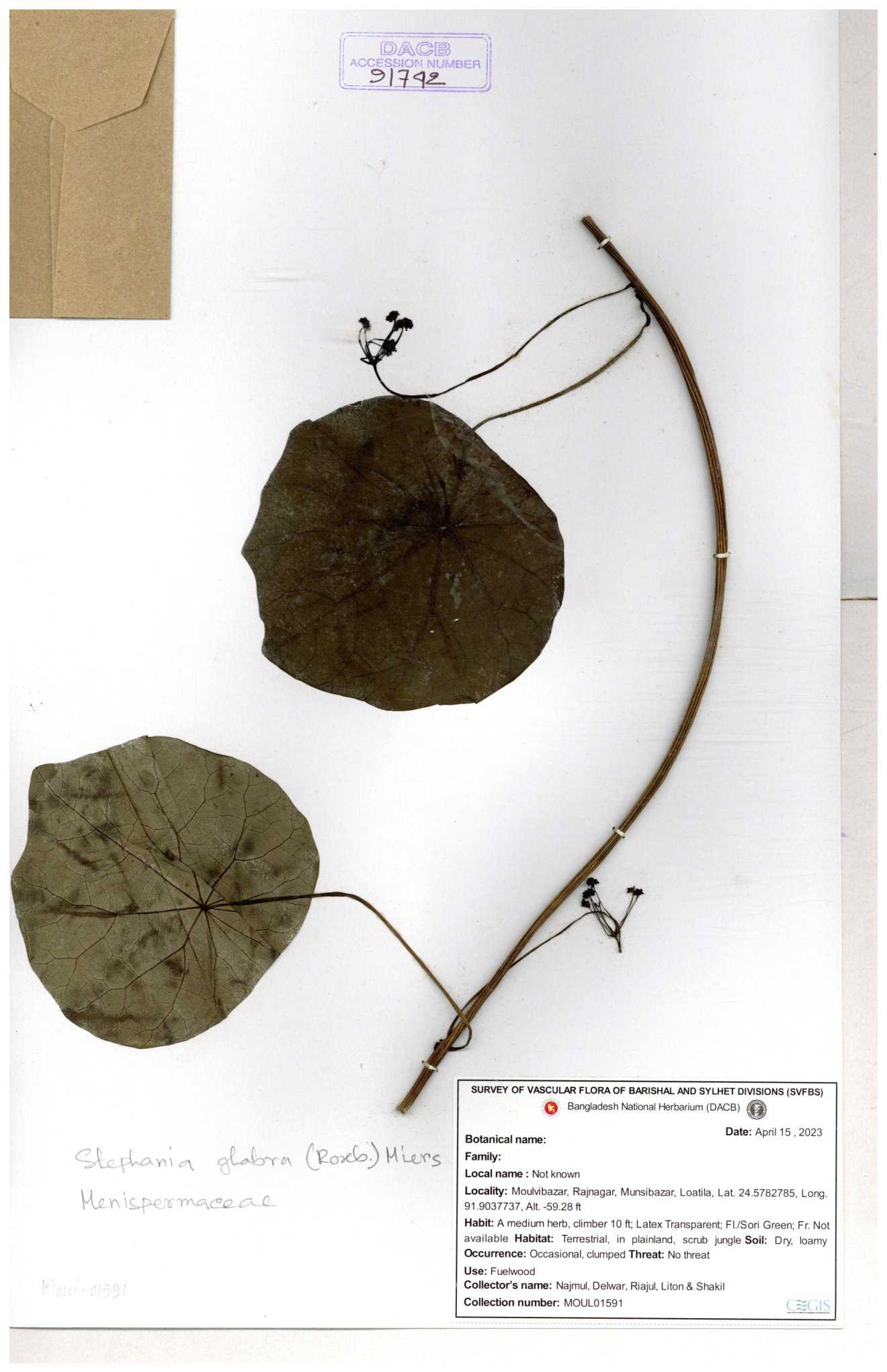 | 116215 | Menispermaceae | Stephania glabra | 30-11--0001 |