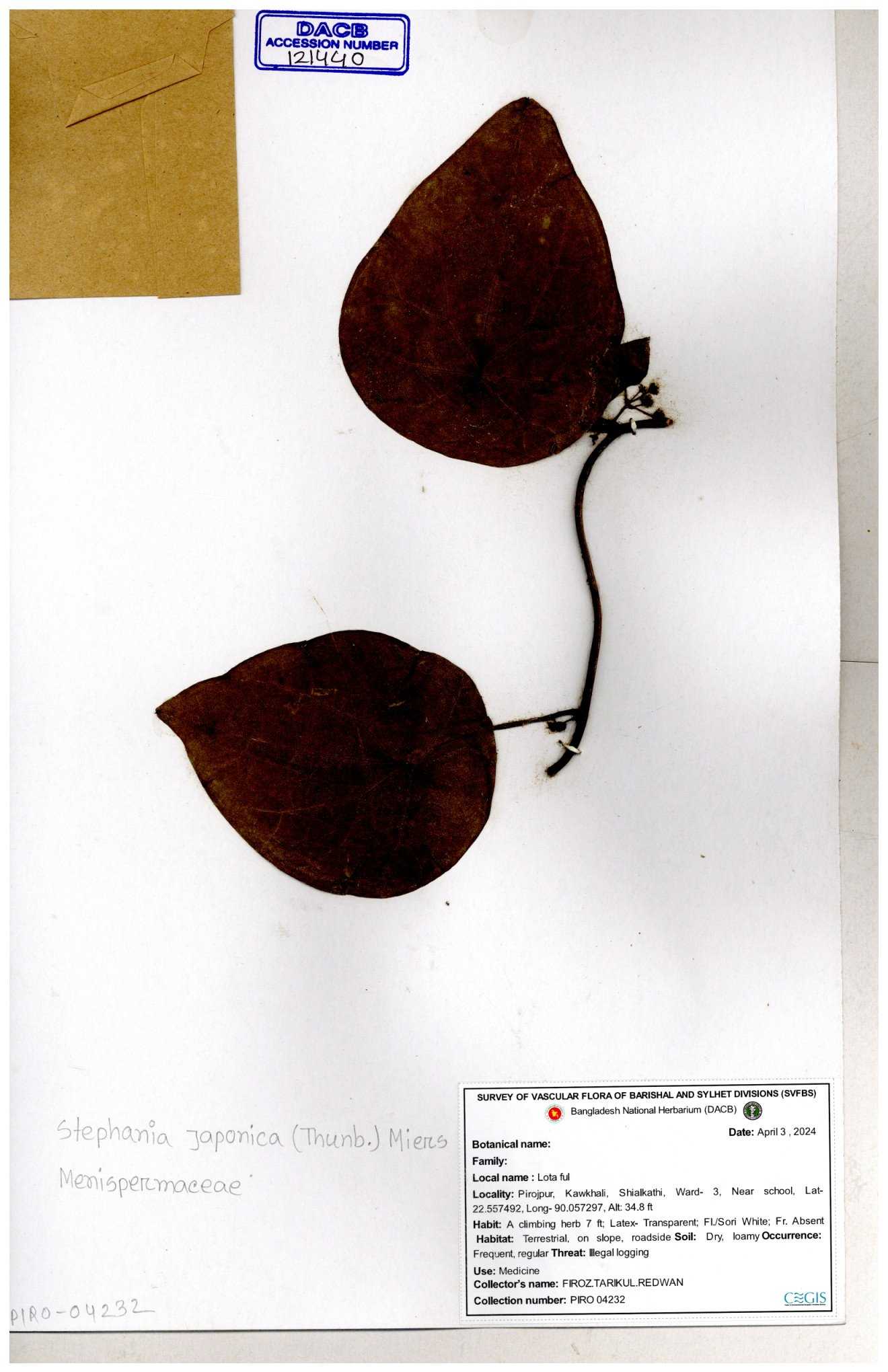 | 121440 | Menispermaceae | Stephania japonica | 30-11--0001 |