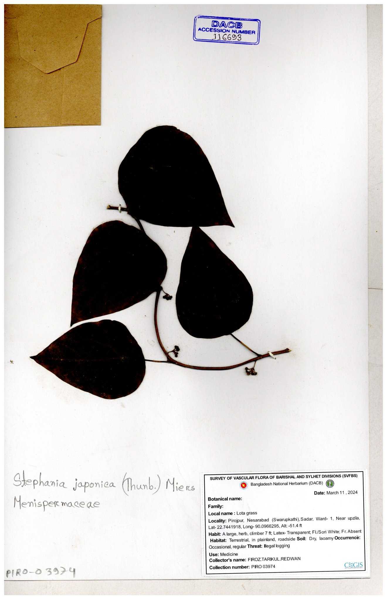 | 116693 | Menispermaceae | Stephania japonica | 30-11--0001 |