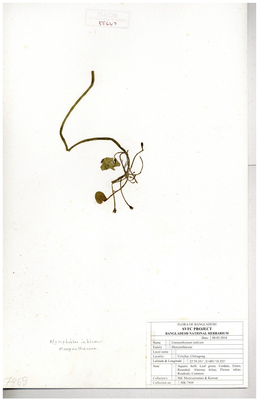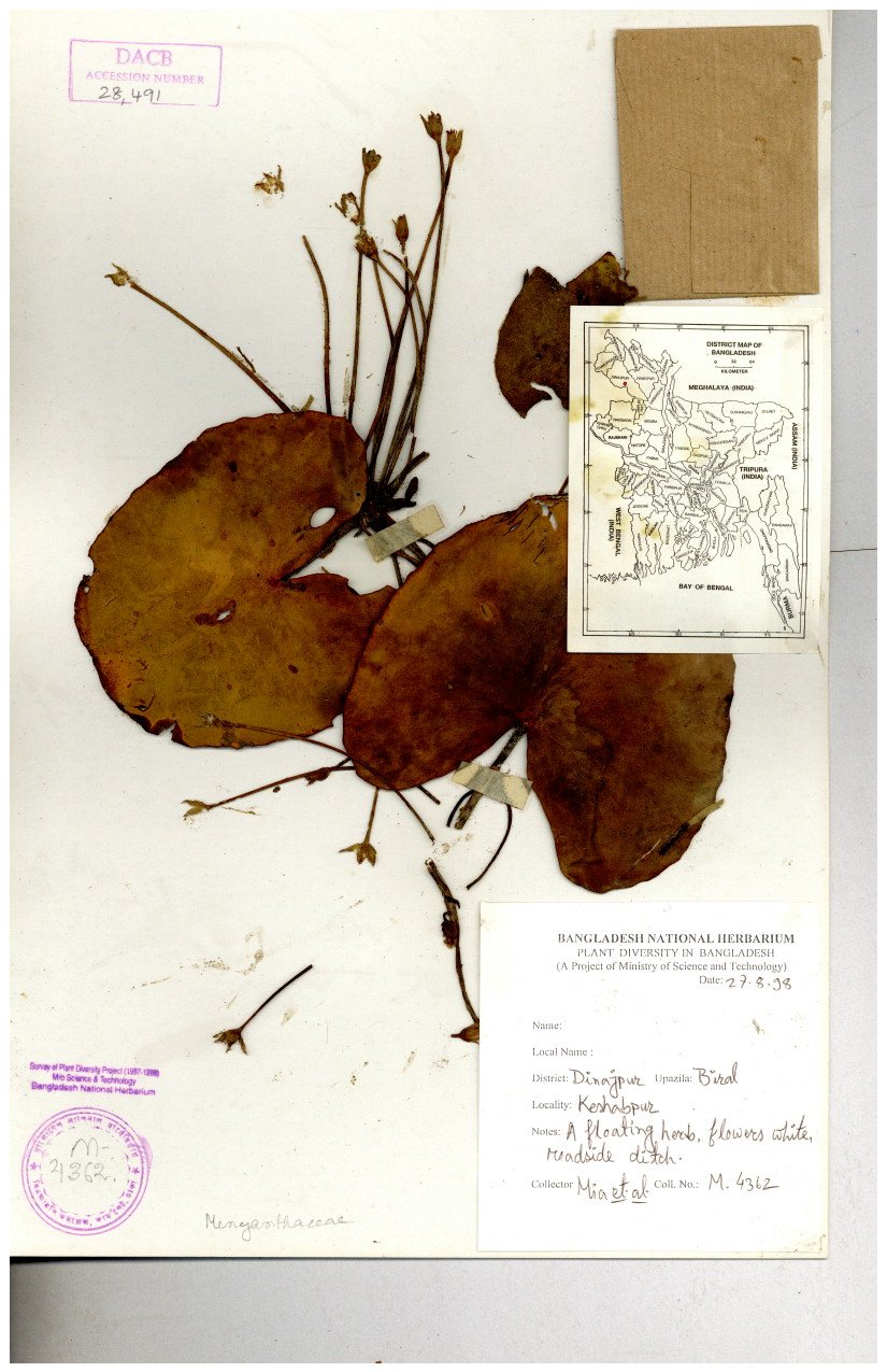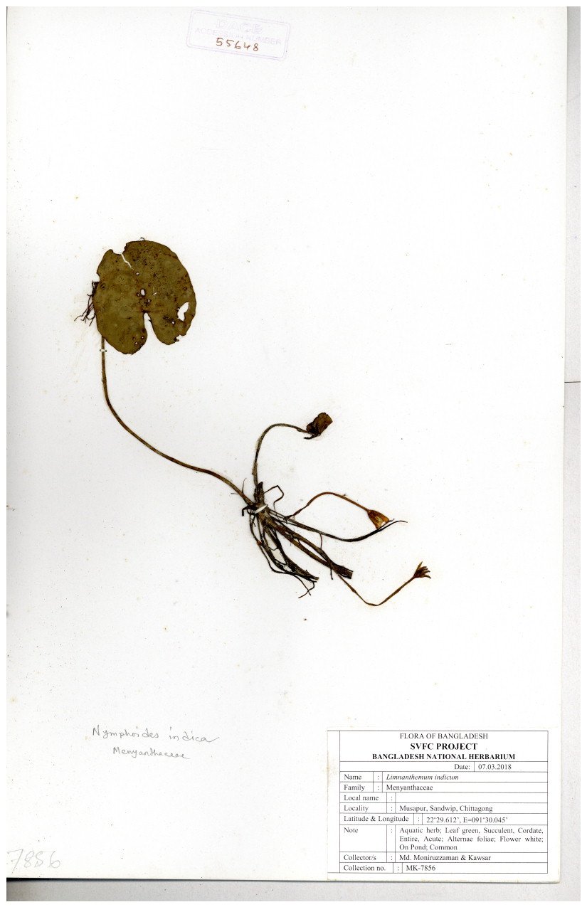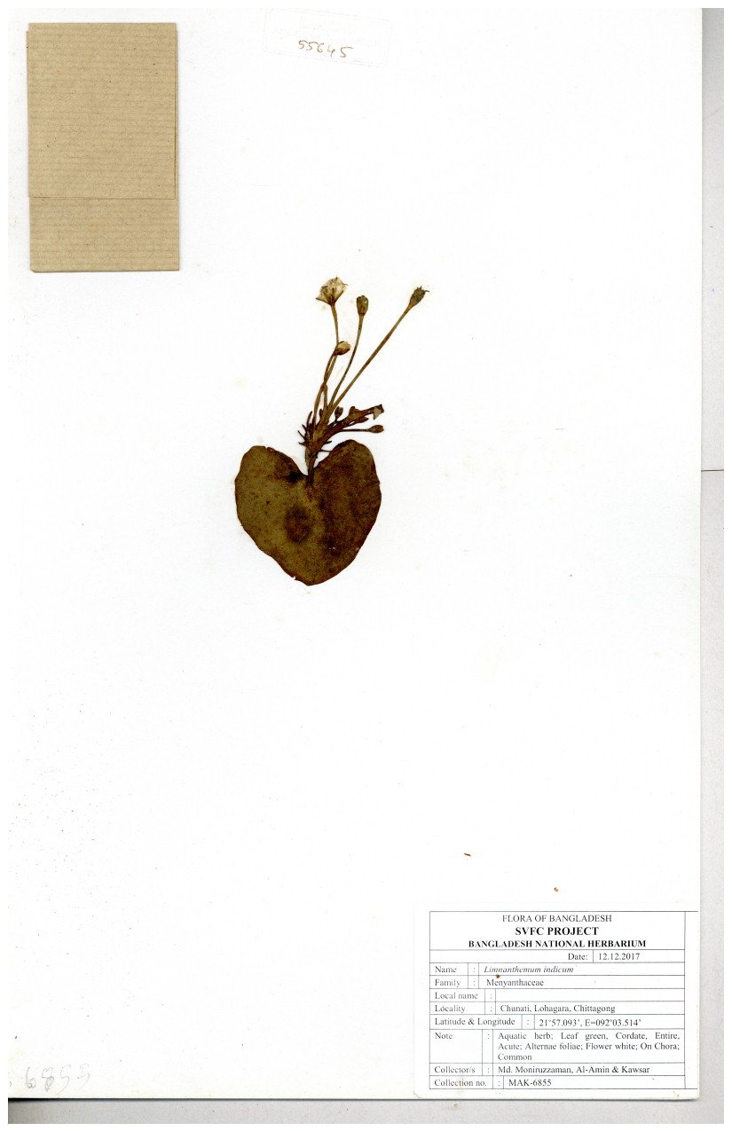 | 55645 | Menyanthaceae | Limnanthemum indicum | 30-11--0001 |