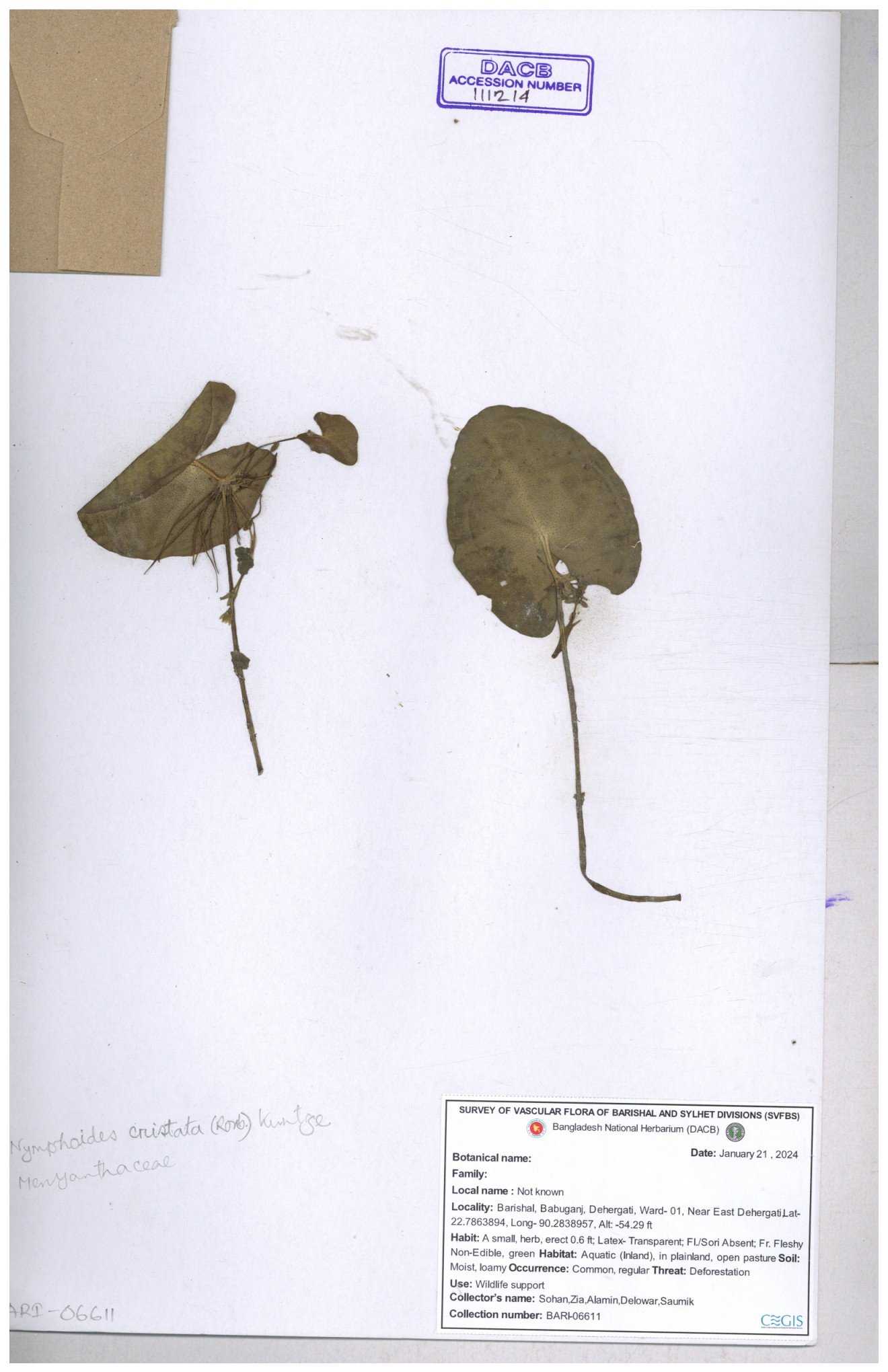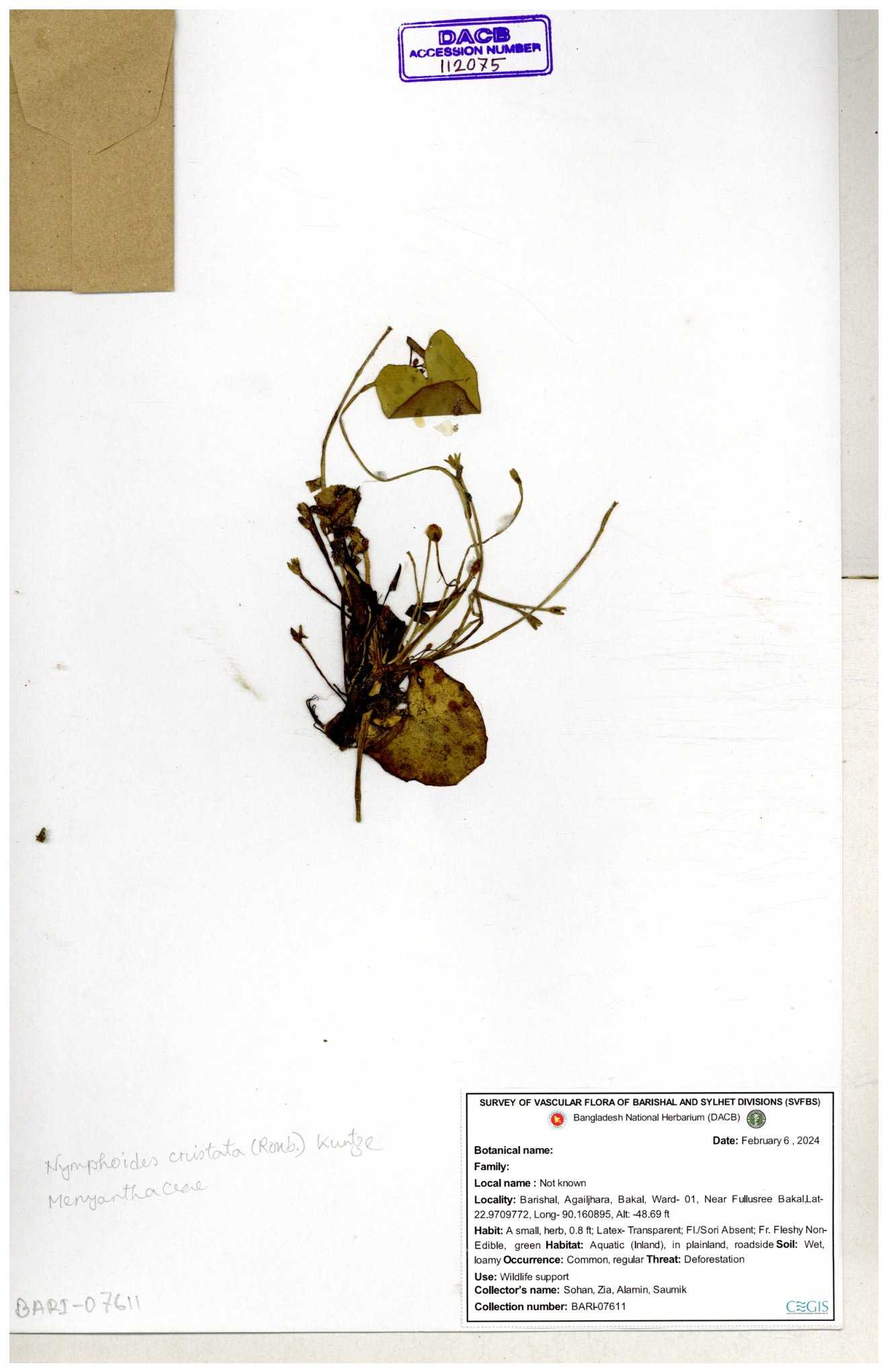 | 111214 | Menyanthaceae | Nymphoides cristata | 30-11--0001 |