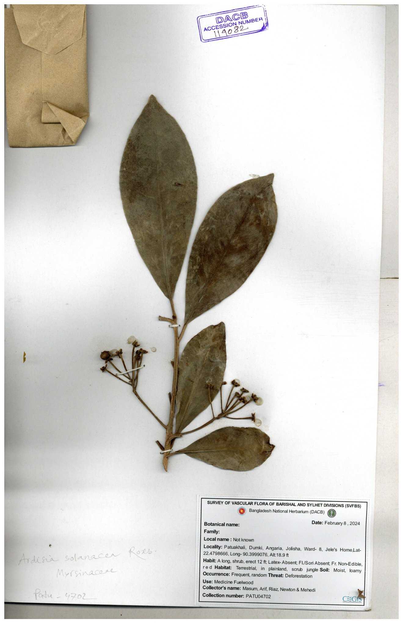 | Accession No. | Family | Species/Sub-Species Name | Local Name | Collector | Collection No. & Date | Location | Uses | Note | Image(s) |