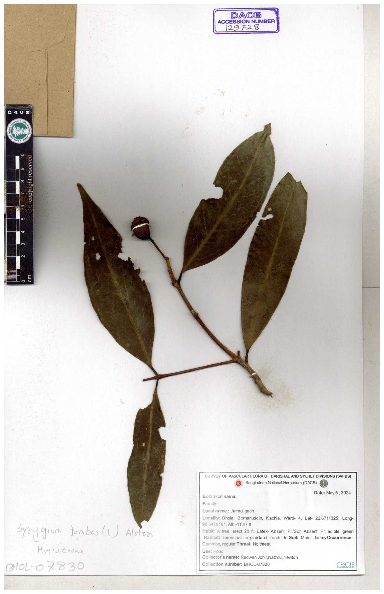 | 129728 | Myricaceae | Syeygium jambos | 30-11--0001 |
