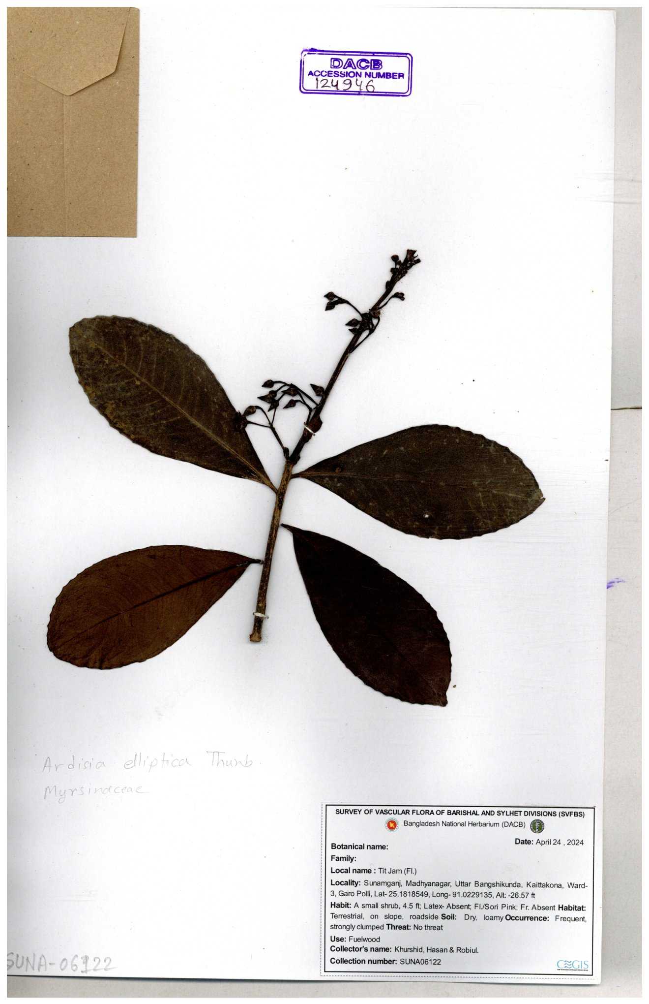 | 91209 | Myrsinaceae | Ardisia eliptica | 30-11--0001 |
