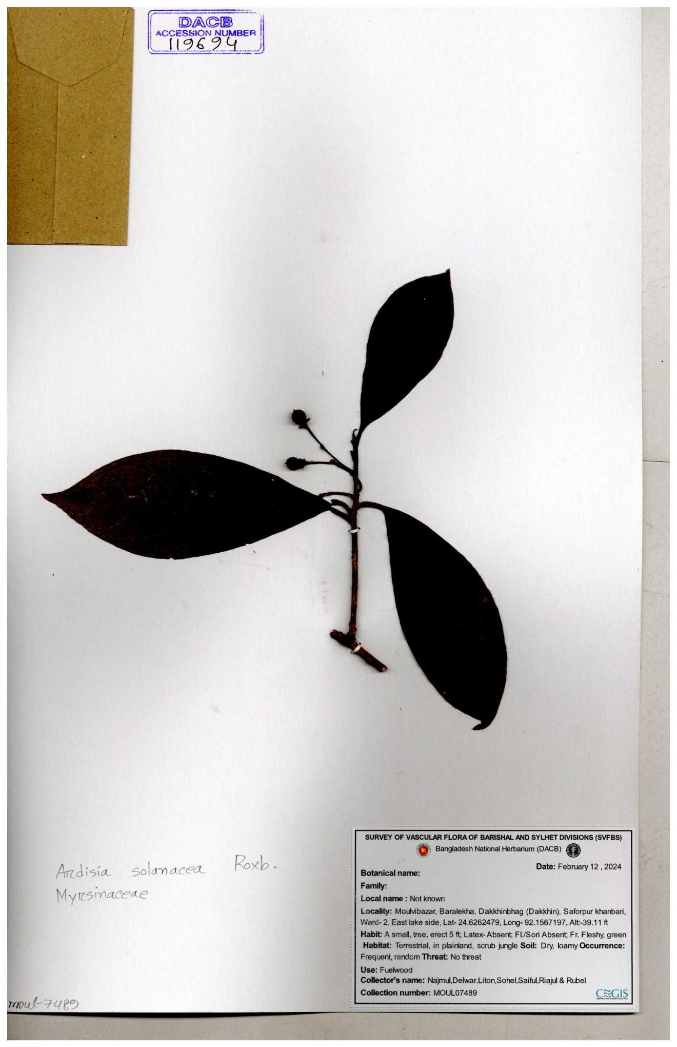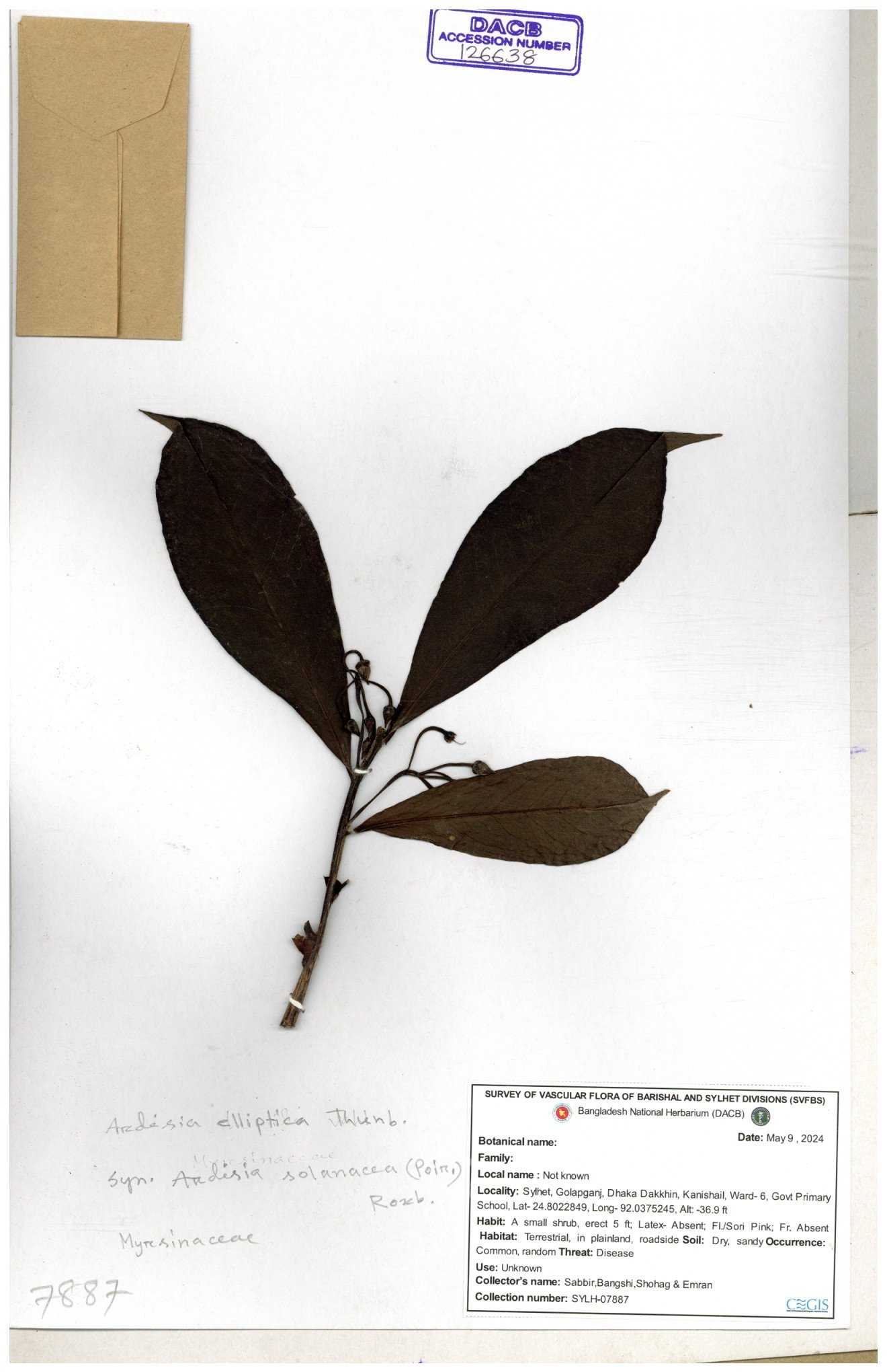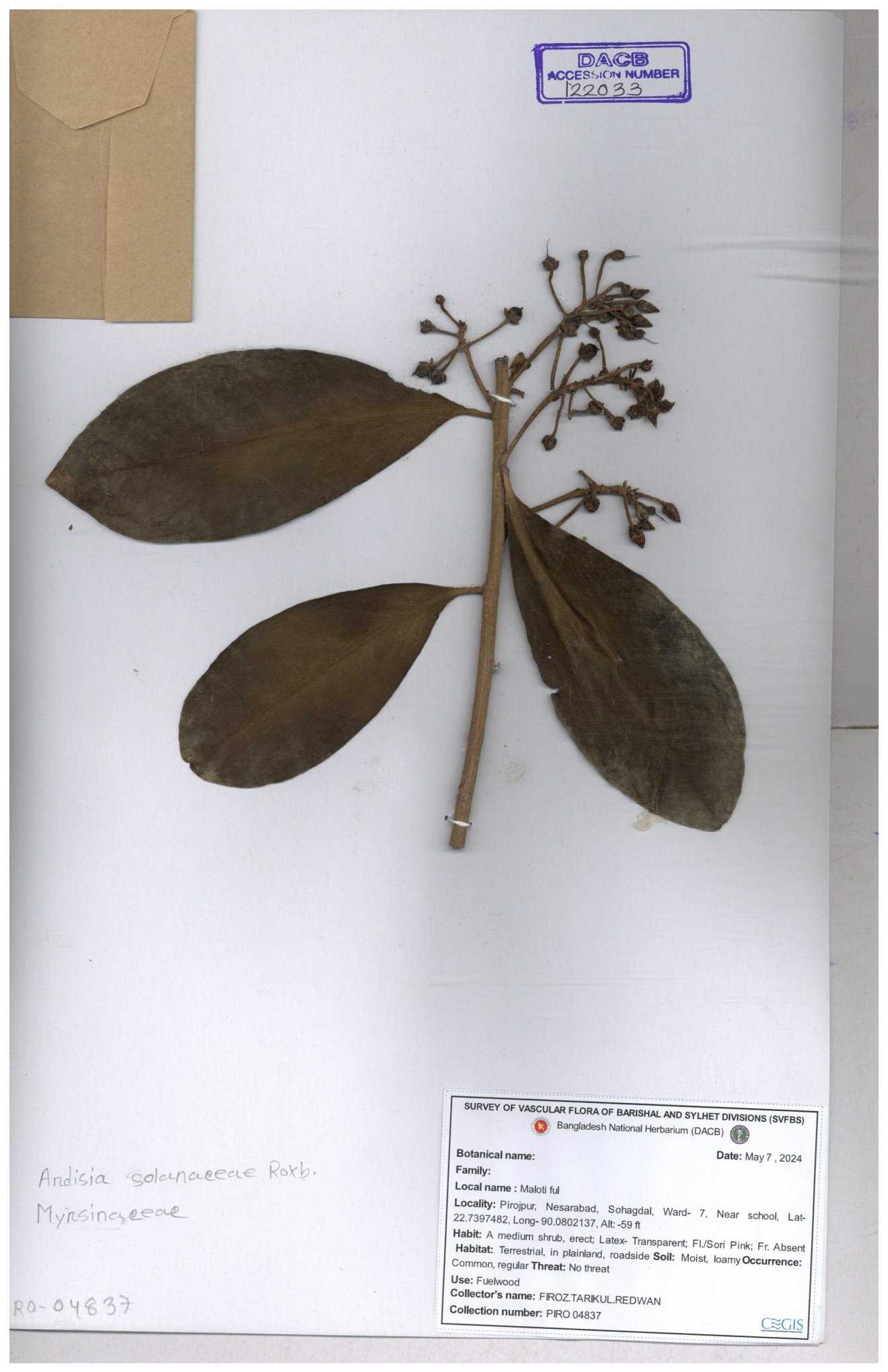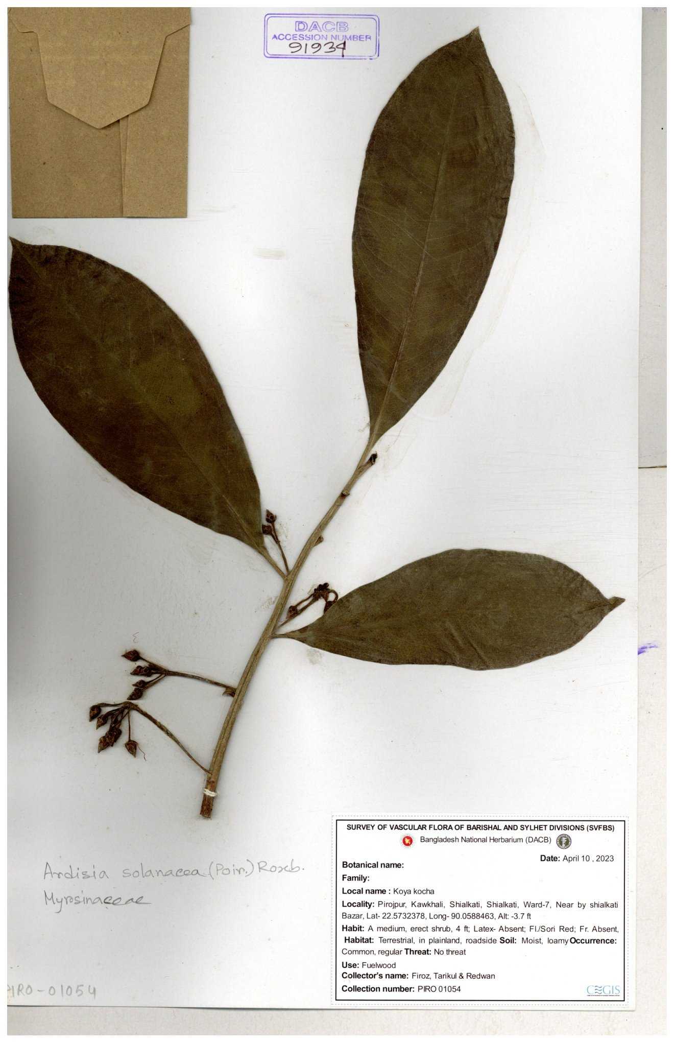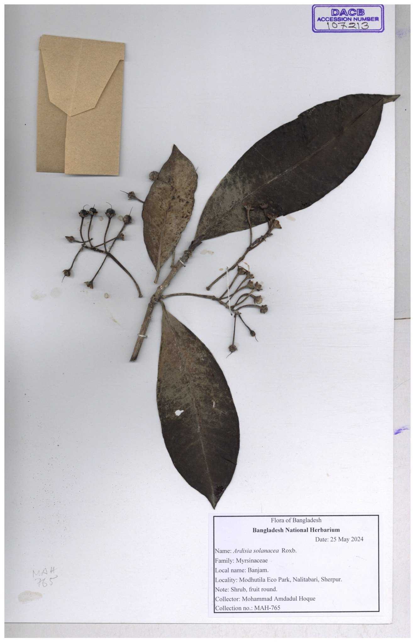 | 58477 | Myrsinaceae | Ardisia solanacea | Niyamul Kabir et al | NK-5867 27-09-2017 |