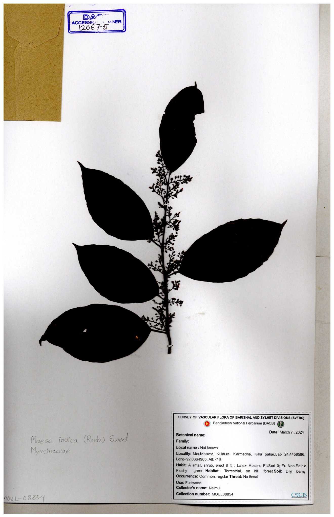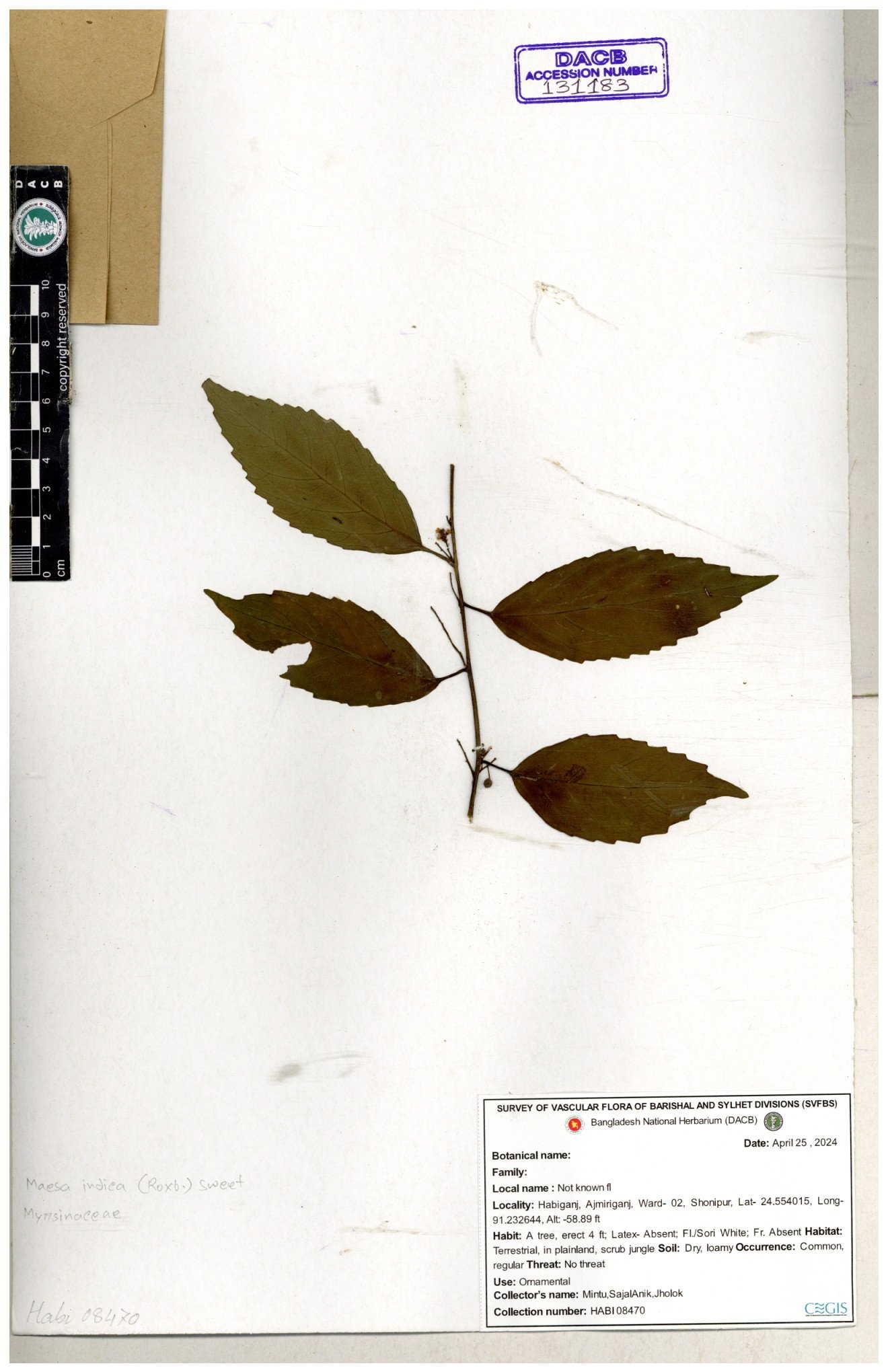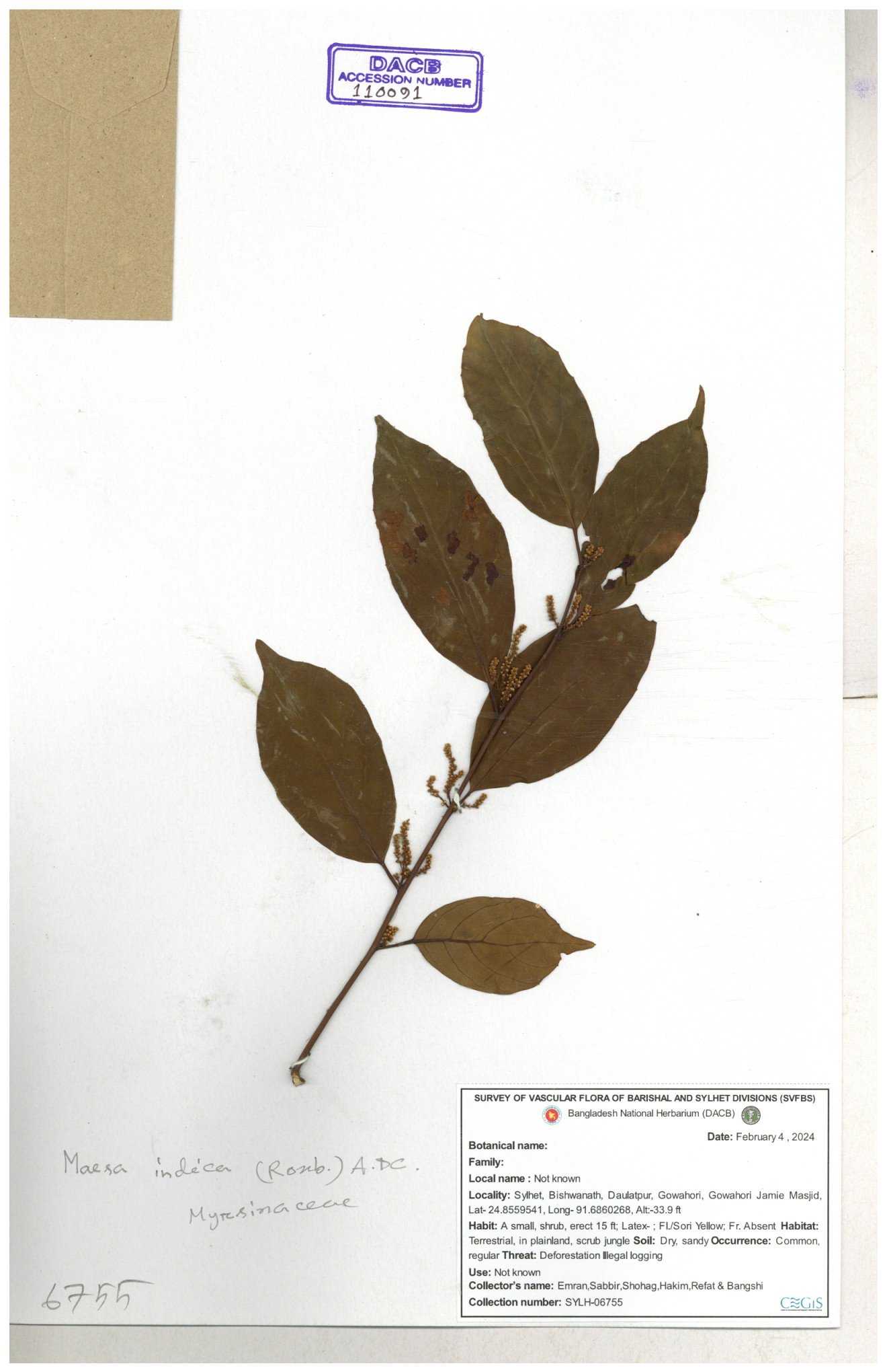 | 72370 | Myrsinaceae | Maesa indica | I Hossen et al | IH-823 10-10-2016 |