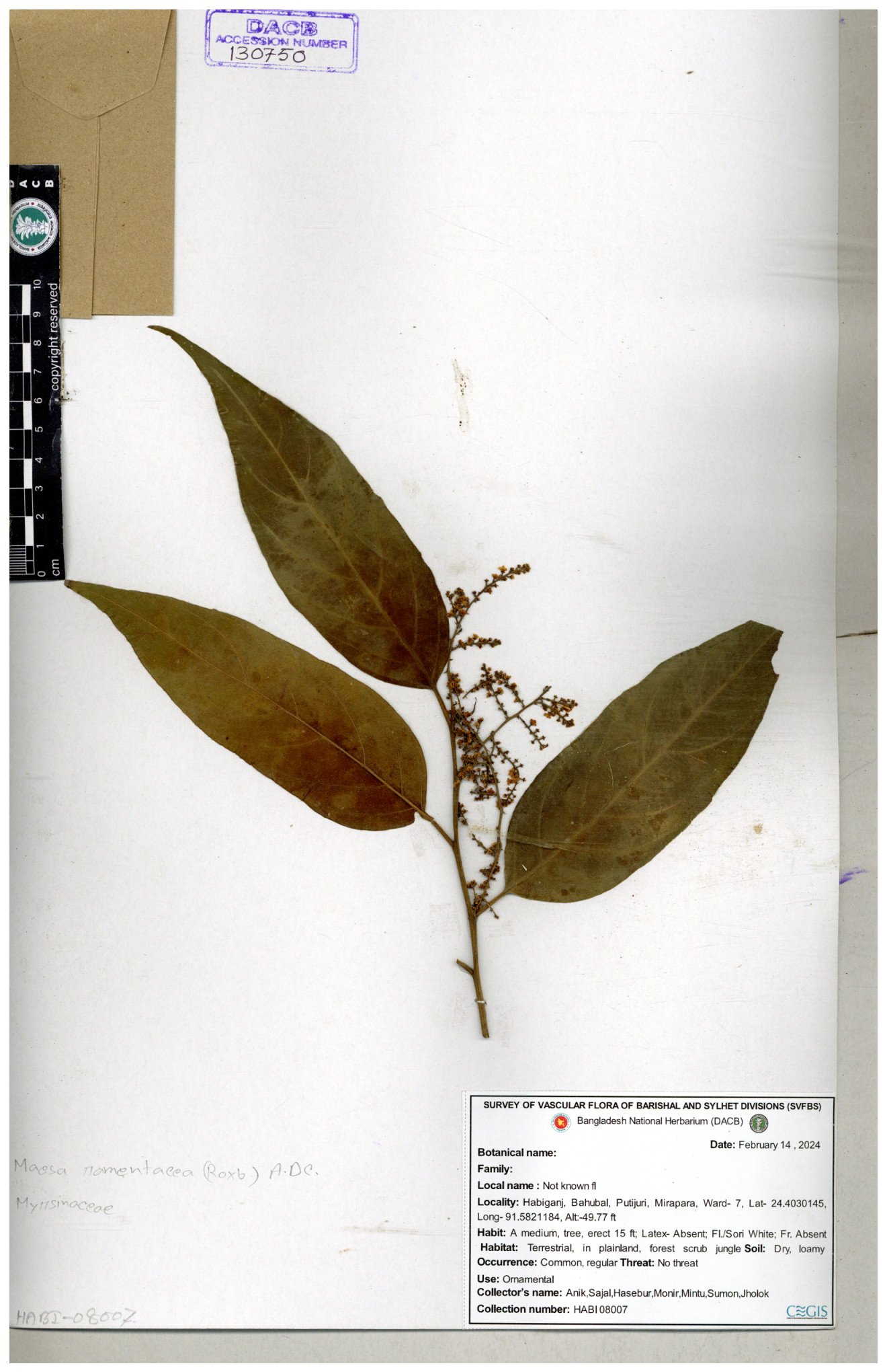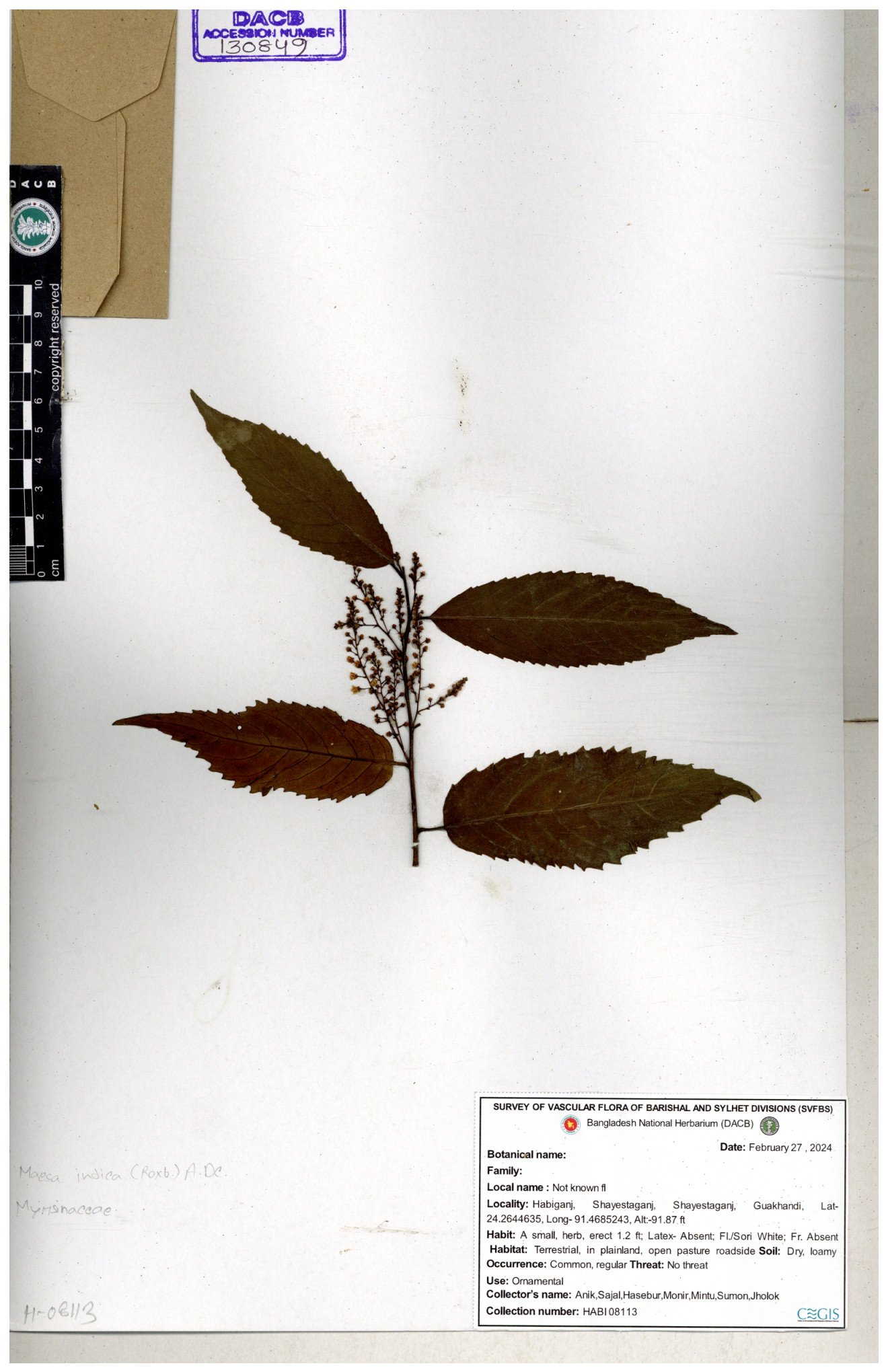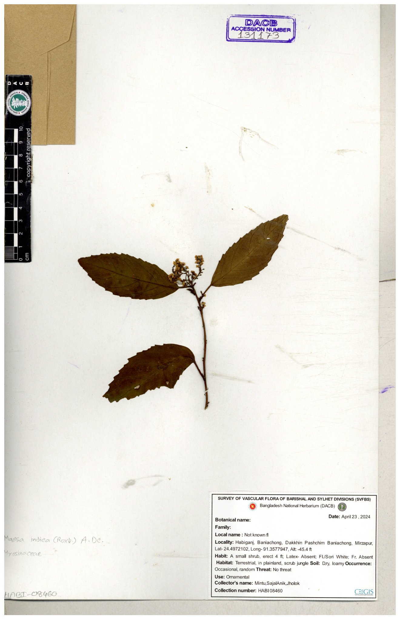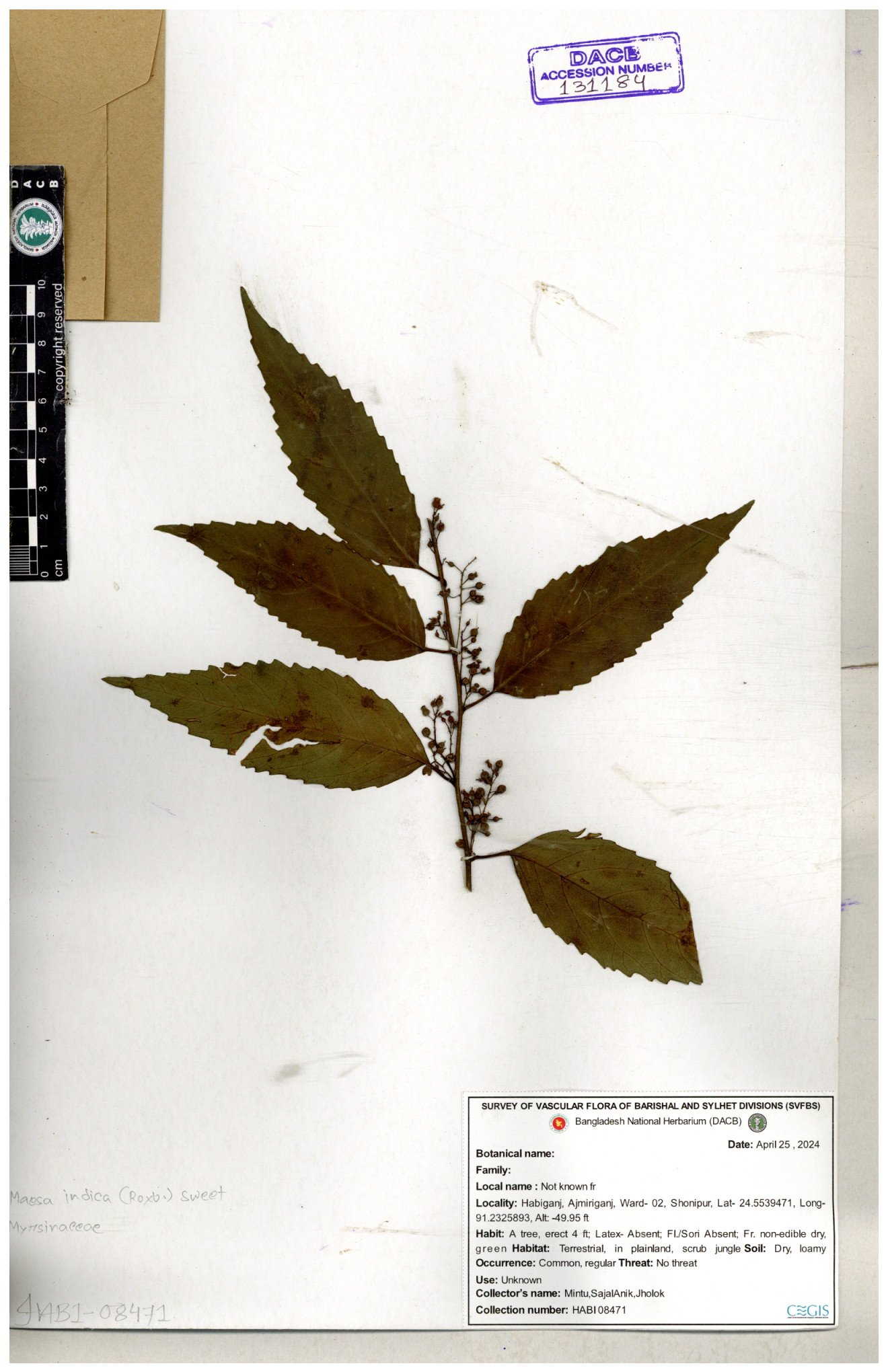 | 72370 | Myrsinaceae | Maesa indica | I Hossen et al | IH-823 10-10-2016 |
