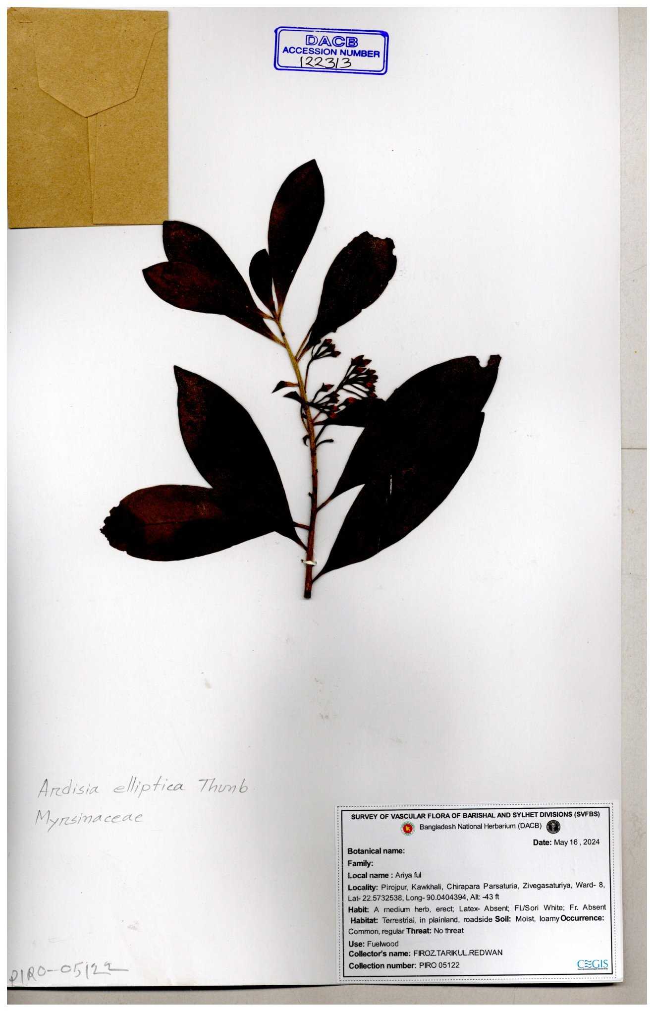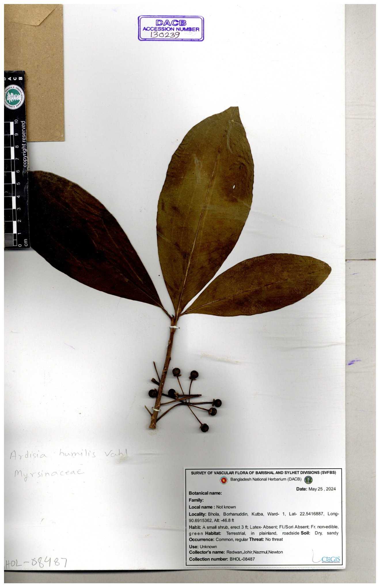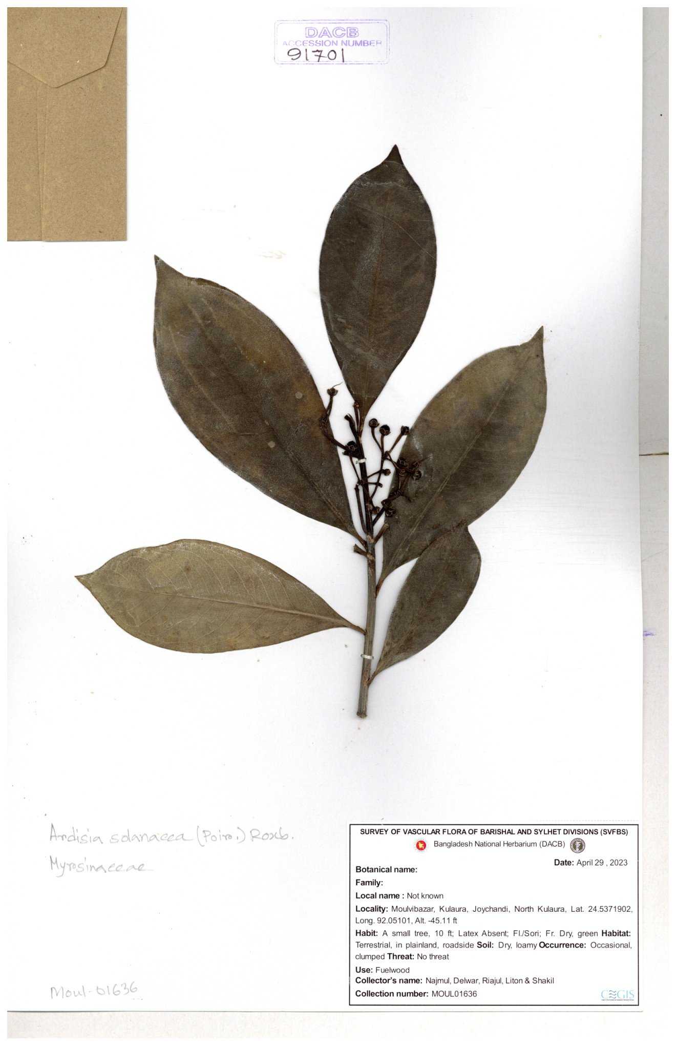 | 15702 | Myrsinaceae | Ardisia humilis | Huq et al | H. 5955 29-08-1983 |