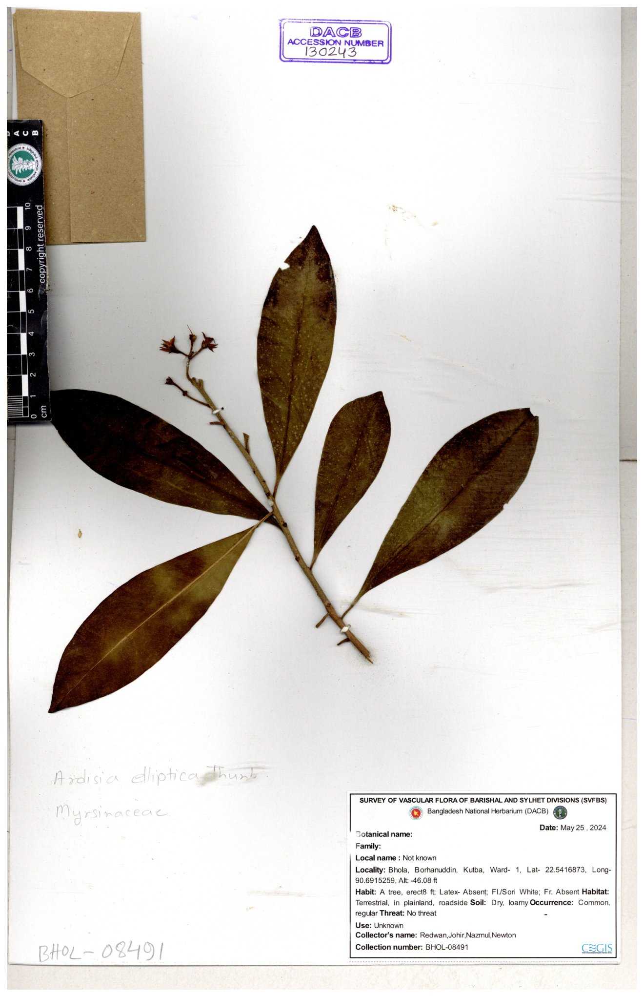 | 62058 | Myrsinaceae | Ardisia colorata | Niyamul Kabir et al | NK-6209 07-11-2017 |
