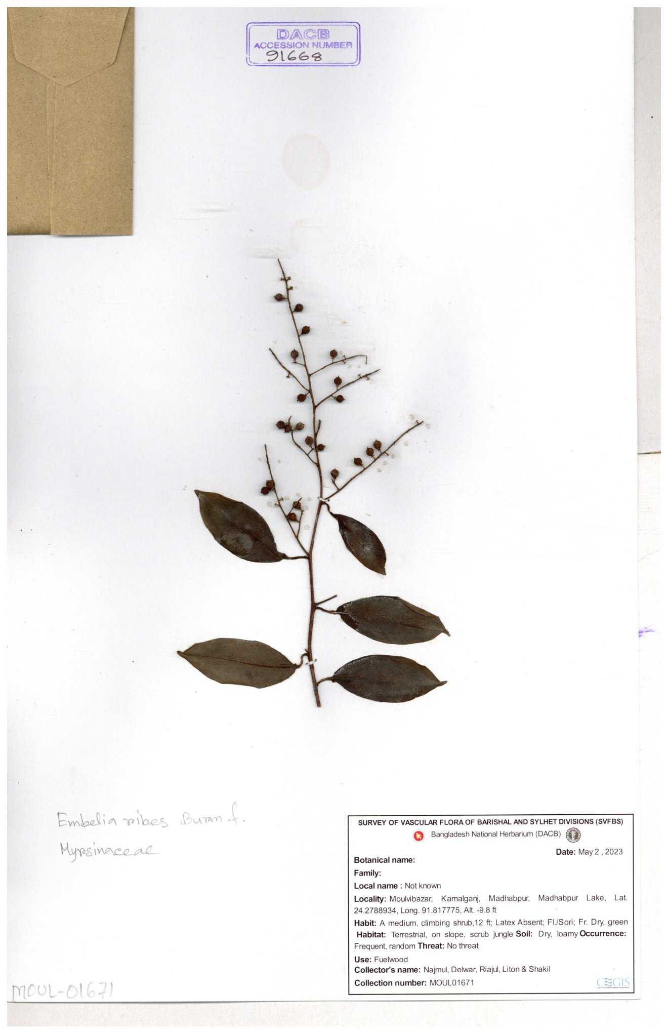 | 31832 | Myrsinaceae | Embelia - | A.M. Huq et al | 10516 08-05-1997 |