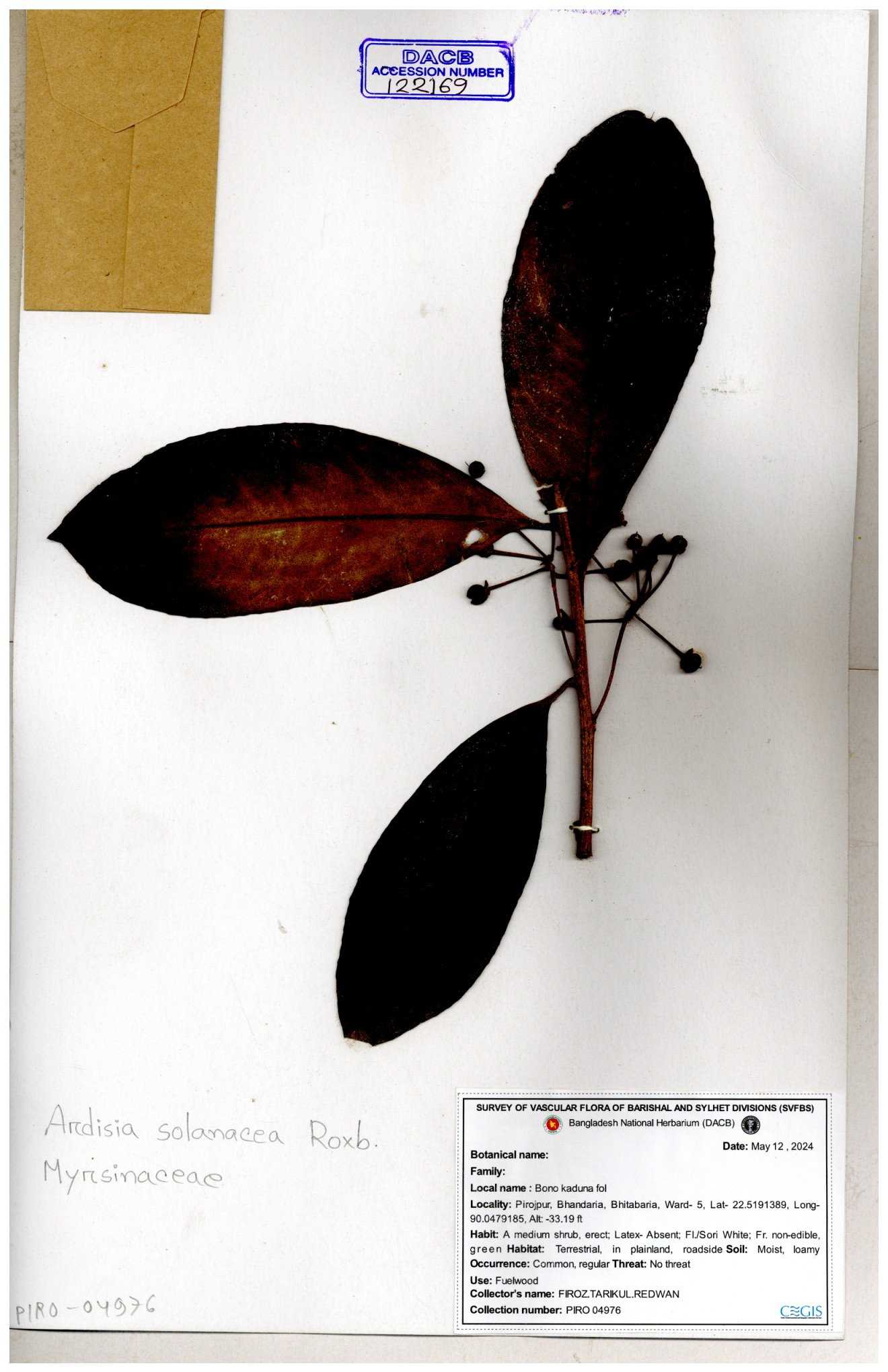 | 122169 | Myrsinaceae | Ardisia solanacea | 30-11--0001 |