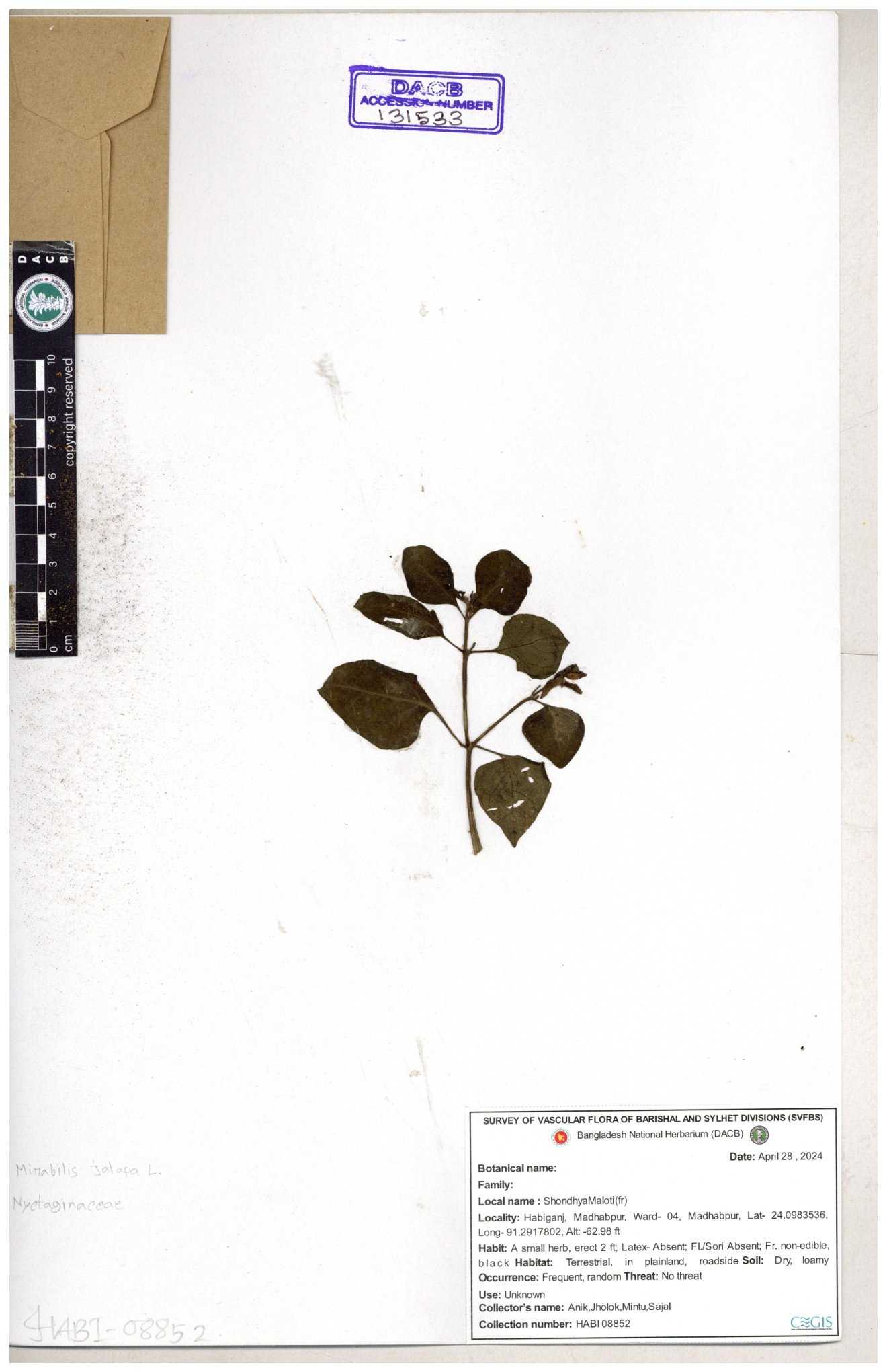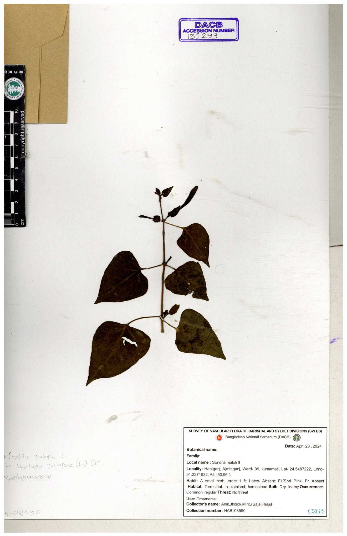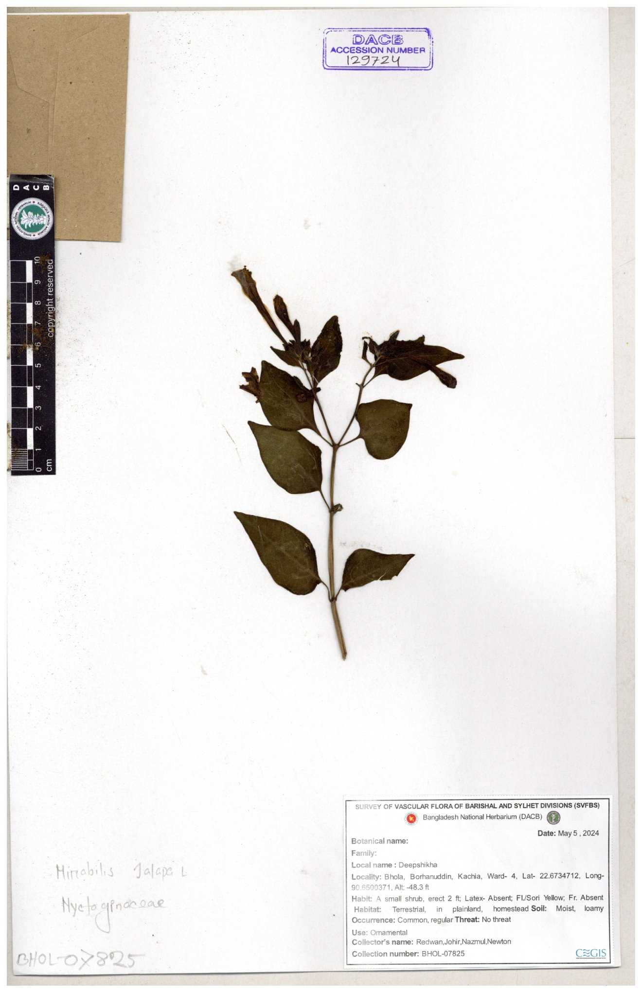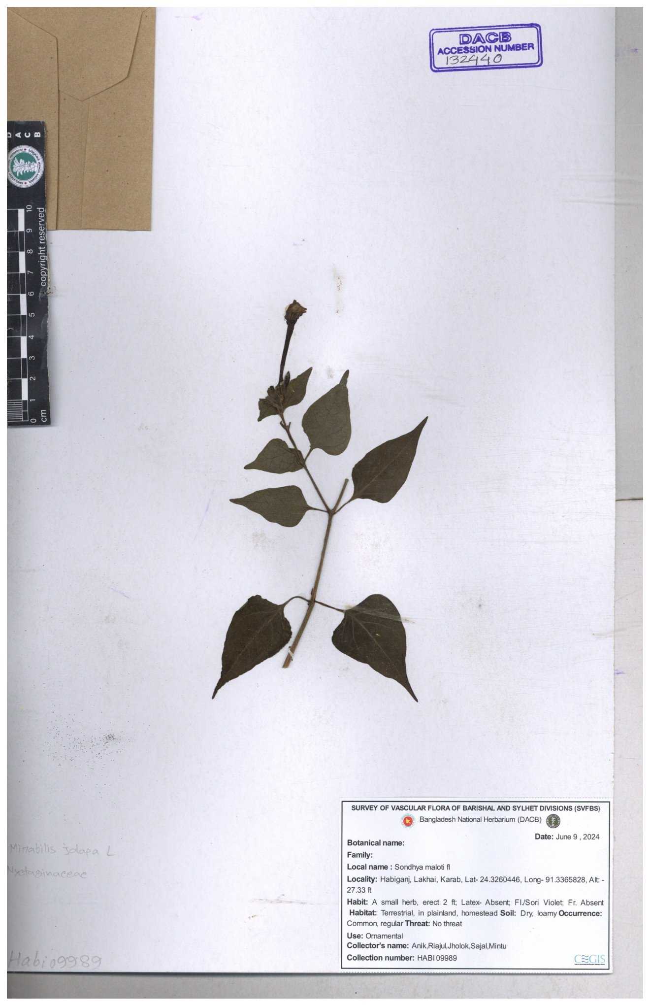 | 66097 | Nyctaginaceae | Mirabilis jalapa | Wild Chili | Robin Chakma | RC-68 02-08-2017 |