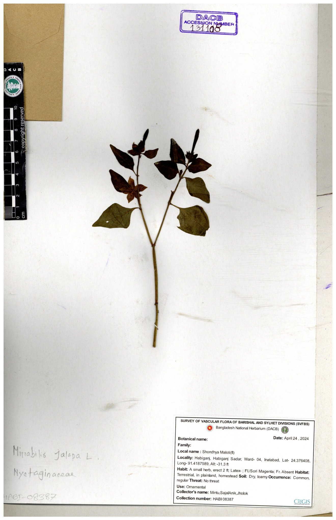 | 131108 | Nyctaginaceae | Mirabilis jalapa | 30-11--0001 |