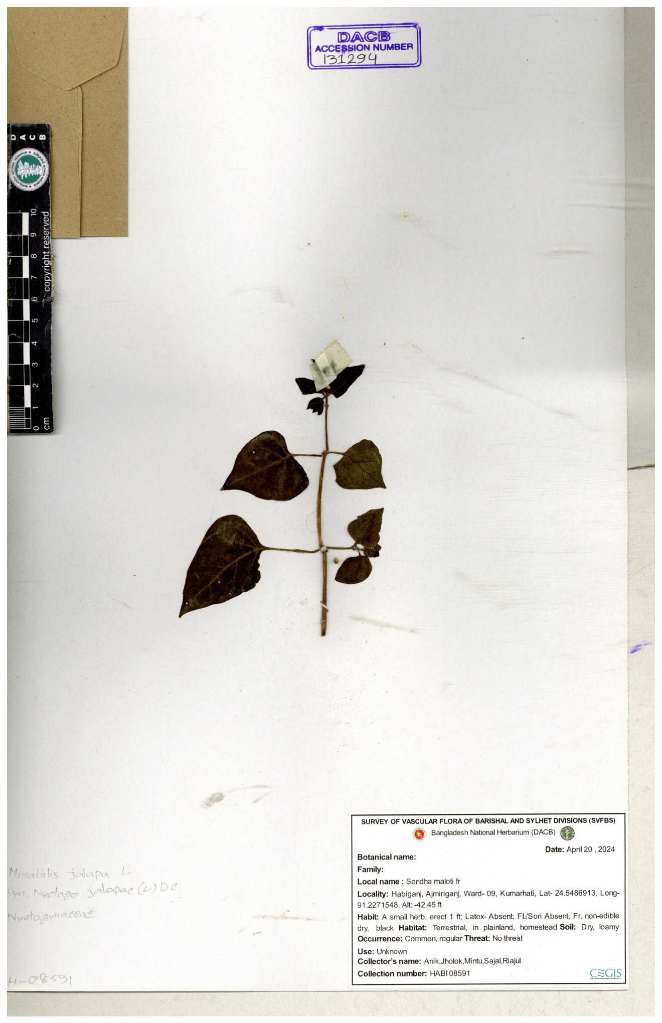 | 131294 | Nyctaginaceae | Mirabilis jalapa | 30-11--0001 |