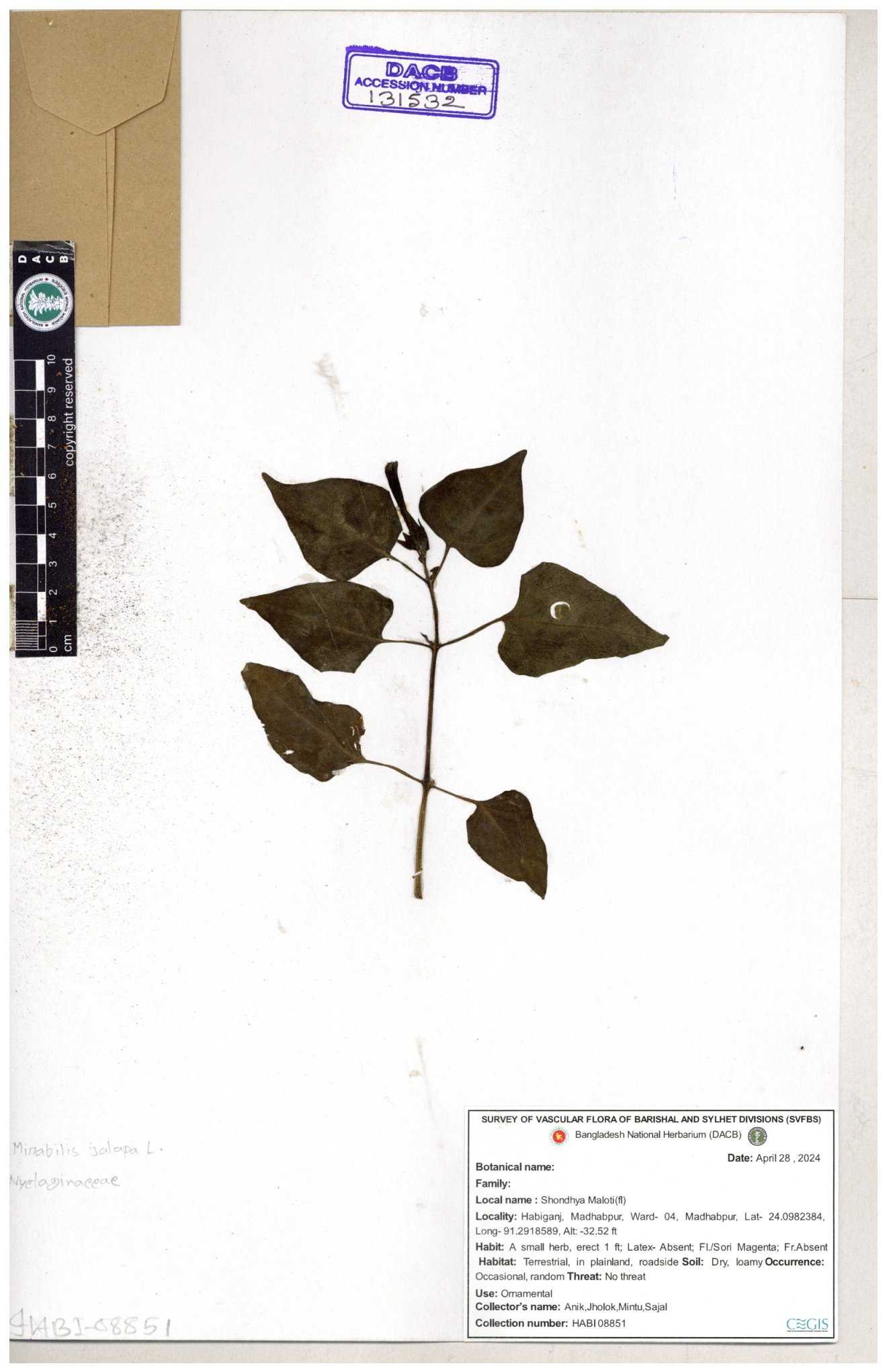 | 131532 | Nyctaginaceae | Mirabilis jalapa | 30-11--0001 |