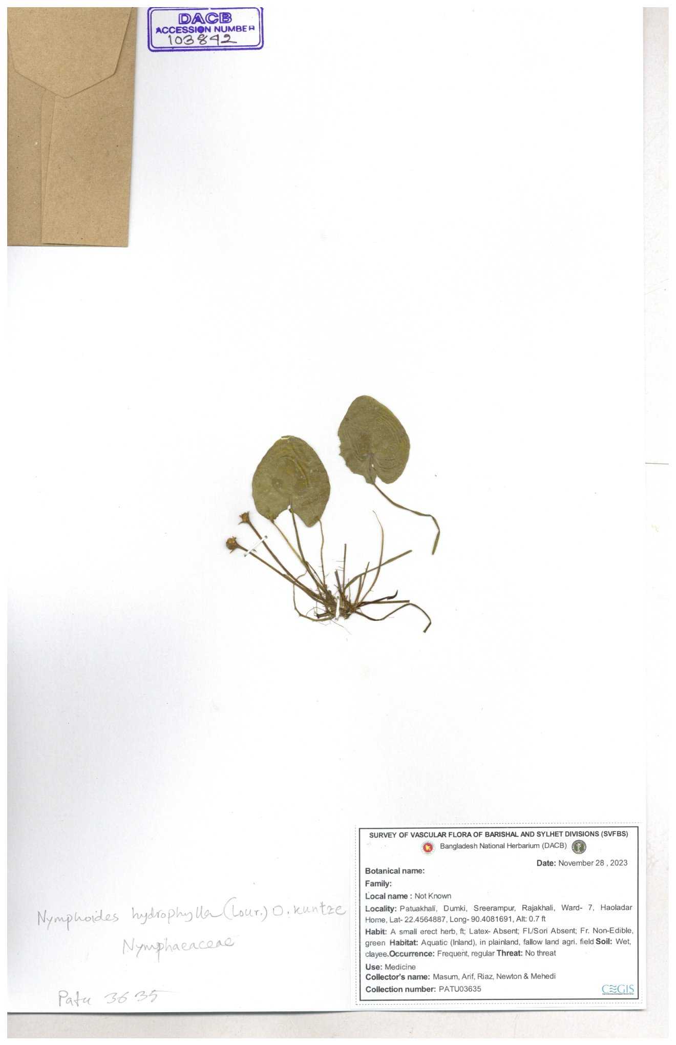 | 103842 | Nymphaeaceae | Nymphoides hydrophylla | 30-11--0001 |