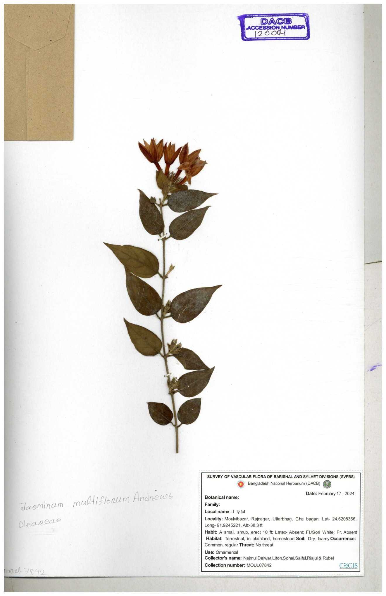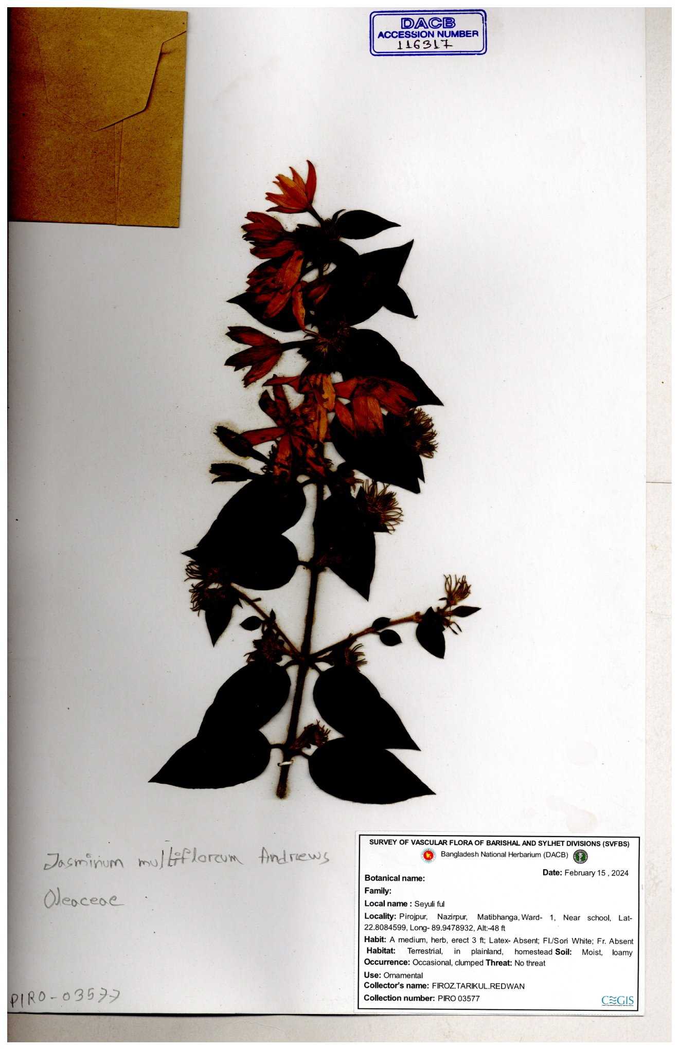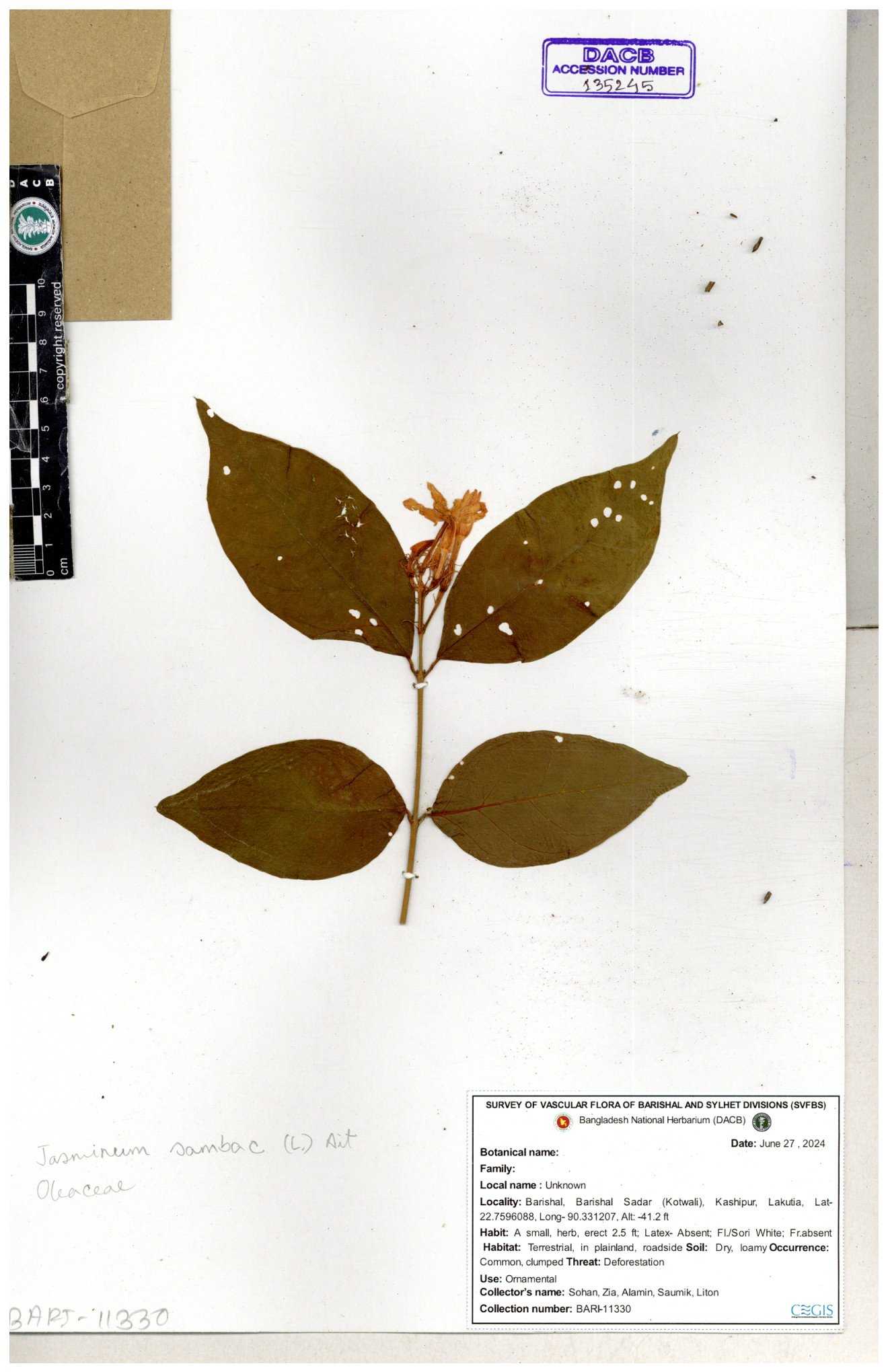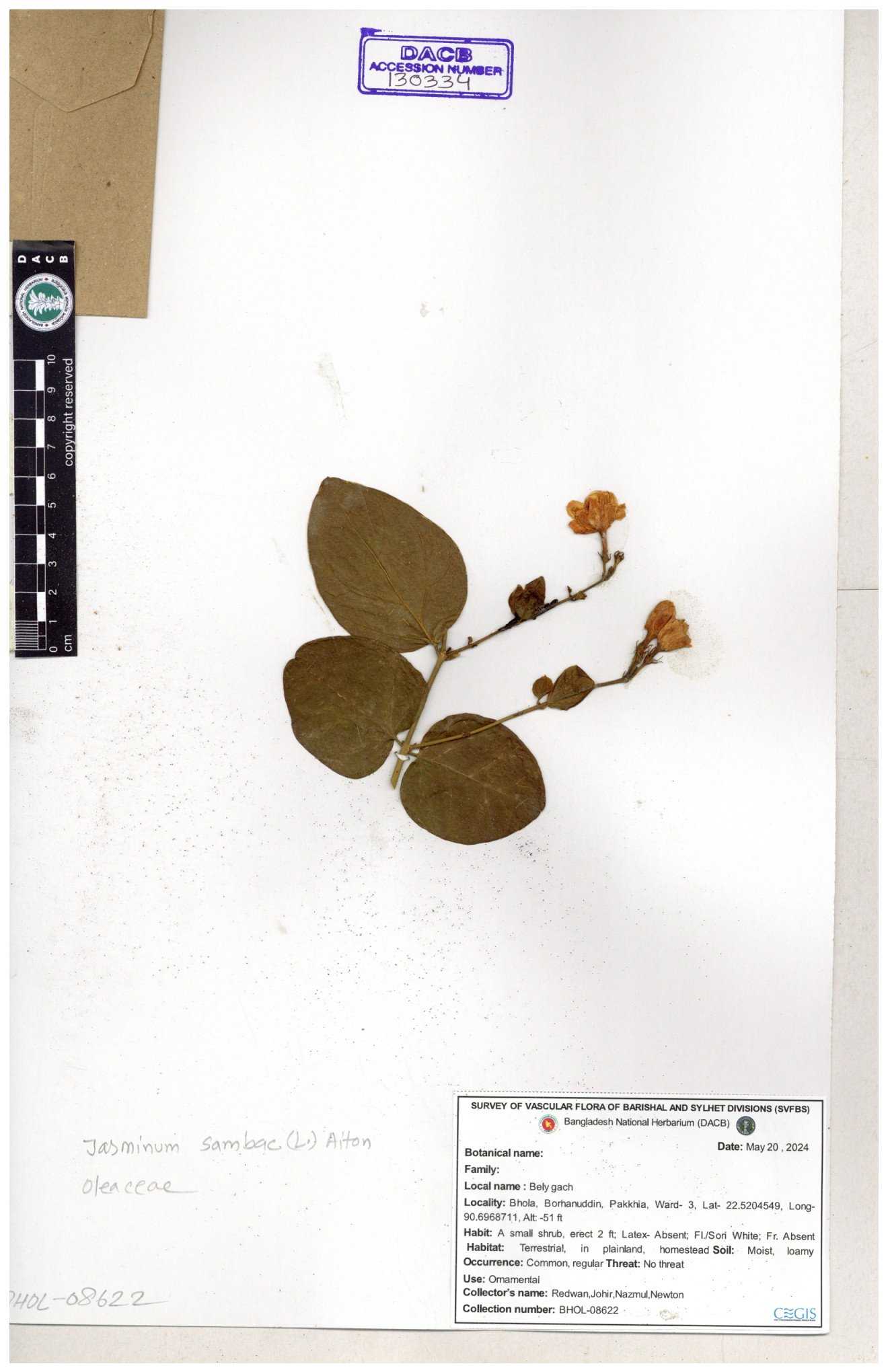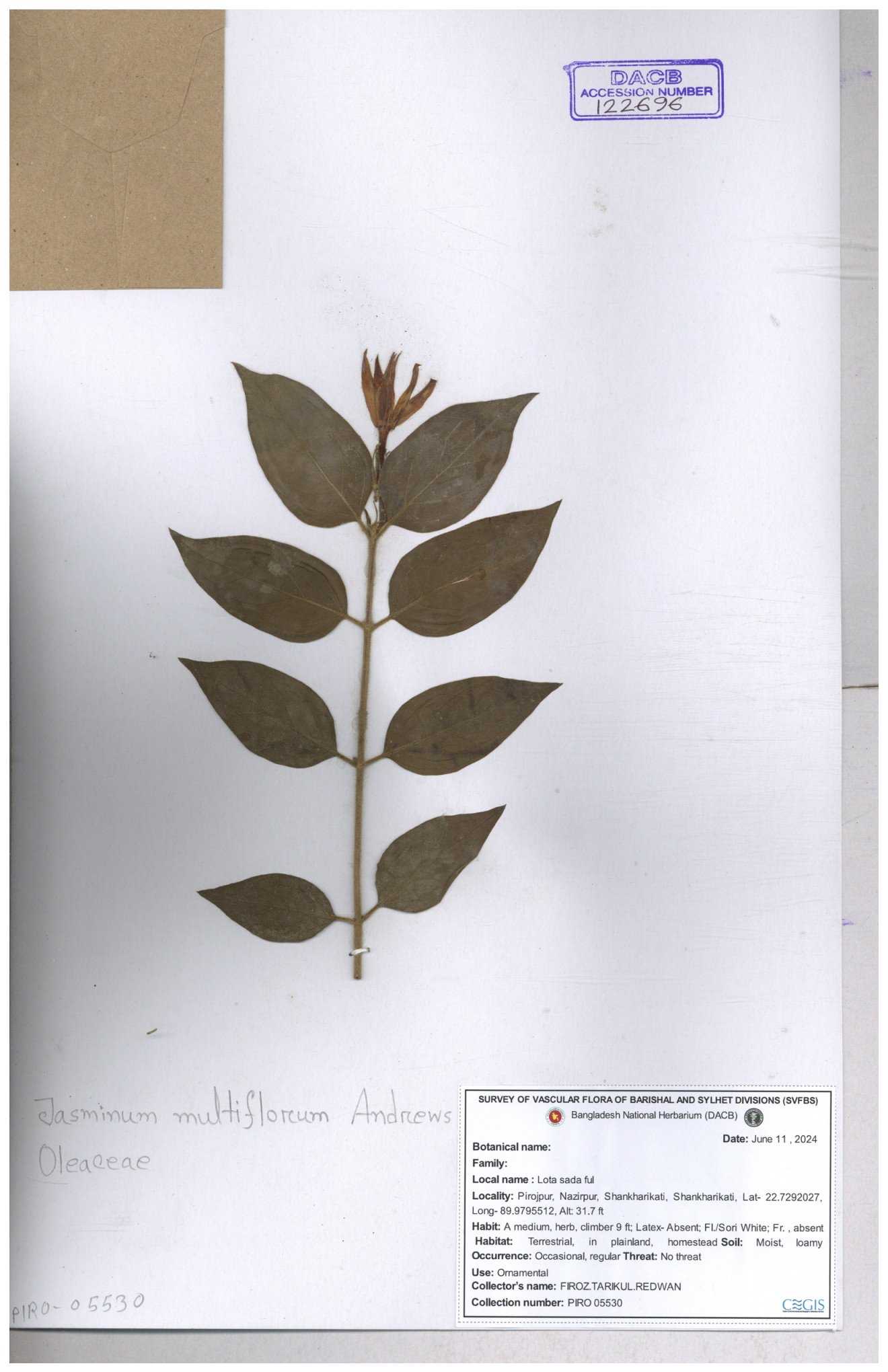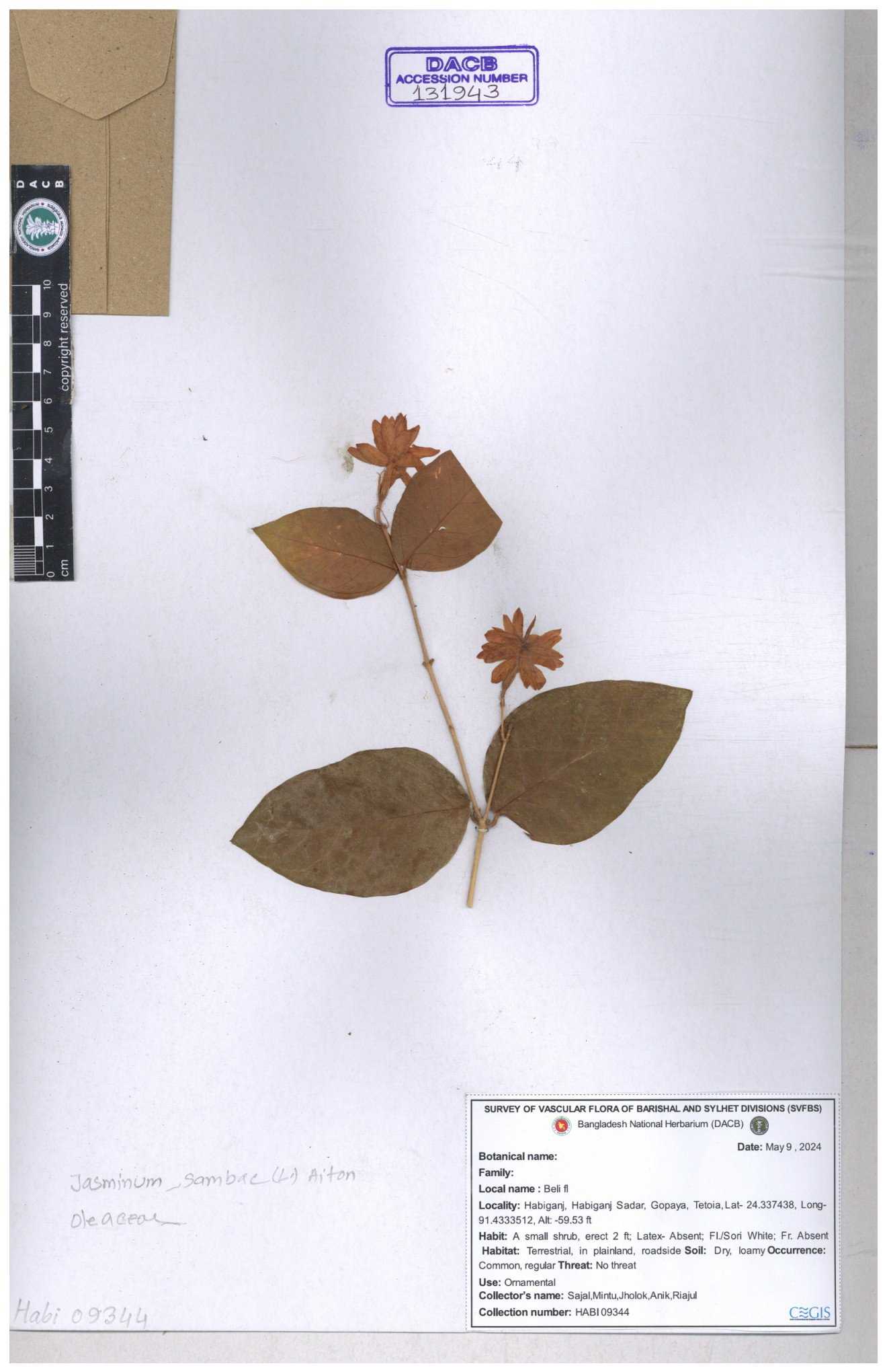 | 65793 | Oleaceae | Nyctanthes arbor-tristis (L.) | Unknown | Naimur Rahman | NR-1401 02-12-2020 |