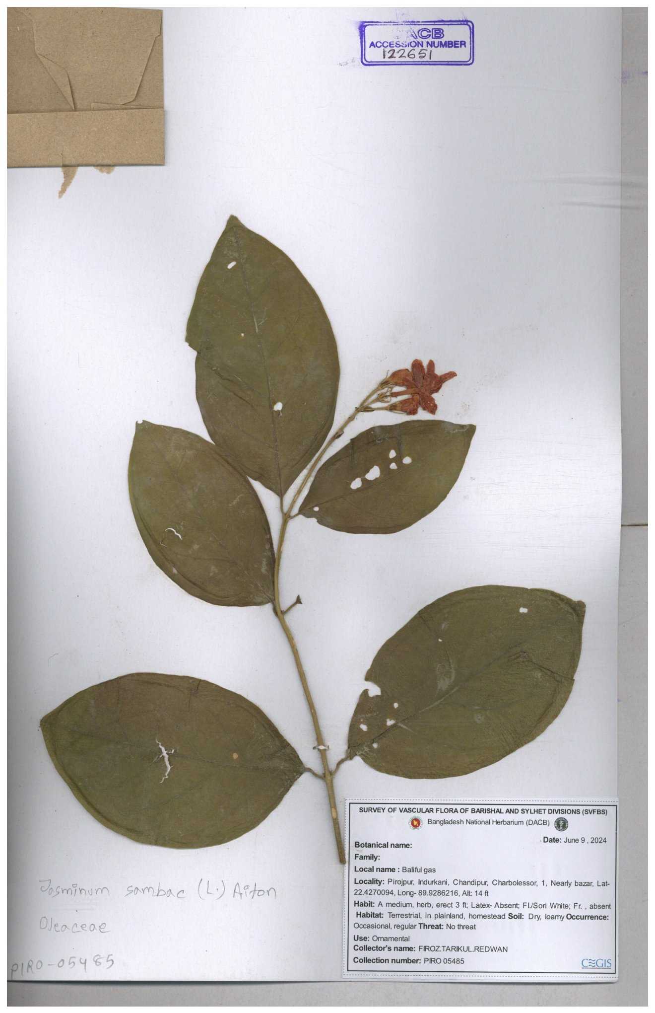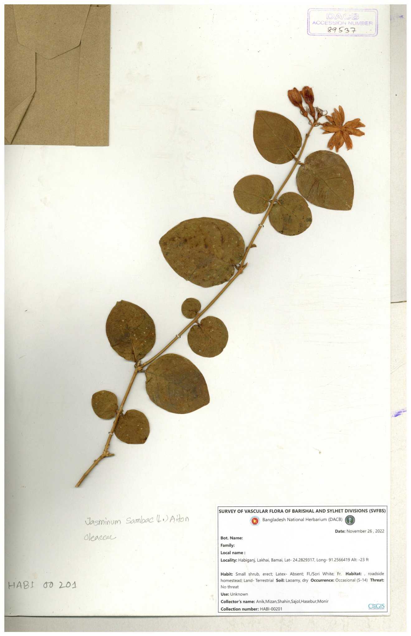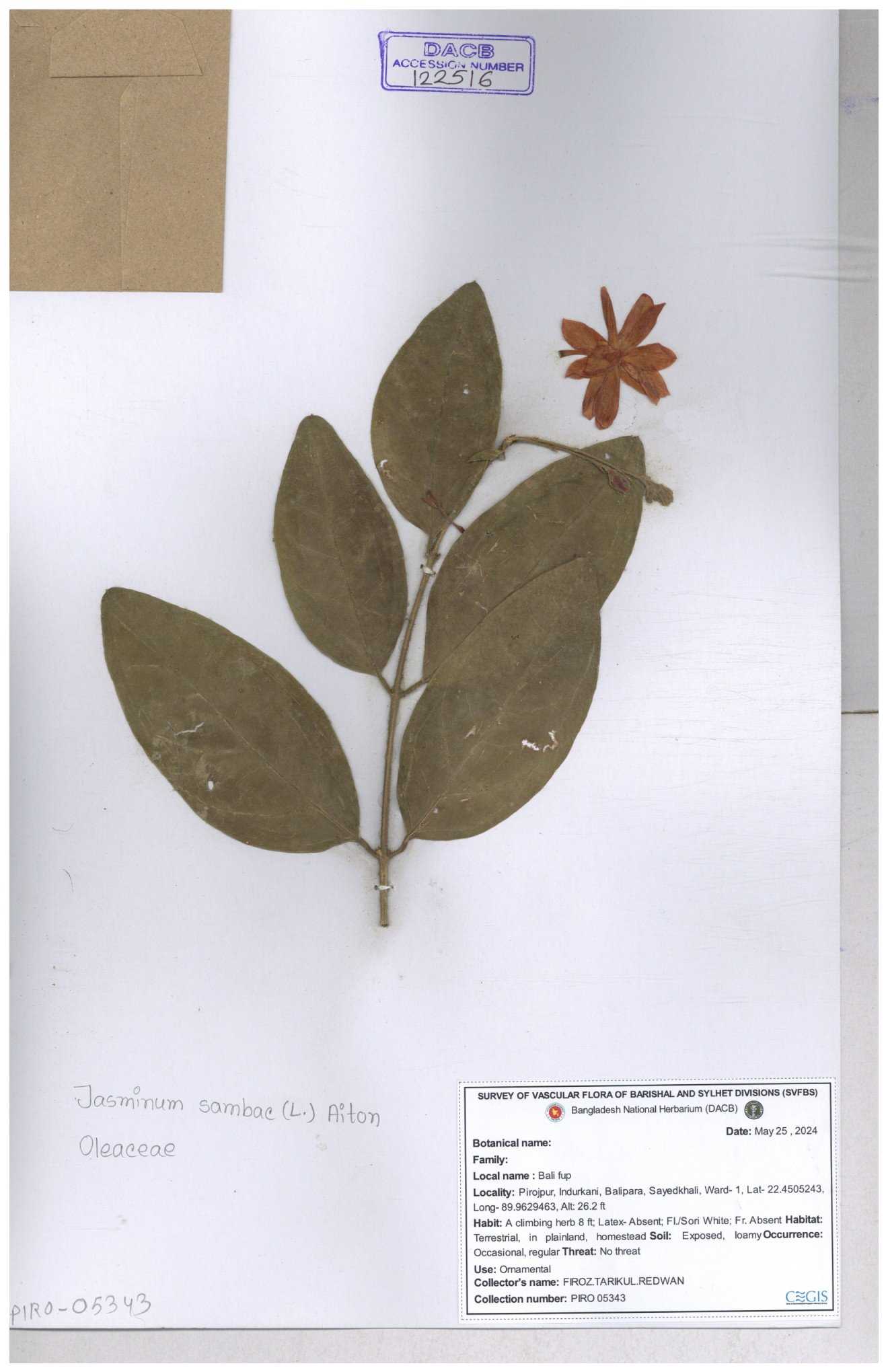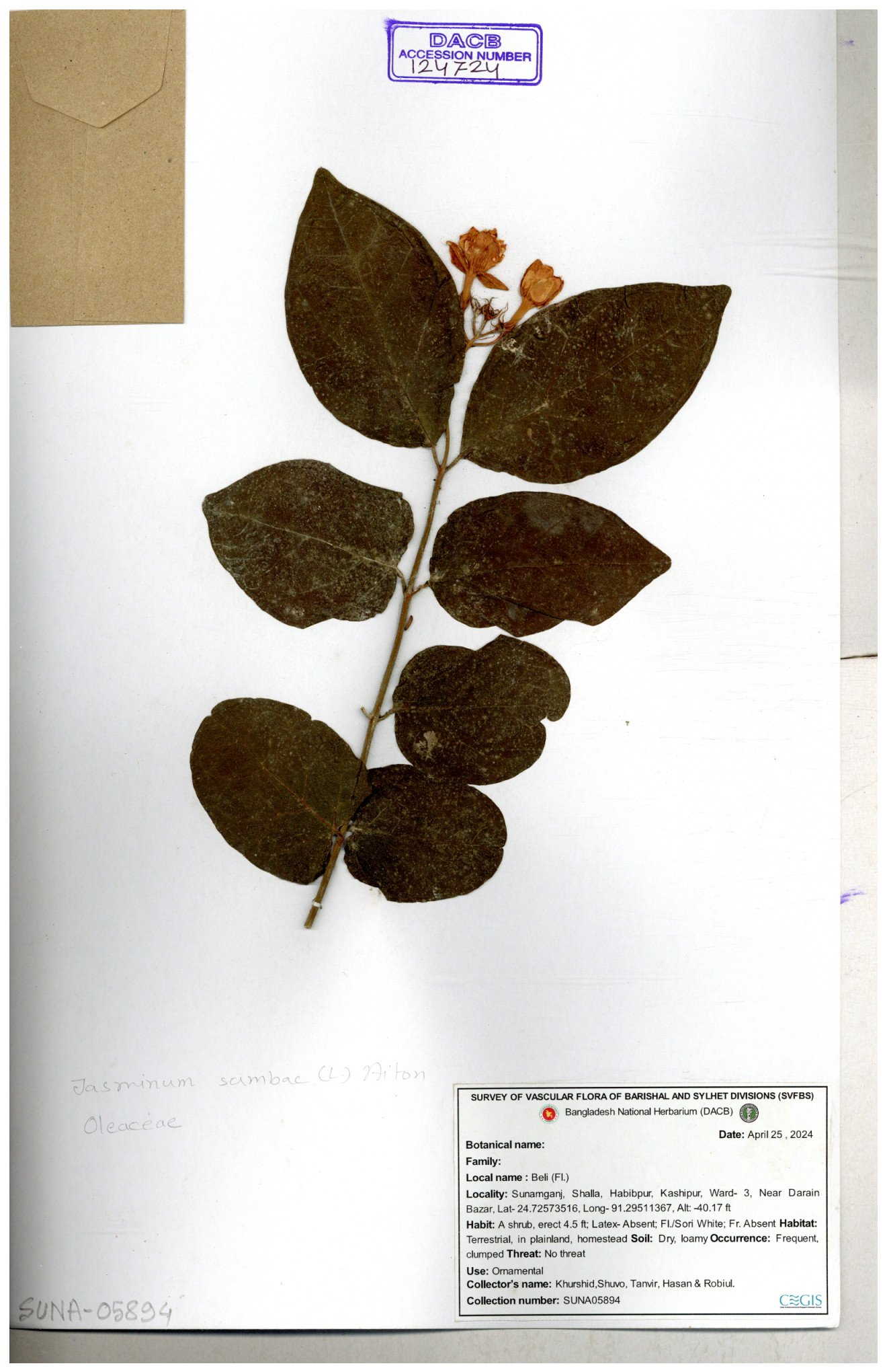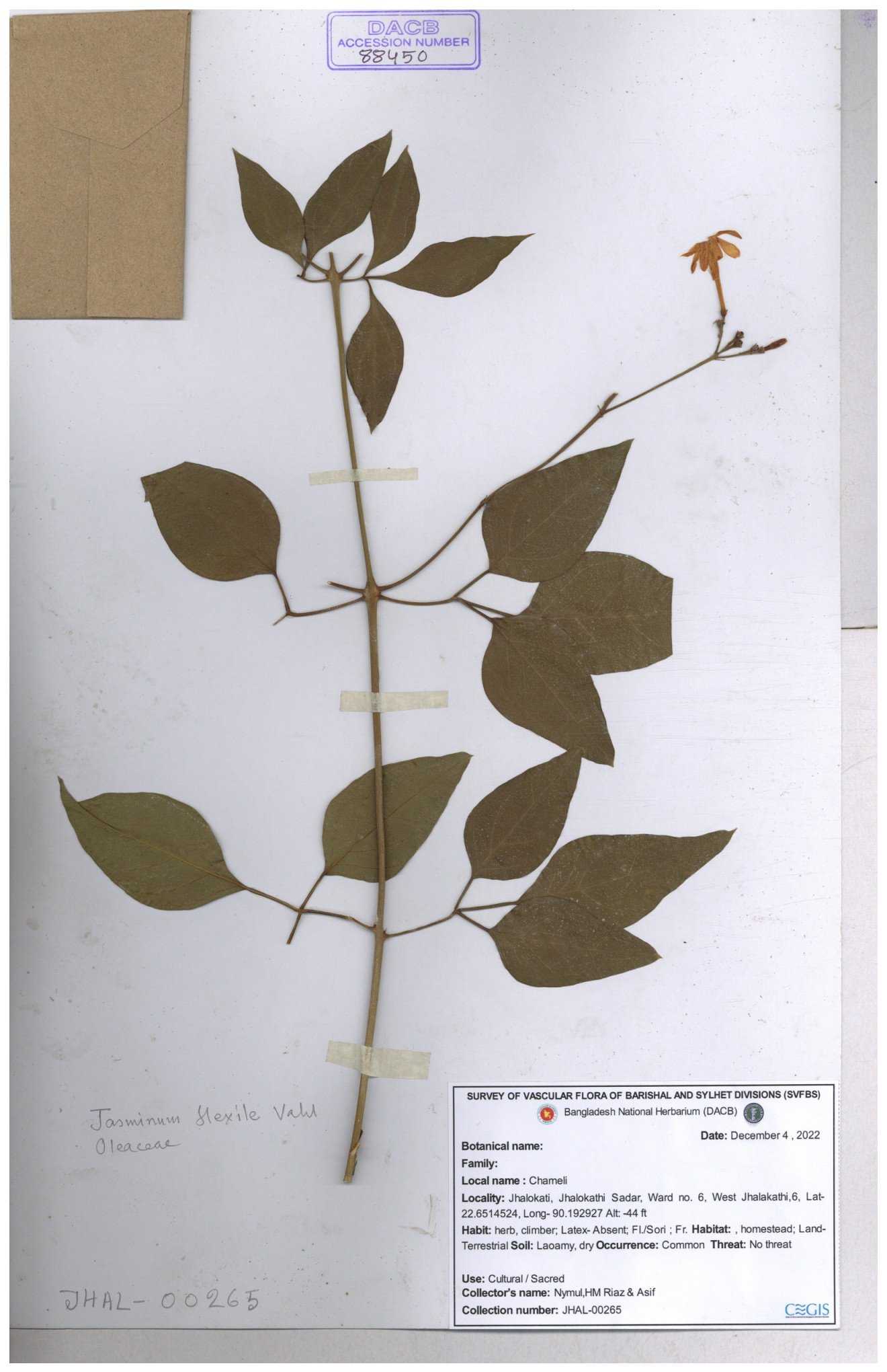 | 65793 | Oleaceae | Nyctanthes arbor-tristis (L.) | Unknown | Naimur Rahman | NR-1401 02-12-2020 |