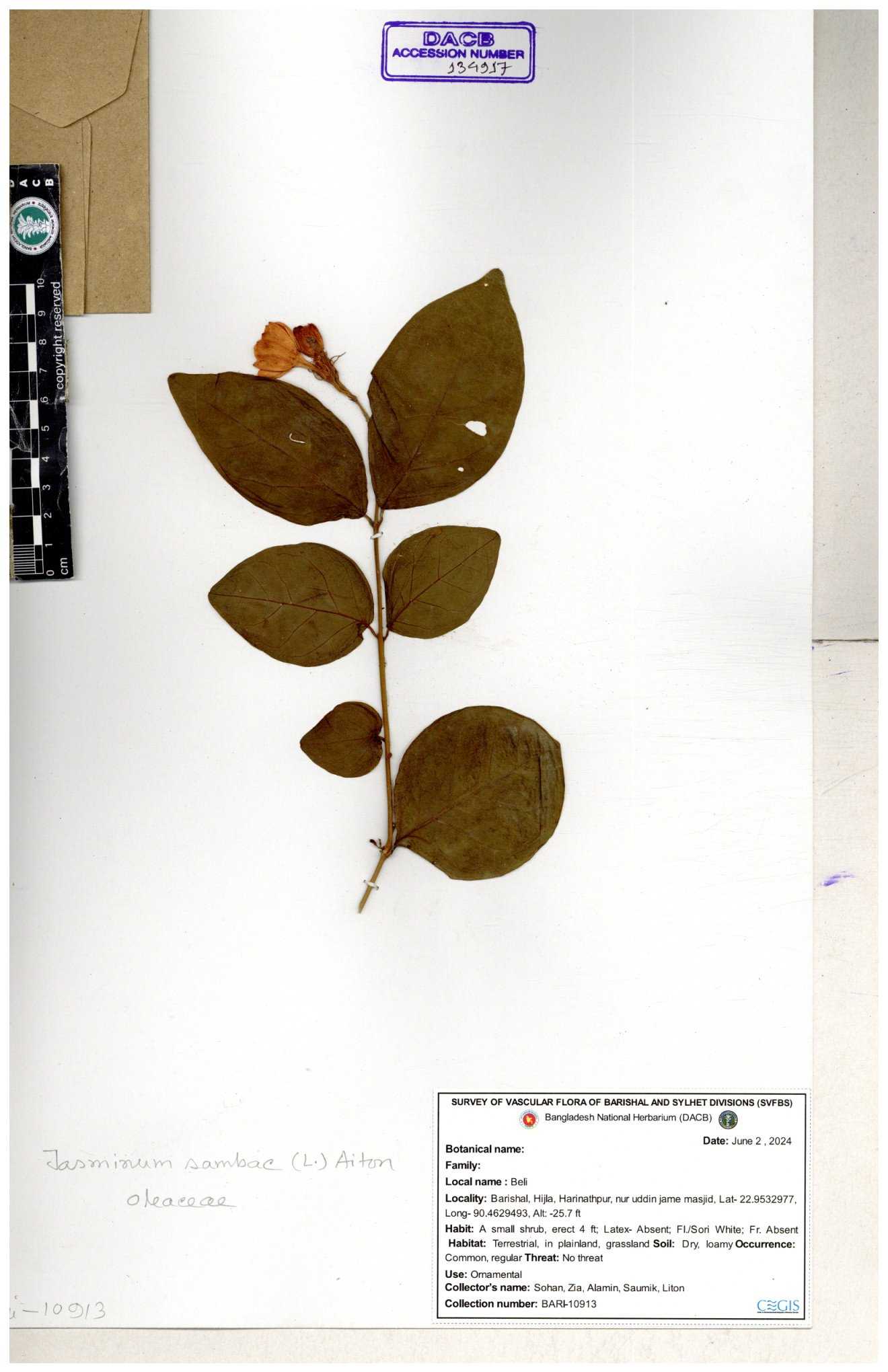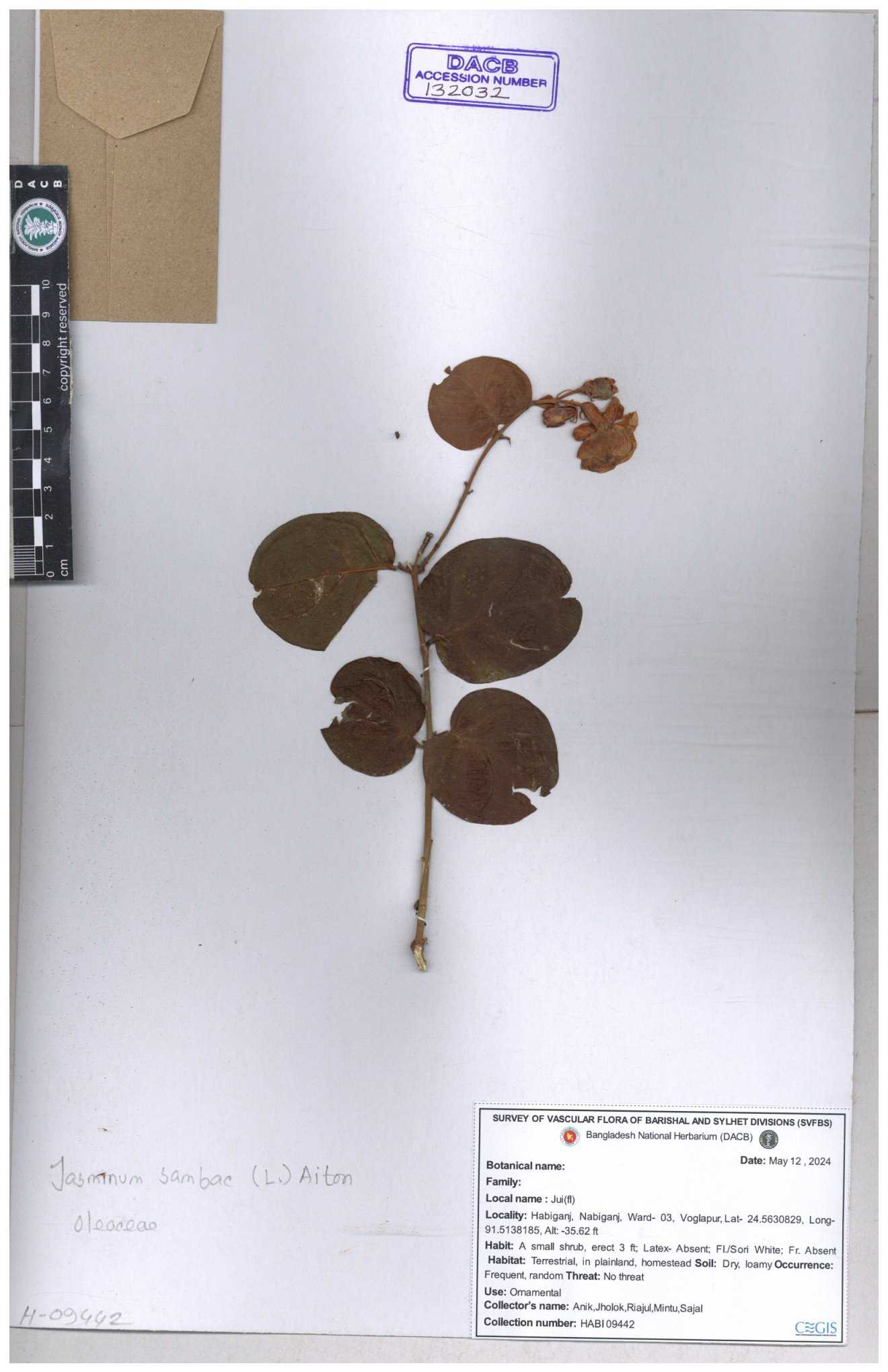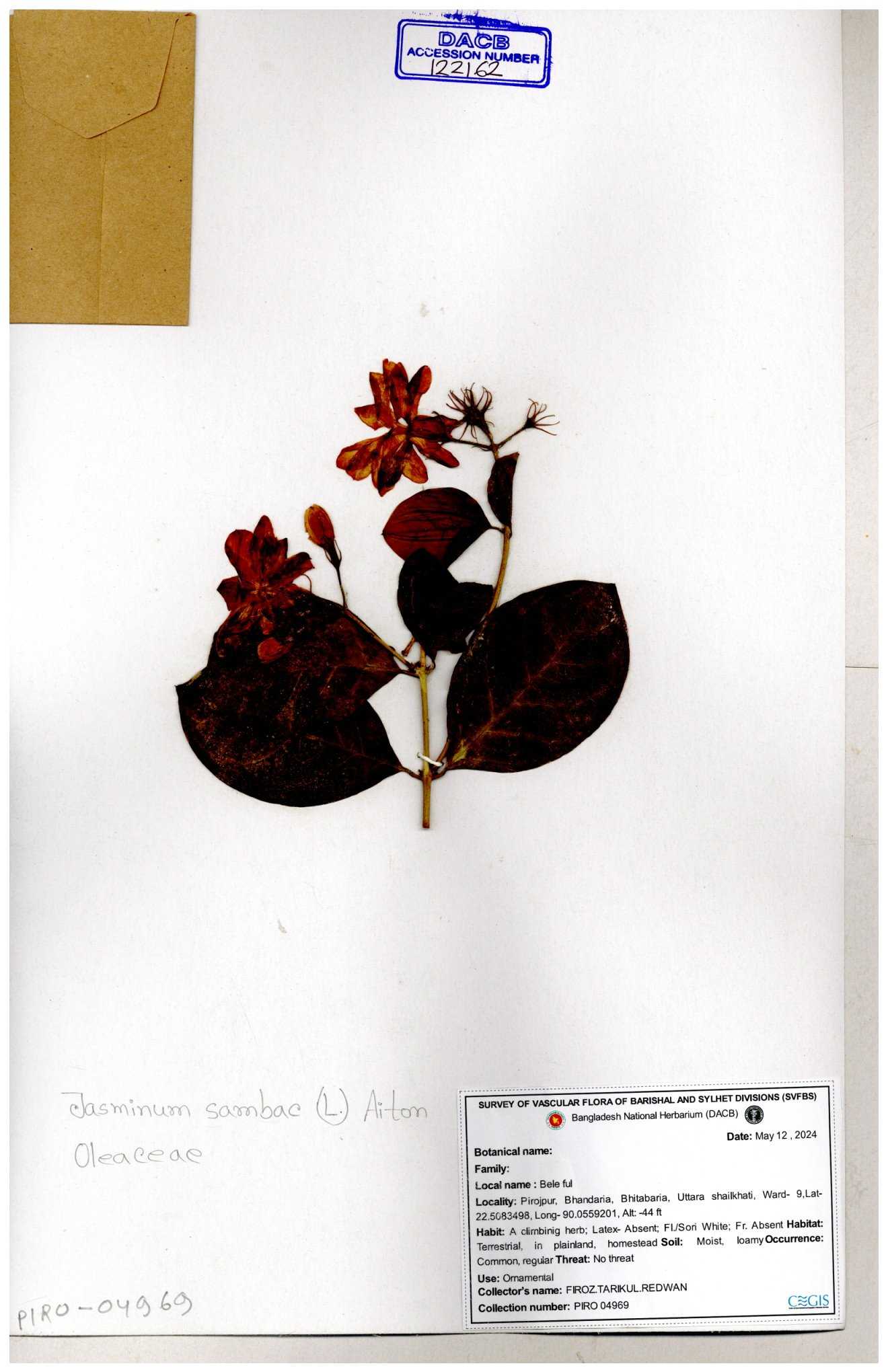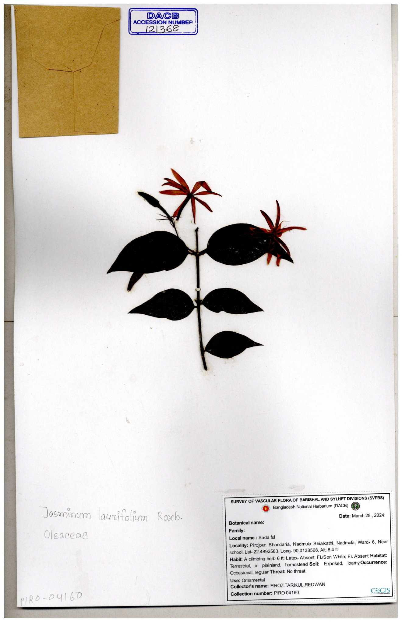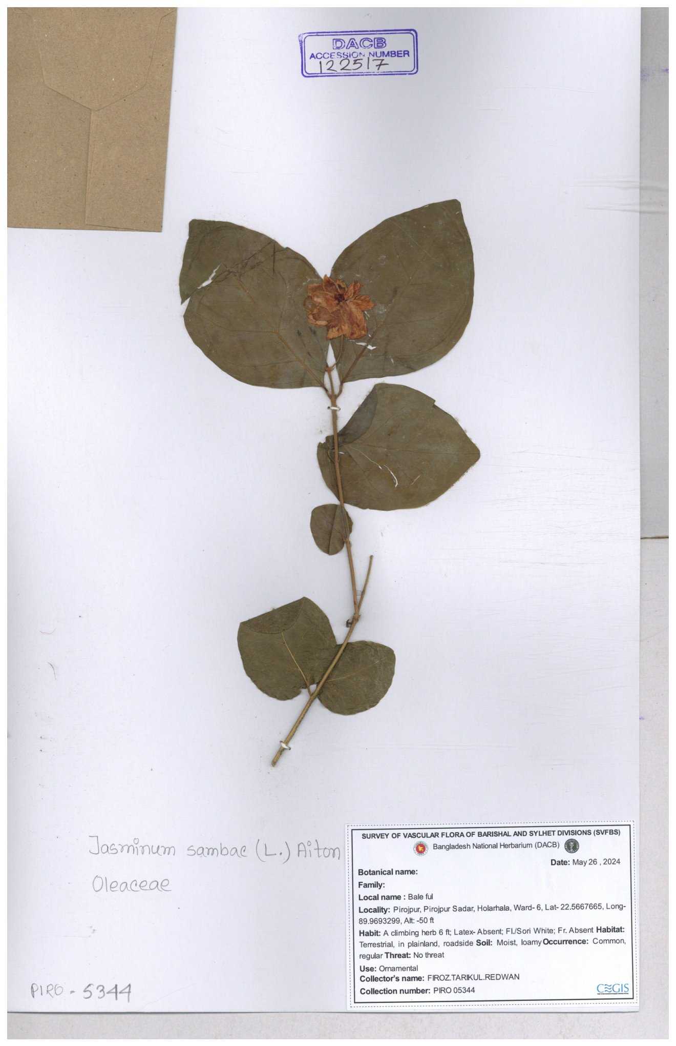 | 65793 | Oleaceae | Nyctanthes arbor-tristis (L.) | Unknown | Naimur Rahman | NR-1401 02-12-2020 |