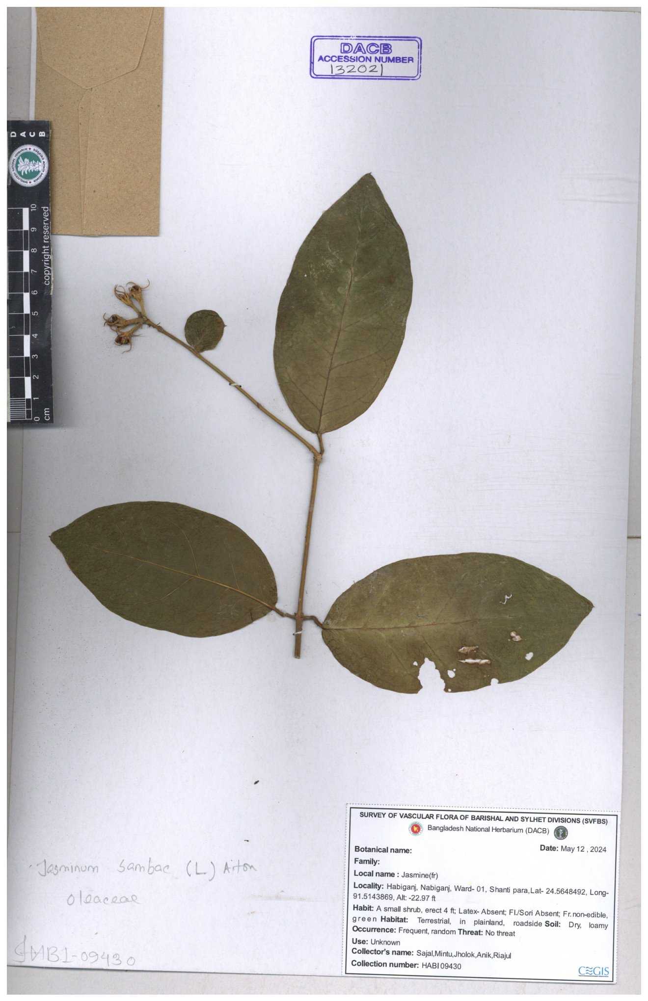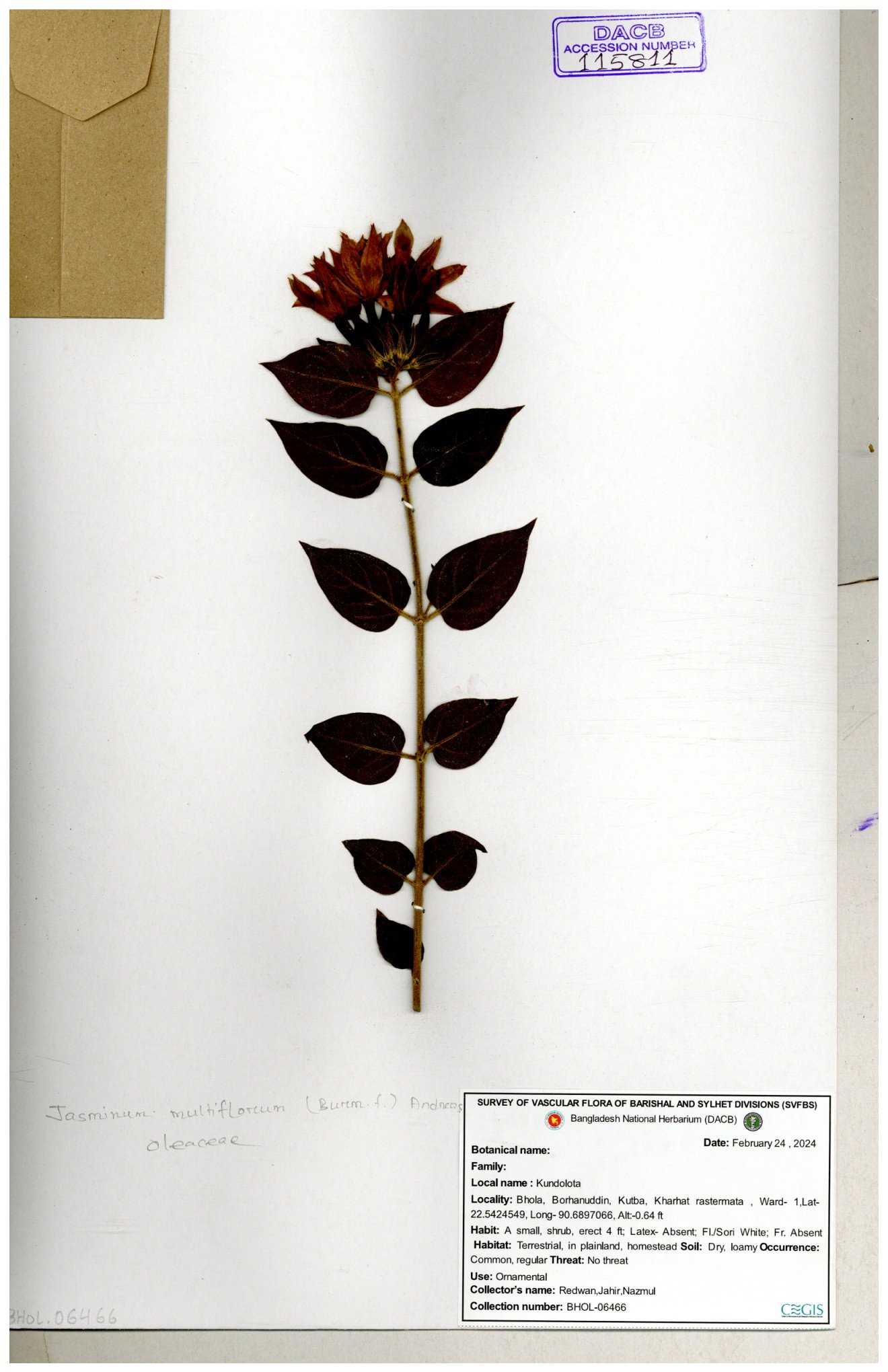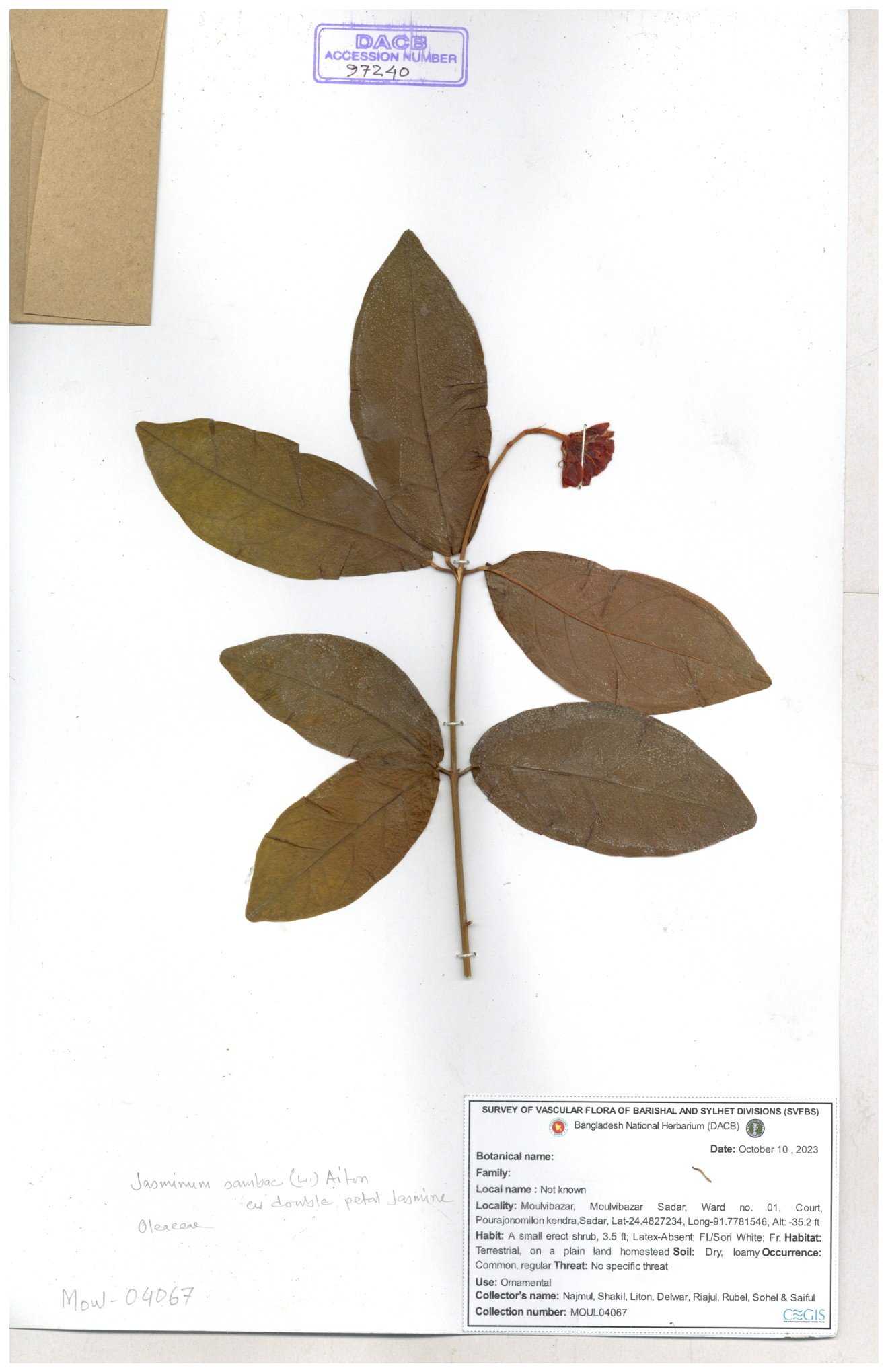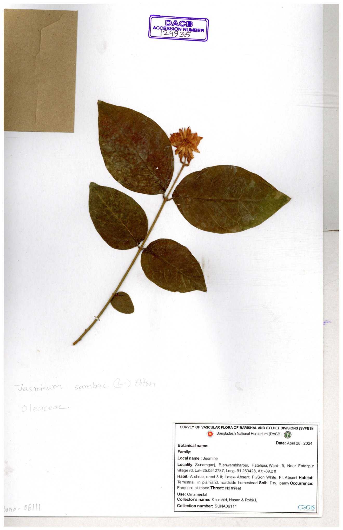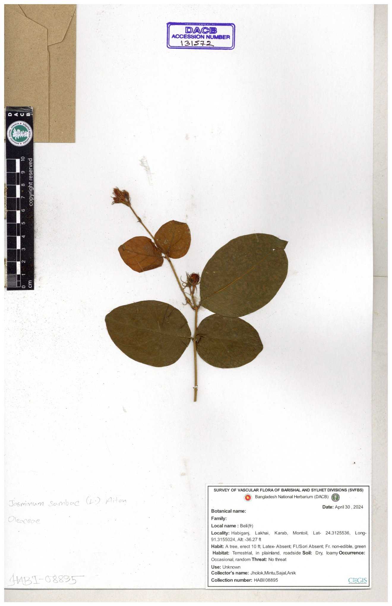 | 65793 | Oleaceae | Nyctanthes arbor-tristis (L.) | Unknown | Naimur Rahman | NR-1401 02-12-2020 |