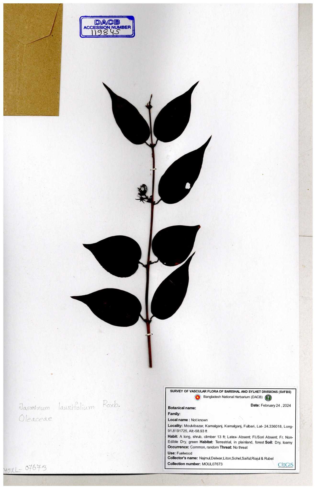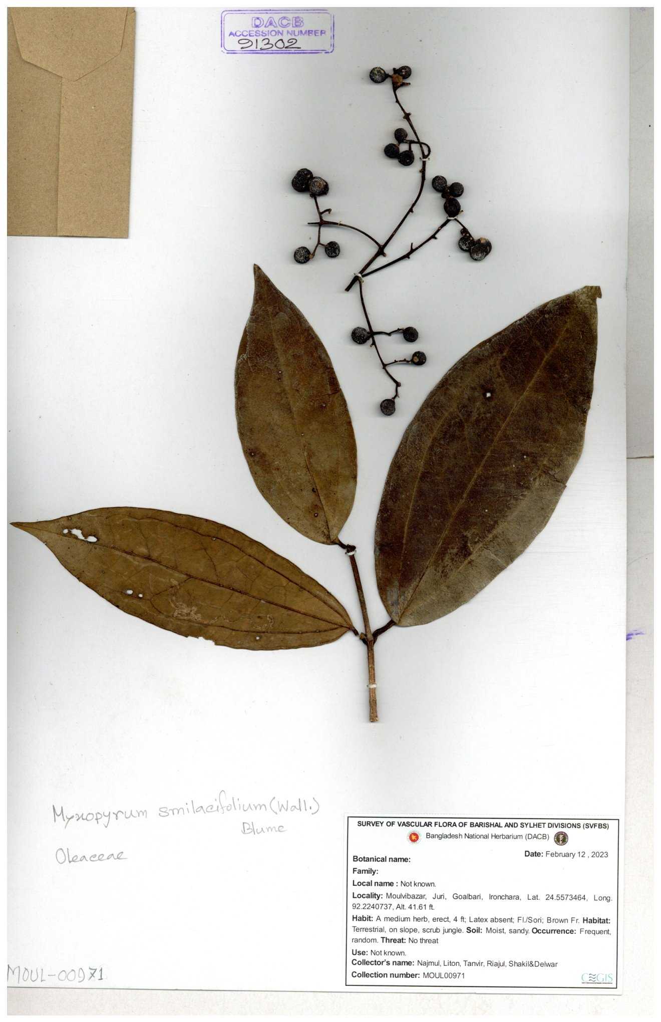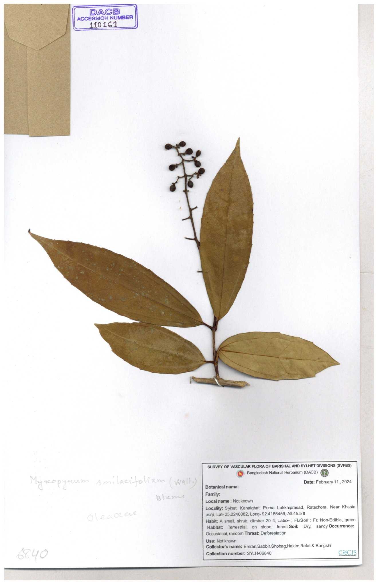 | 70840 | Oleaceae | Myxopyrum smilacifolium | Md. Shahidul Islam & Md. Rashed Miah | MSI-6431 30-11--0001 |
