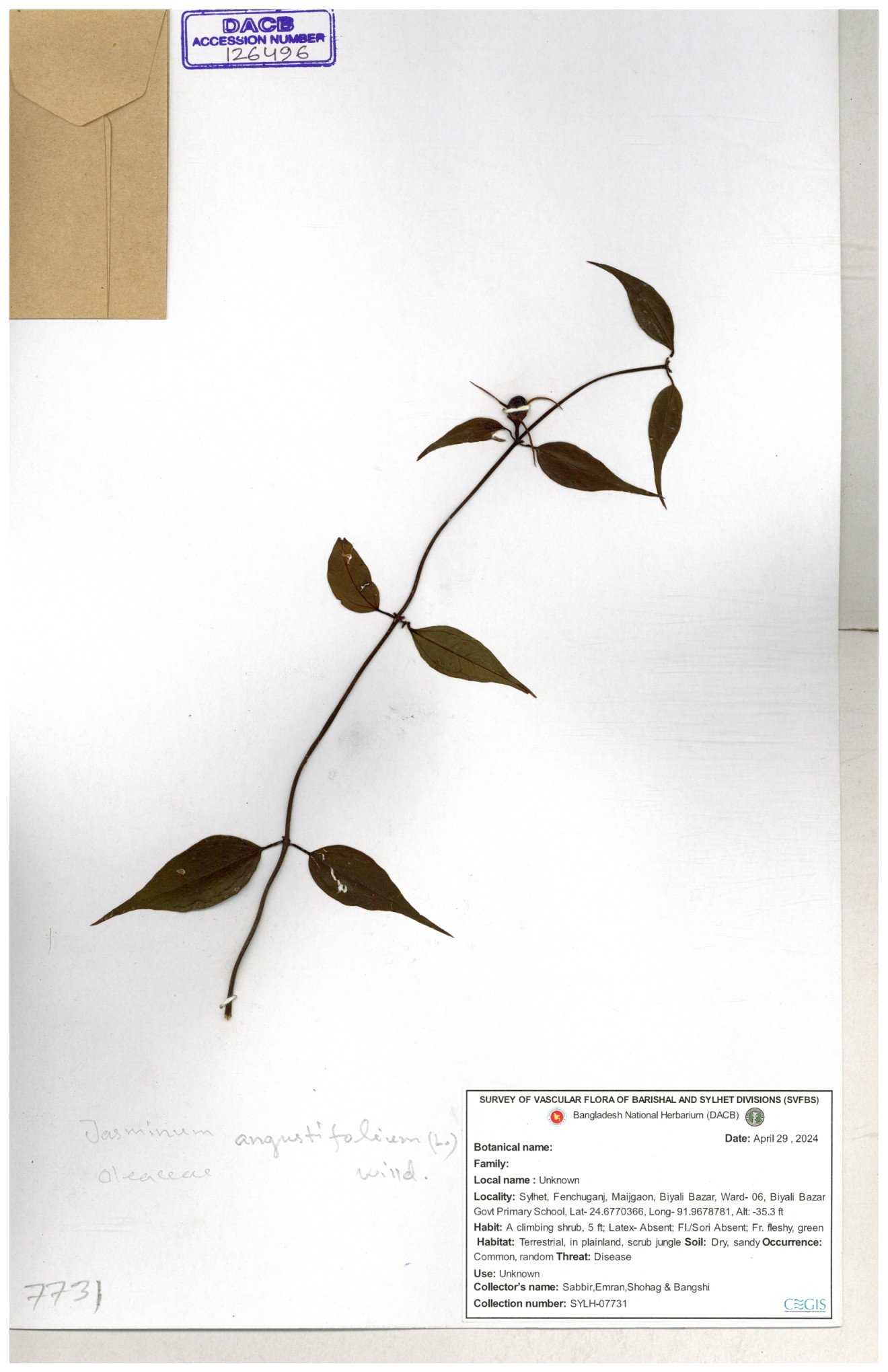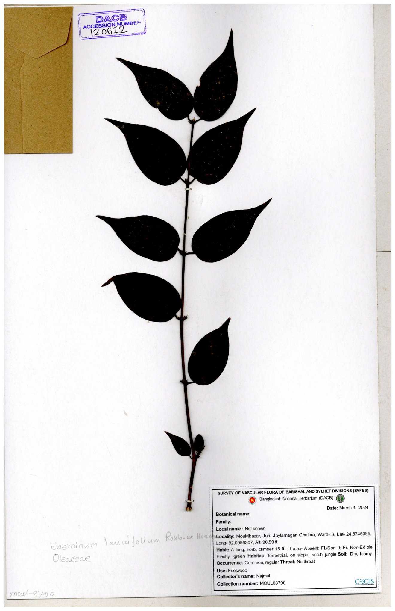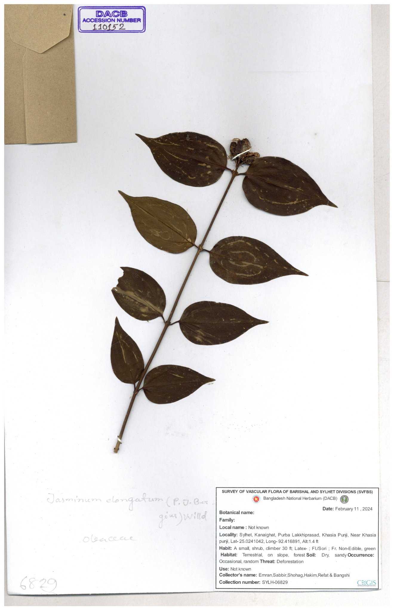 | 70840 | Oleaceae | Myxopyrum smilacifolium | Md. Shahidul Islam & Md. Rashed Miah | MSI-6431 30-11--0001 |