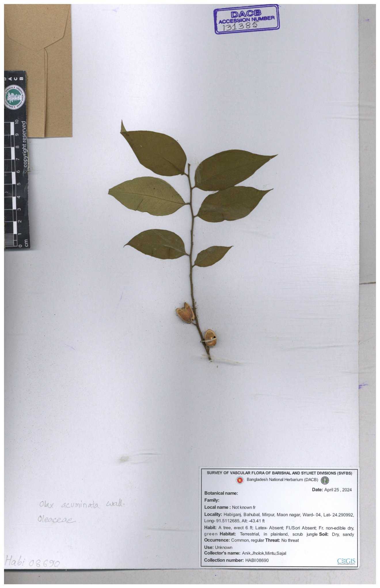 | 35817 | Oleaceae | Olax acuminata | 30-11--0001 |