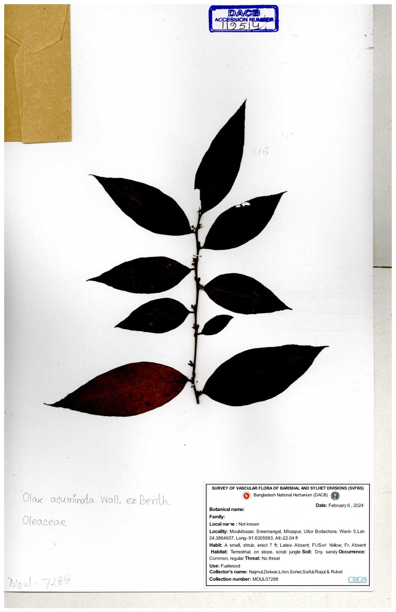 | 119514 | Oleaceae | Olax acuminata | 30-11--0001 |
