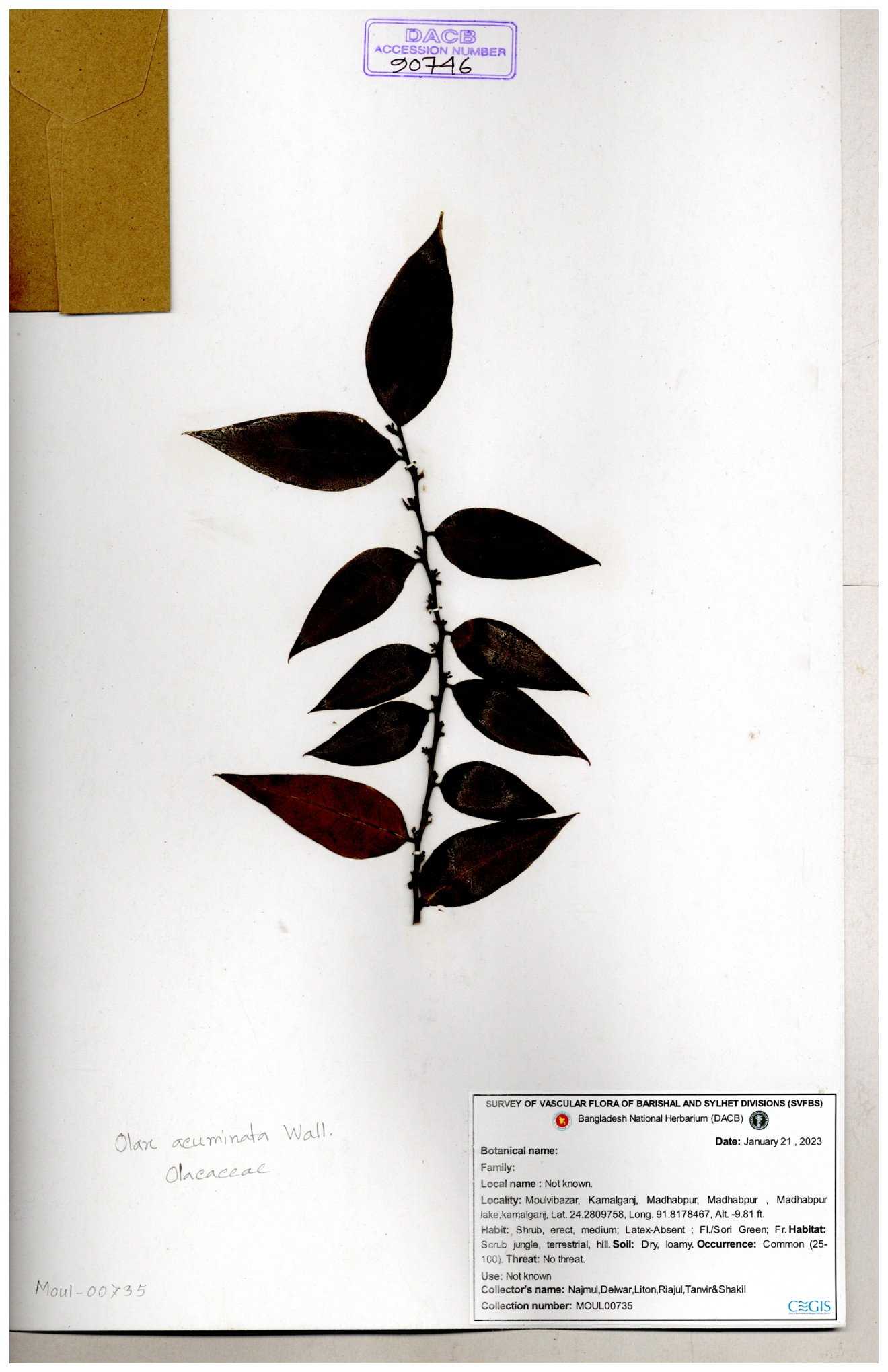 | 90746 | Oleaceae | Olax acuminata | 30-11--0001 |