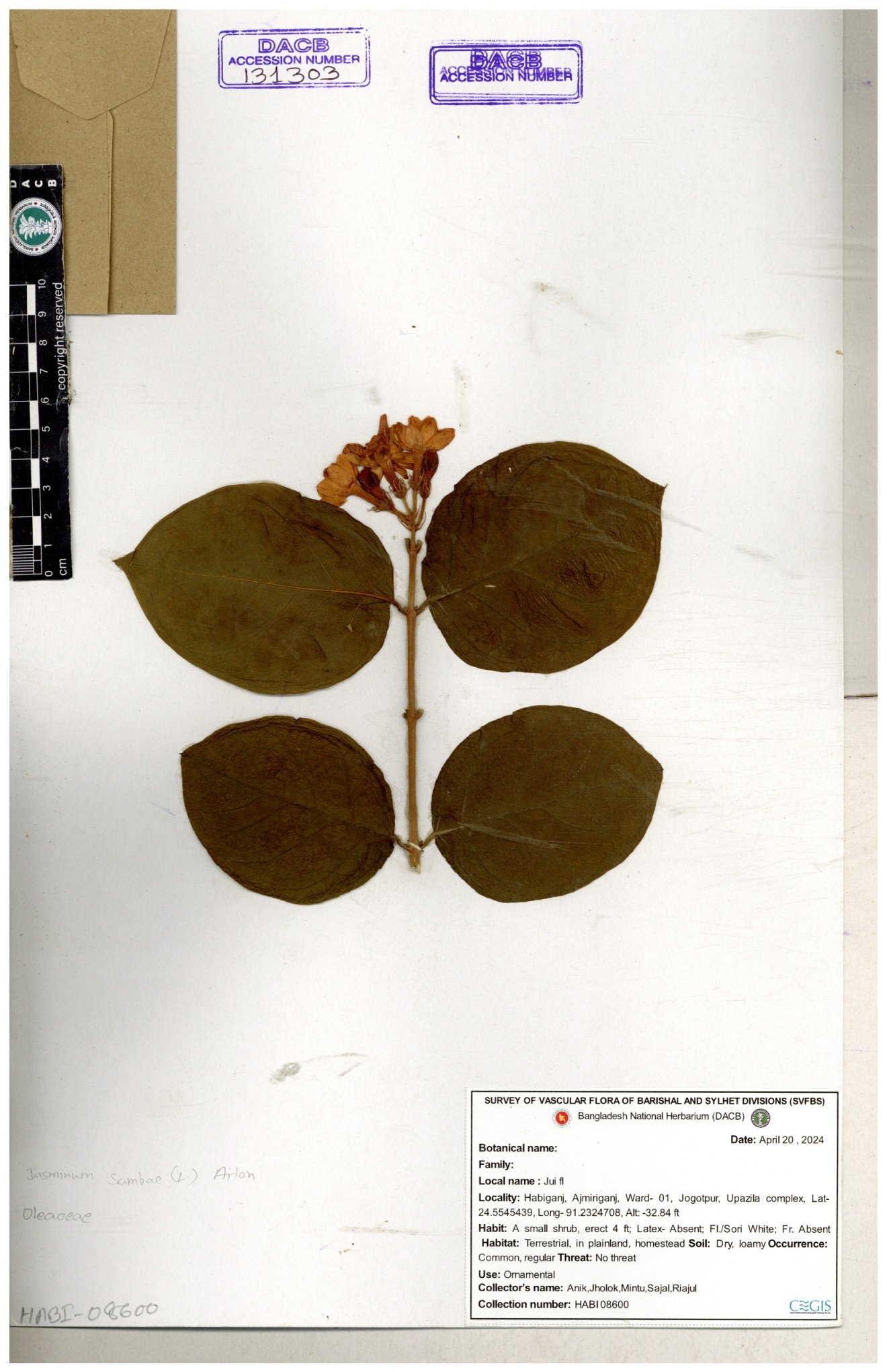 | 24606 | Oleaceae | Jasminum sp. | 30-11--0001 |