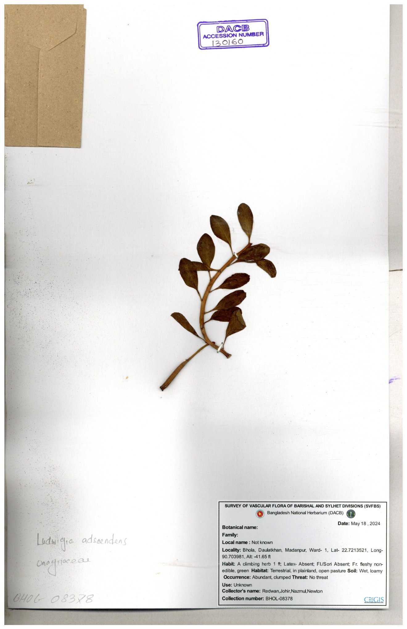 | 130160 | Onagraceae | Ludwigia adscendens | 30-11--0001 |