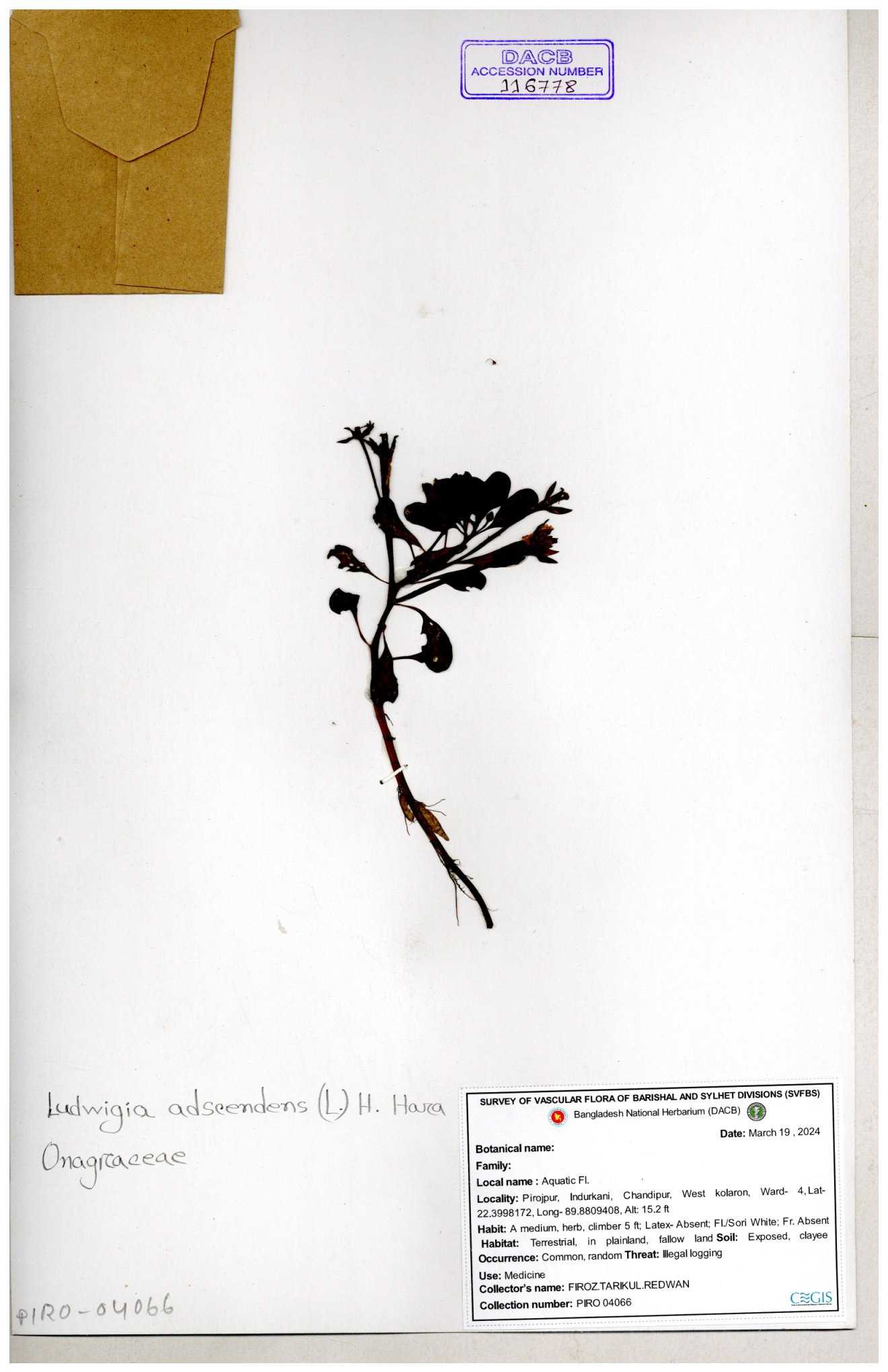 | 116778 | Onagraceae | Ludwigia adscendens | 30-11--0001 |