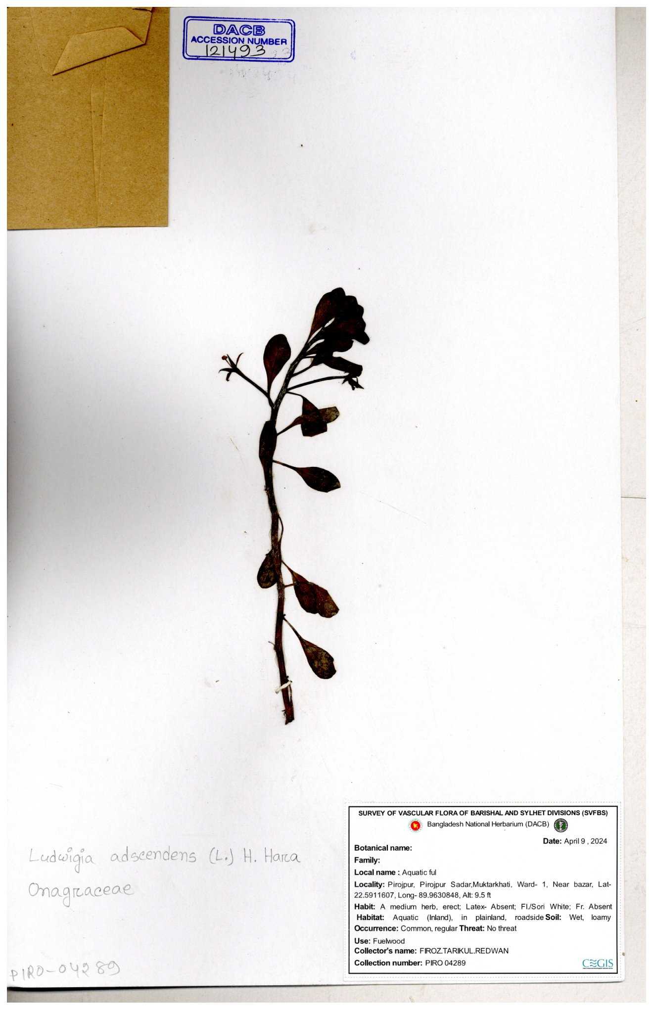 | 121494 | Onagraceae | Ludwigia adscendens | 30-11--0001 |