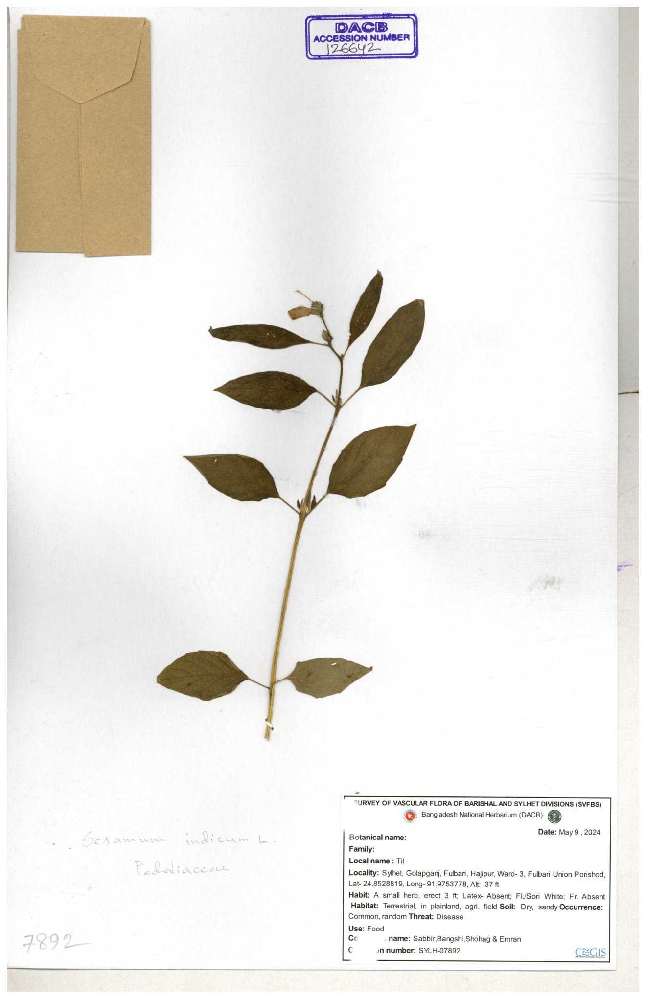 | 124639 | Pedaliaceae | Sesamum indicum | 30-11--0001 |