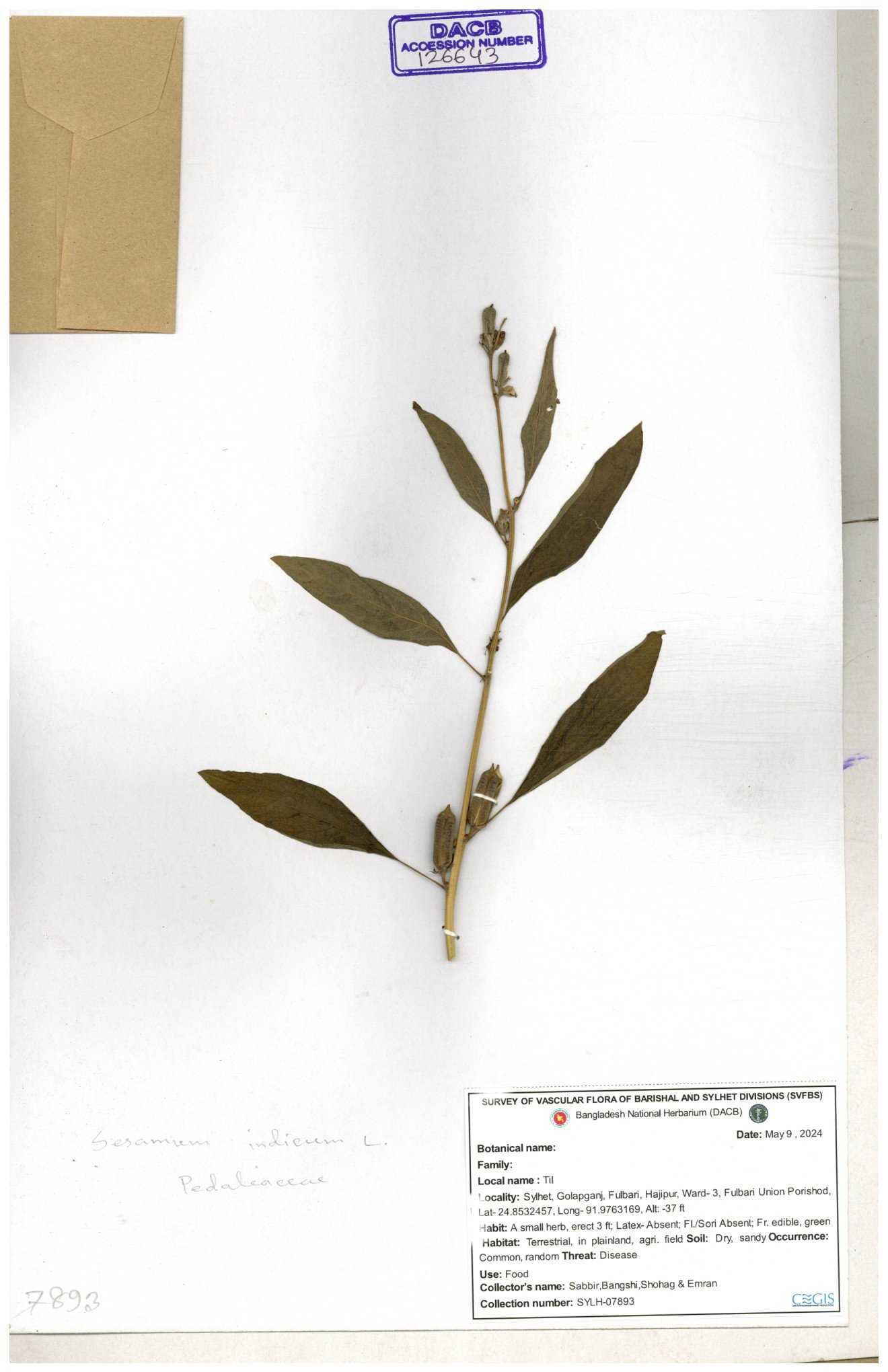 | 126643 | Pedaliaceae | Sesamum indicum | 30-11--0001 |