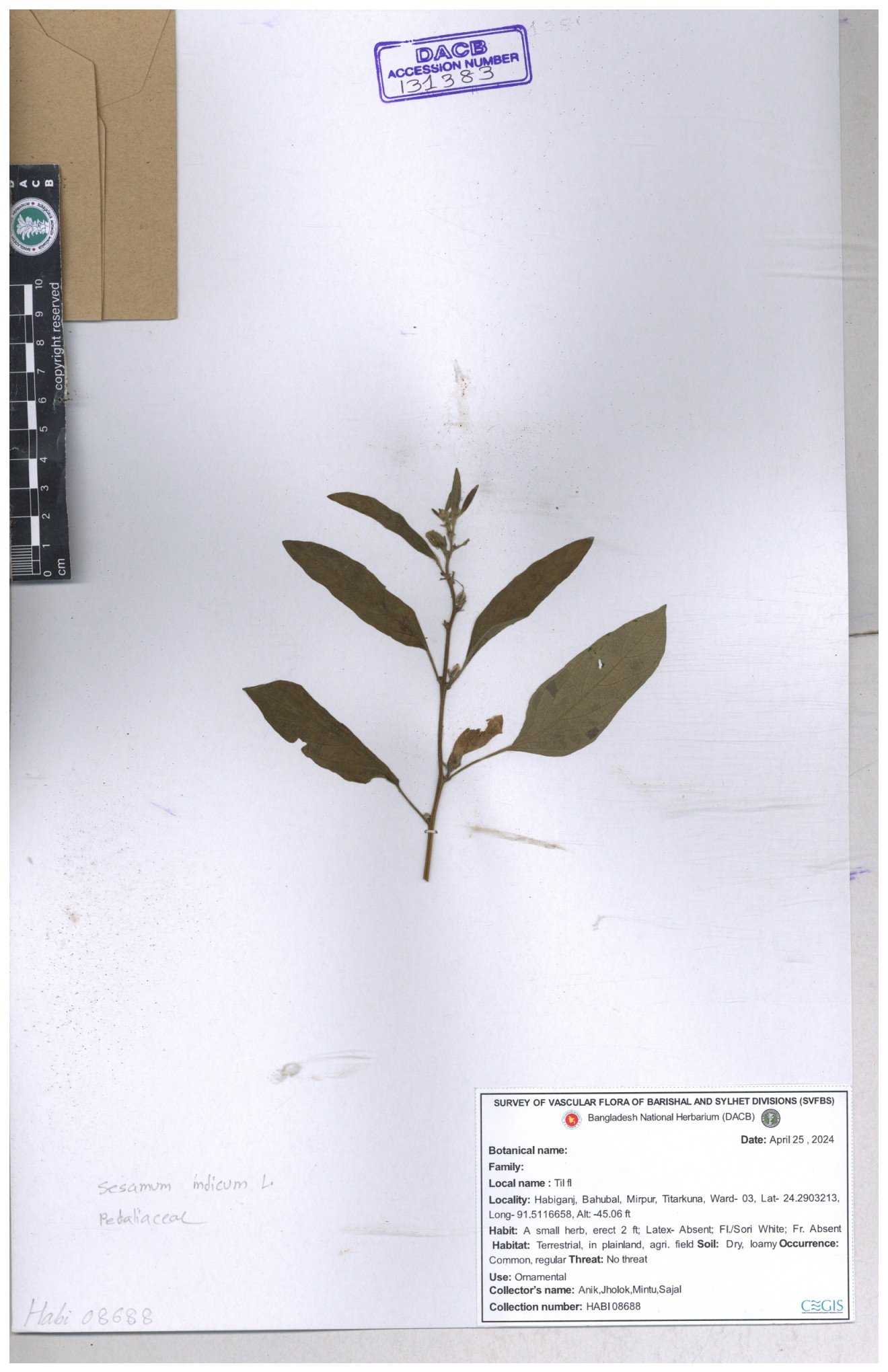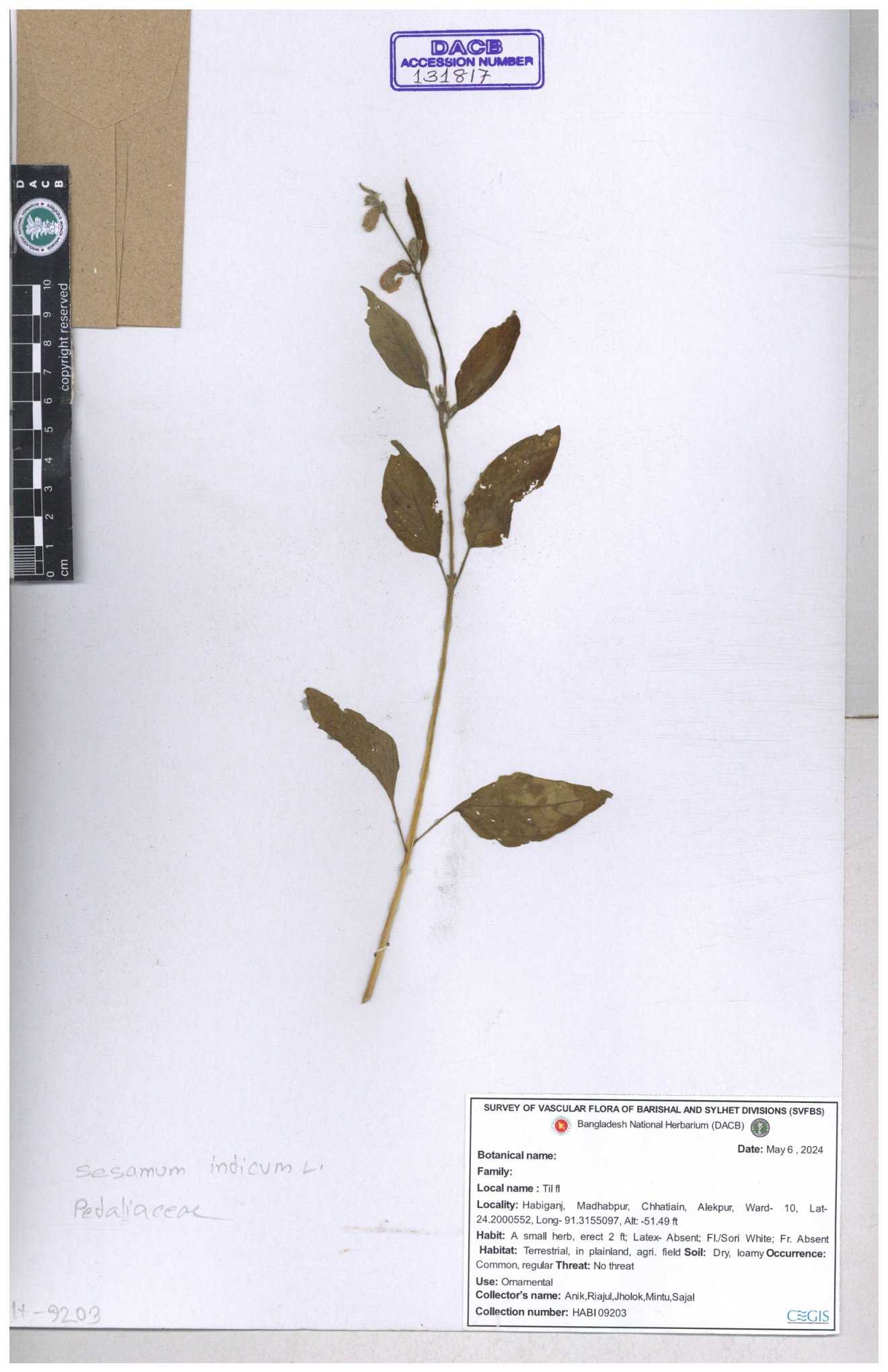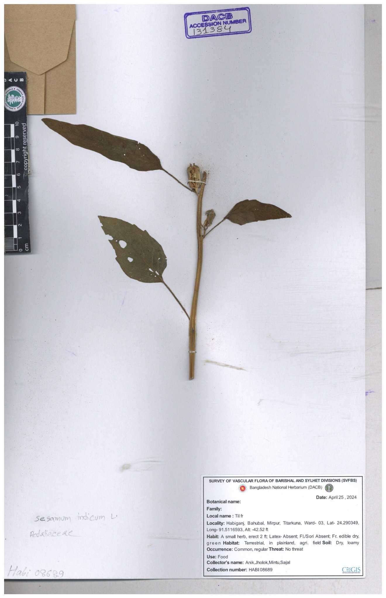 | 131598 | Pedaliaceae | Sesamum indicum | 30-11--0001 |
