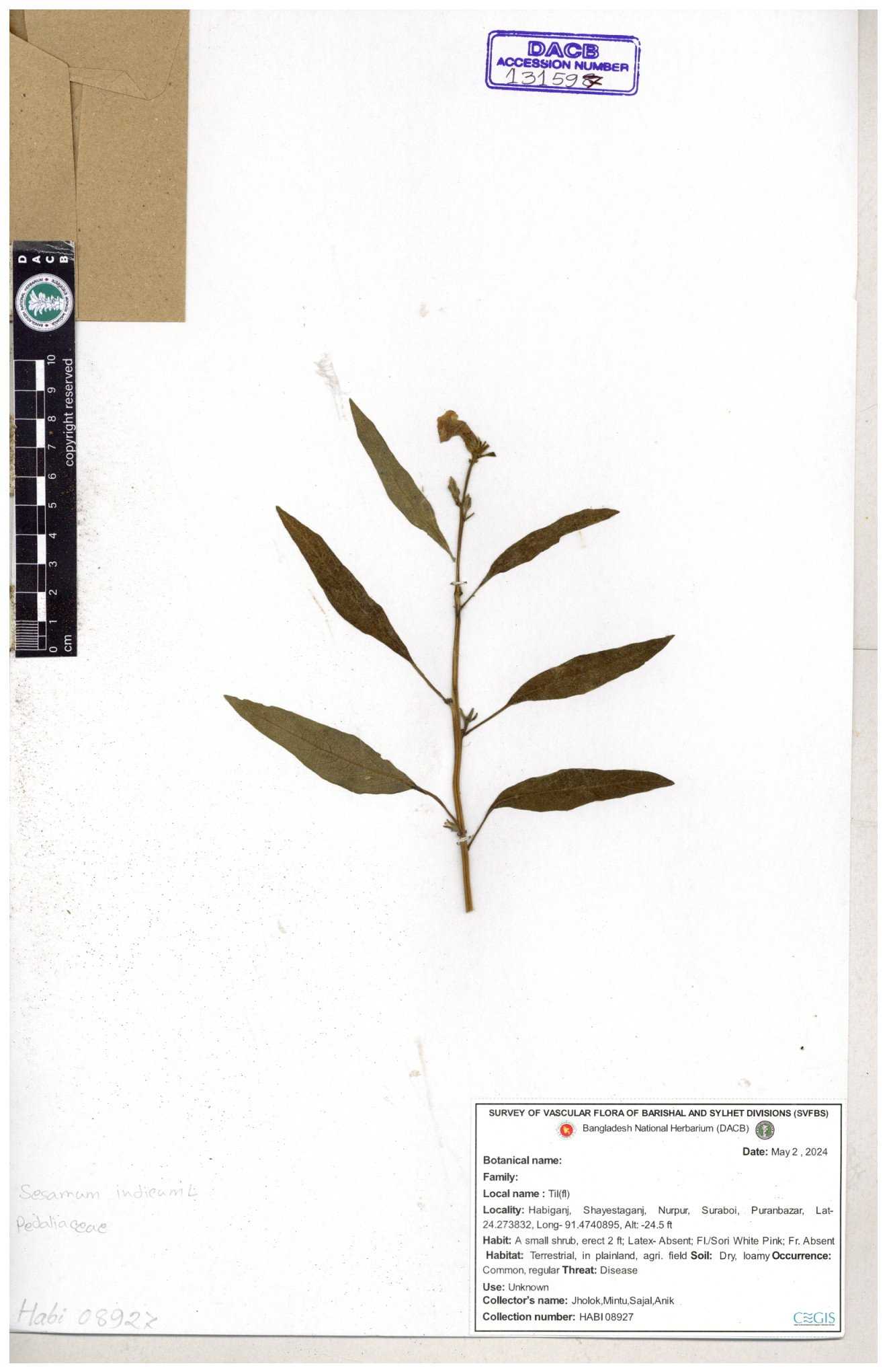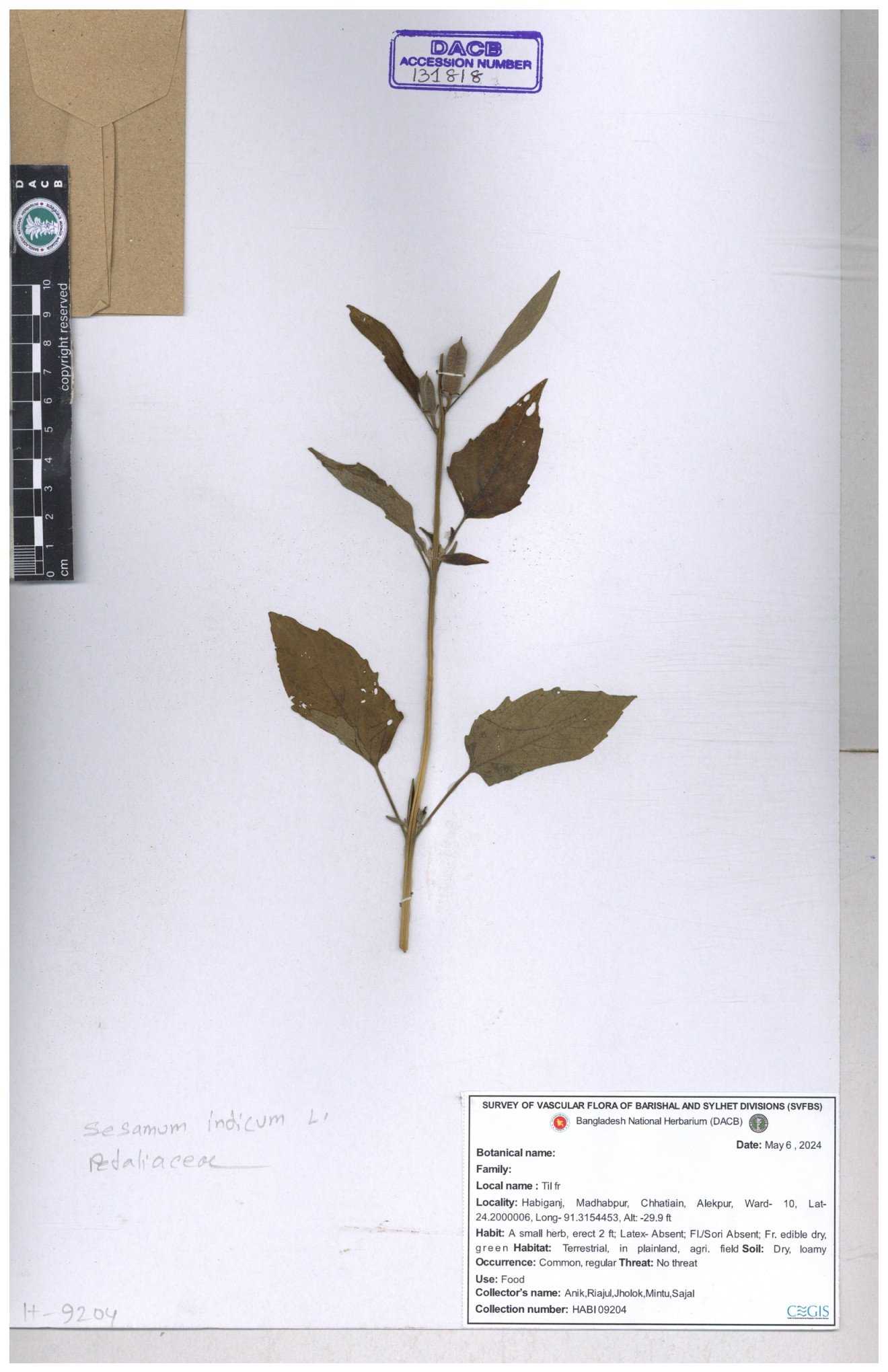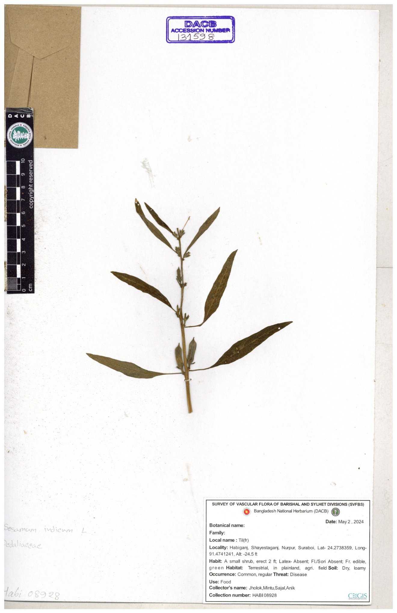 | 131598 | Pedaliaceae | Sesamum indicum | 30-11--0001 |