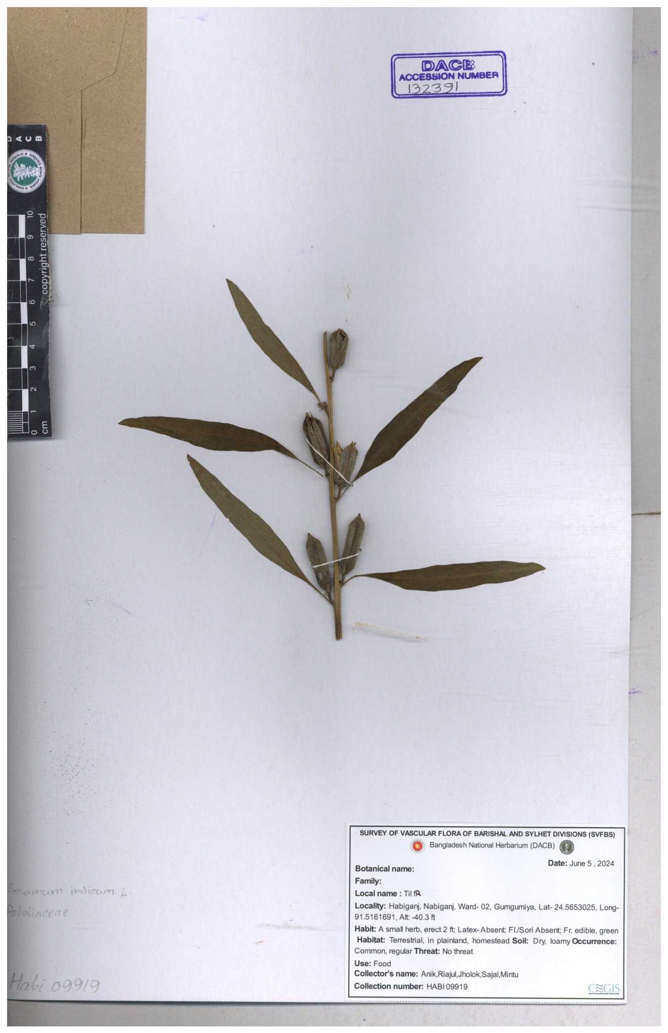 | 132391 | Pedaliaceae | Sesamum indicum | 30-11--0001 |