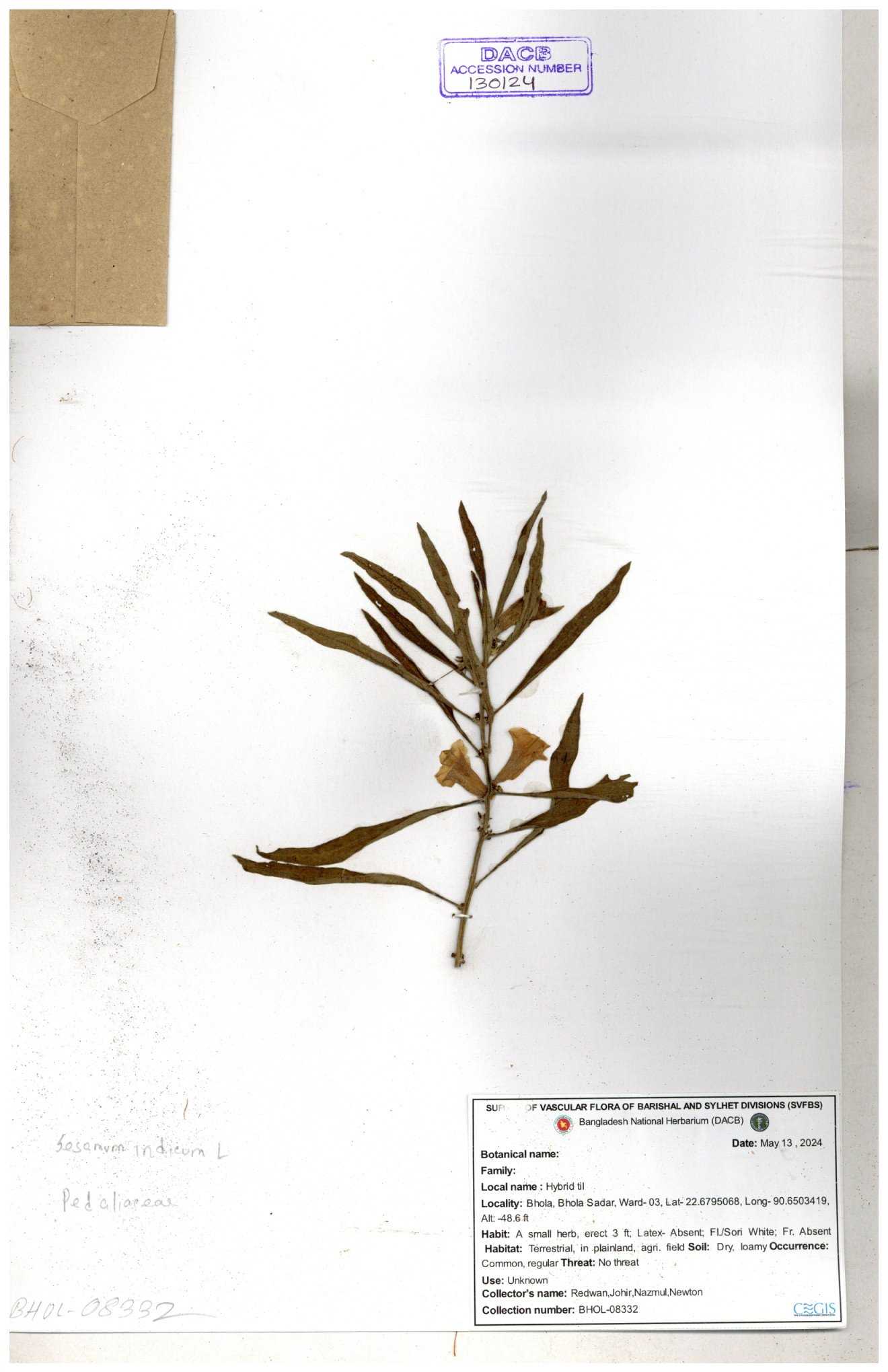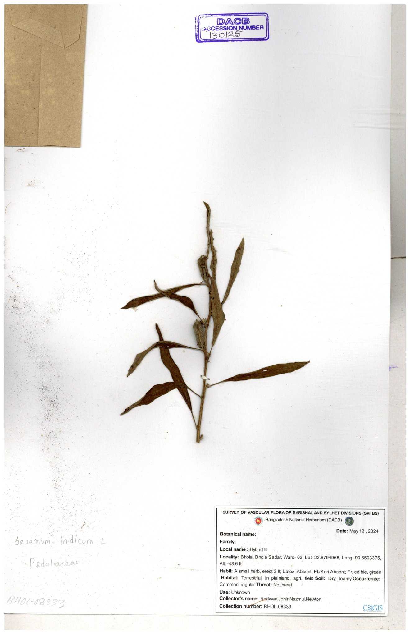 | 132390 | Pedaliaceae | Sesamum indicum | 30-11--0001 |