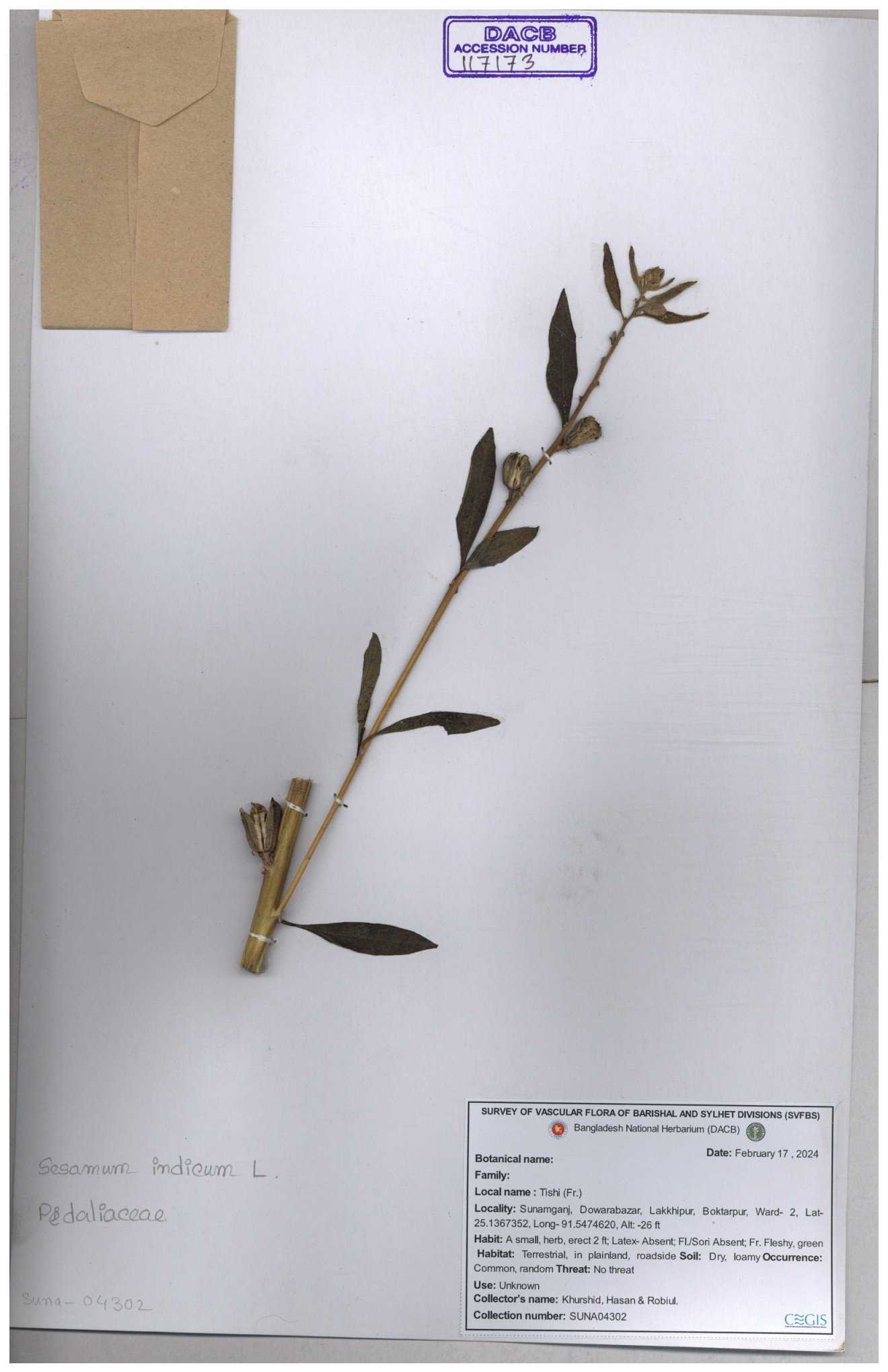| 85903 | Pedaliaceae | Sesamum indicum | Kowser et al | KH-6494 17-09-2017 |