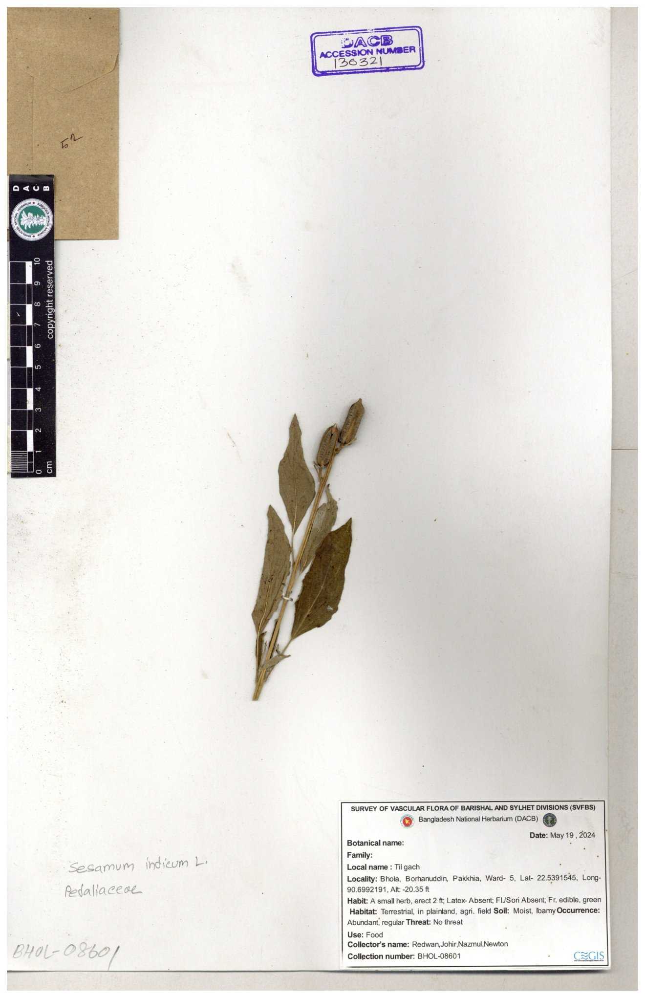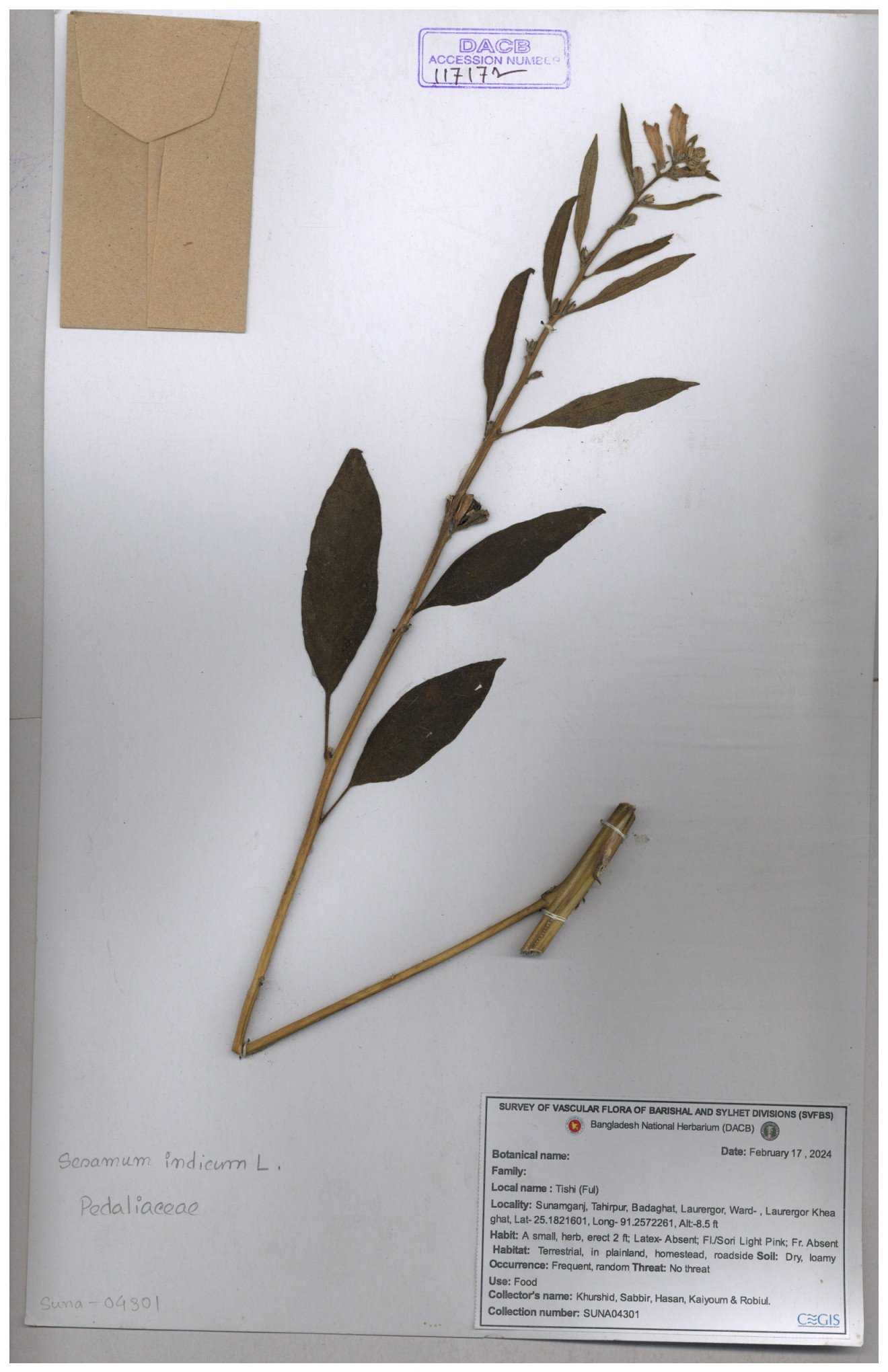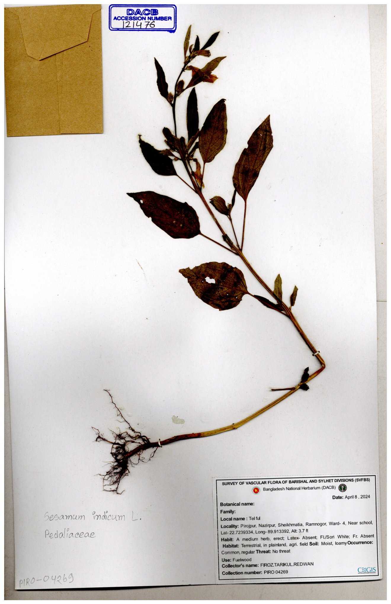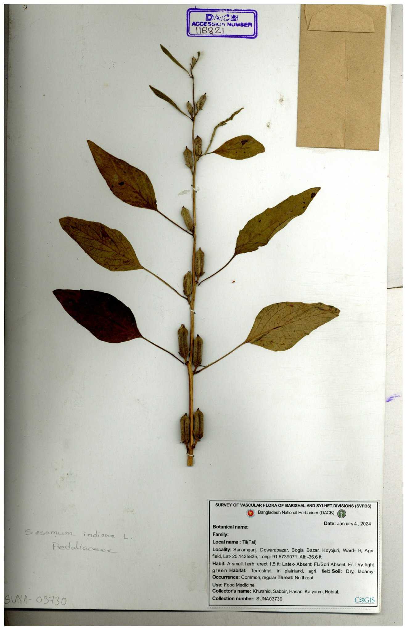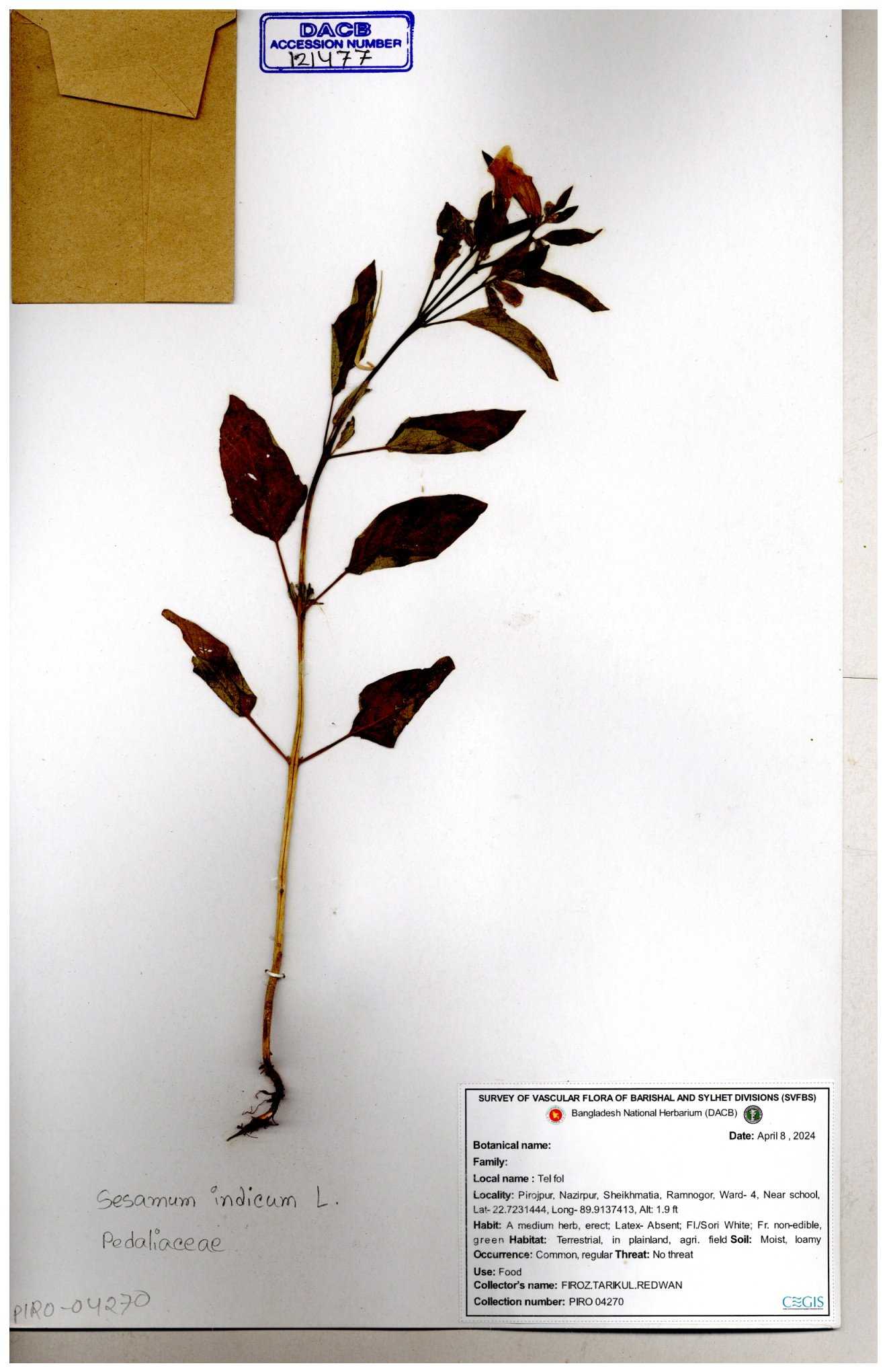 | 121477 | Pedaliaceae | Sesamum indicum | 30-11--0001 |