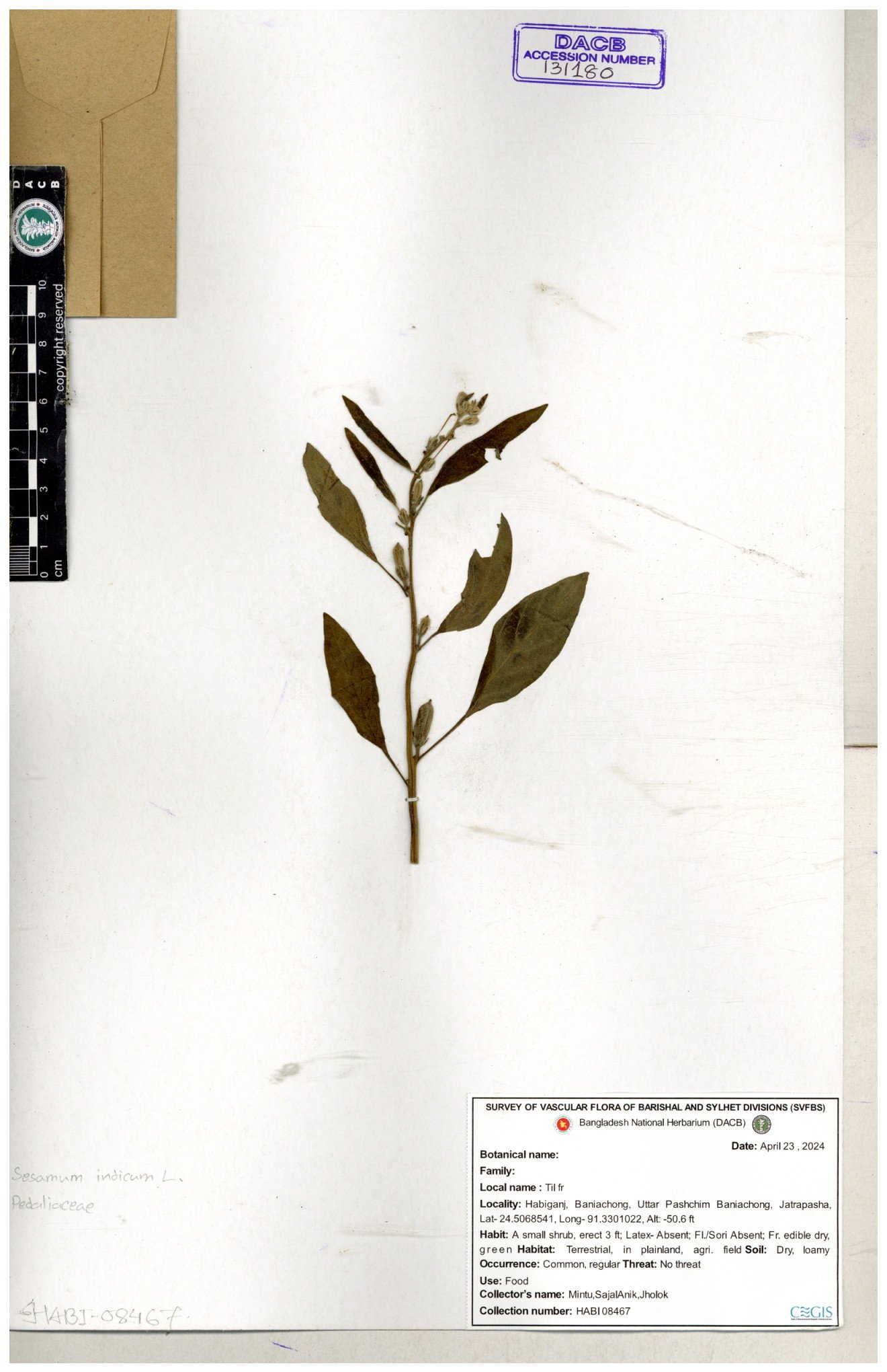 | 131180 | Pedaliaceae | Sesamum indicum | 30-11--0001 |