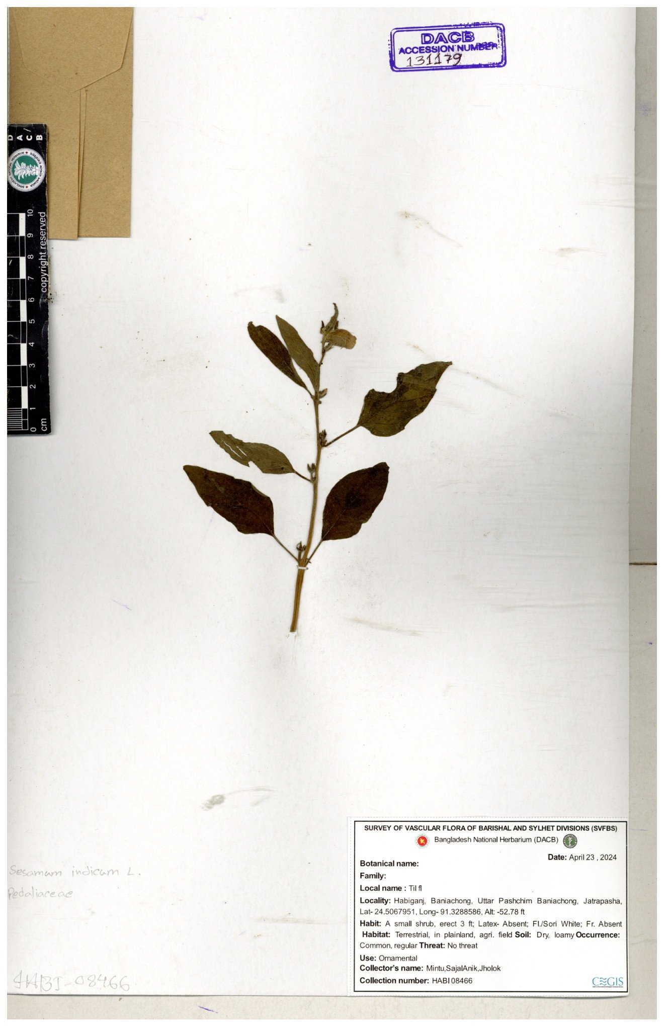 | 131179 | Pedaliaceae | Sesamum indicum | 30-11--0001 |